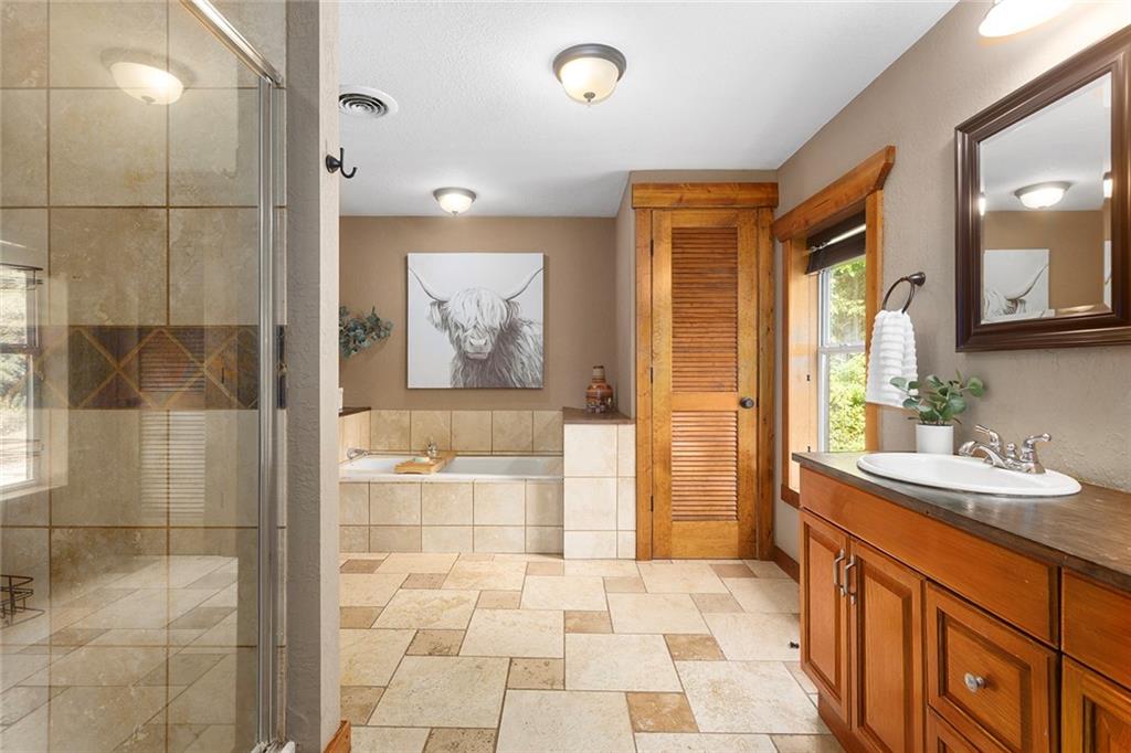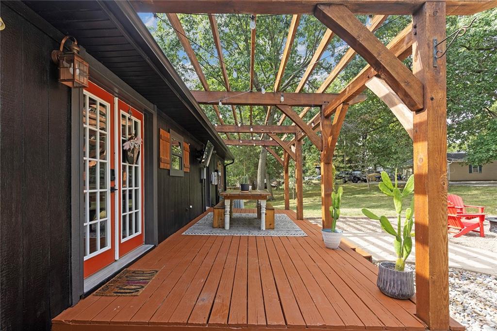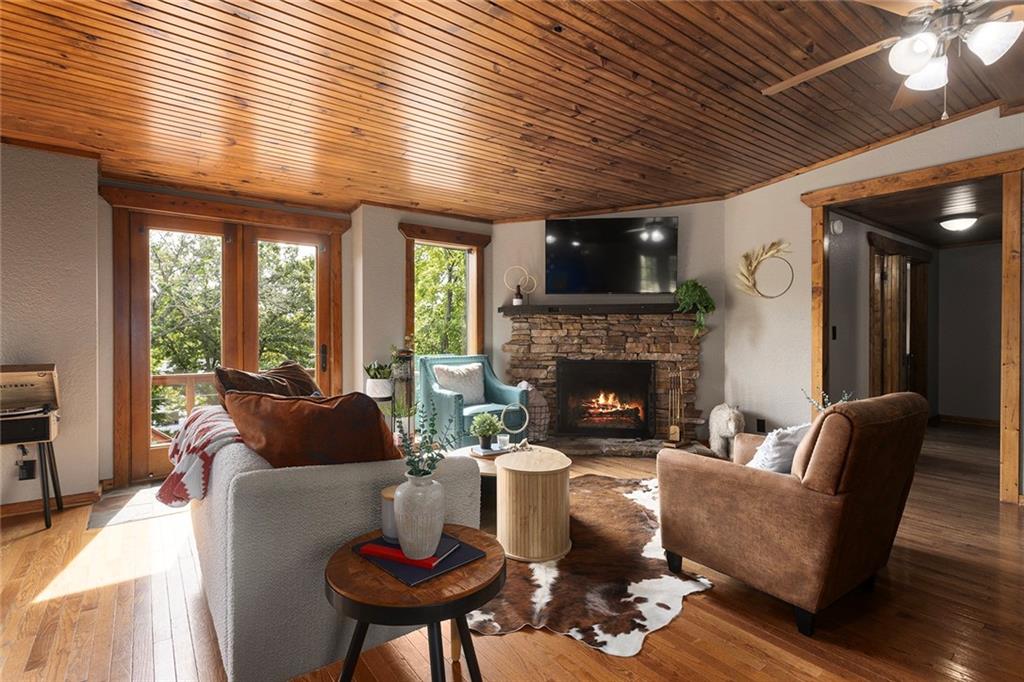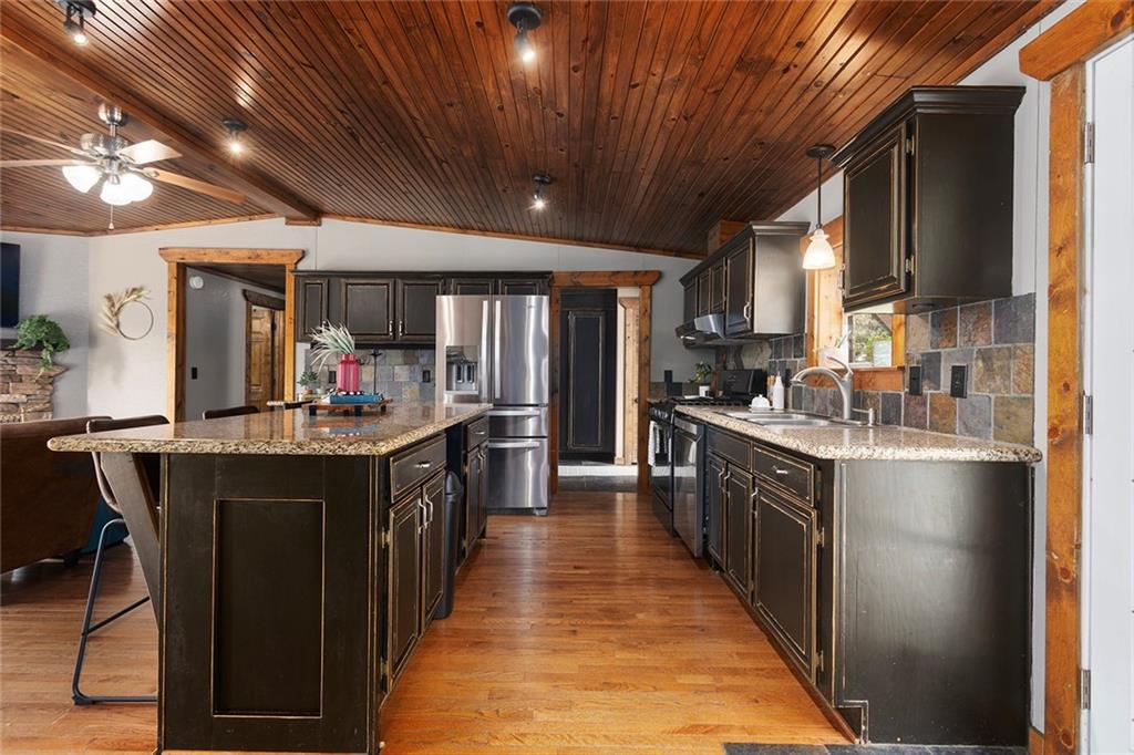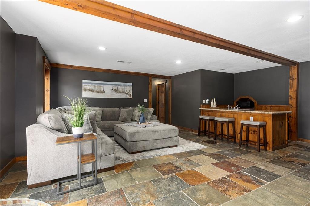 This beautiful 4-bedroom, 3-bathroom home sits on a rare double lot in highly sought-after Lake Lotawana. Featuring an open floor plan with soaring ceilings, custom wood accents, and stunning hardwood floors, the home is filled with natural light. The spacious kitchen offers a large island and plenty of storage, while the primary suite provides a relaxing escape with a soaking tub and walk-in shower. A finished basement adds a cozy family room with a wet bar and an additional bedroom that feels like a second primary suite with its own tub, walk-in shower, and oversized closet. Energy efficiency meets comfort with solar panels that keep utility costs low, and a hot tub hookup is already in place. Outdoor living is exceptional with four different areas to relax or entertain: a large front deck perfect for outdoor dining, a separate fire pit area, and two back decks plus a covered patio where you can enjoy the sunrise and sunset any time of year. A two-car garage and double driveways provide plenty of room for cars, golf carts, and even boat parking. Just a quick golf cart ride from dining, shopping, parks, tennis and pickleball courts, and with easy access to two of the lake’s entrances, this home offers both convenience and the Lake Lotawana lifestyle.