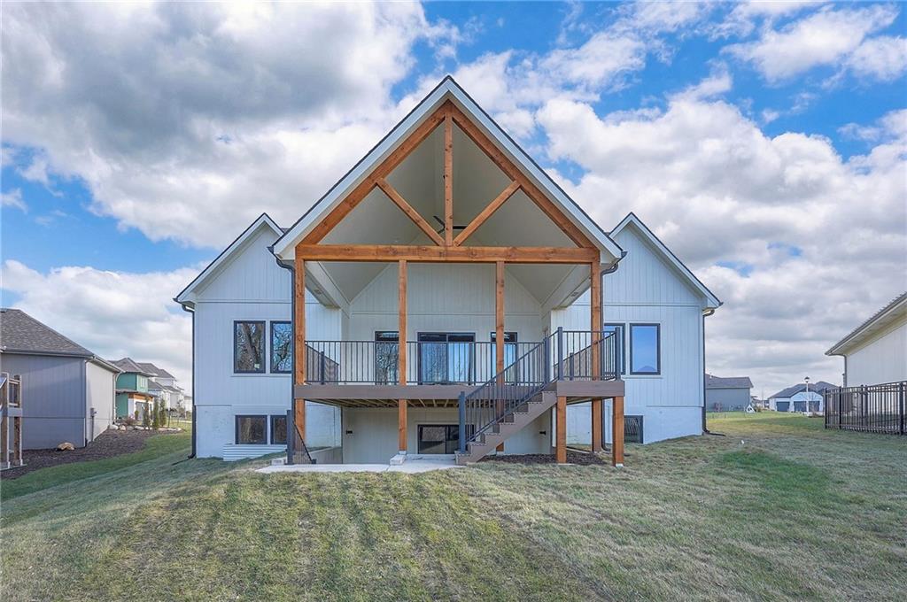 Ready Now! The Addison Reverse Plan by Brian Scott Homes – Lot 99 Boulder Hills | Backing to Trees & Trails |Walk-up/Walk-out Welcome to the Addison, an exceptional reverse 1.5-story home located on coveted Lot 99 in Boulder Hills, offering a rare walk-out/walk-up lot that backs to mature trees and scenic walking trails. This thoughtfully designed 4-bedroom, 3.5 bathroom home is ready now to enjoy your backyard oasis. Discover a spacious, open layout with high-end finishes and custom details inside. The gourmet kitchen is a dream, featuring custom cabinetry, quartz countertops, a large center island, and a walk-in pantry. The adjacent great room showcases a stunning stone fireplace and plenty of space for entertaining. Walk out from the main level to a huge covered deck—perfect for enjoying peaceful, treed views year-round. The front bedroom welcomes natural light through oversized windows, while the primary suite boasts a custom feature wall and direct access to the deck. The spa-like primary bathroom includes dual vanities, a freestanding tub, and a luxurious walk-in shower. You'll love the generous walk-in closet conveniently connected to the laundry room. The oversized garage is a standout feature, measuring an impressive 24.6' x 29.6' with a 6' x 7' bump-out—perfect for your extended truck, workbench, or recreational gear. Downstairs, the walk-out/walk-up lower level offers a large recreation room, two additional spacious bedrooms, and a full bathroom—ideal for guests or family fun. This is the last available home in Boulder Hills backing to the private tree line—don't miss your chance to own in this premier community! Boulder Hills Amenities Include: a beautiful pool with a waterfall, an outdoor kitchen area, walking trails, a playground, a pickleball court, and a community clubhouse. See why Boulder Hills is one of the most desirable neighborhoods around!