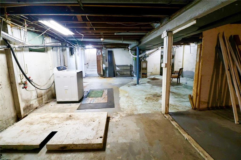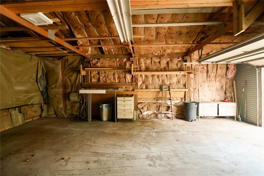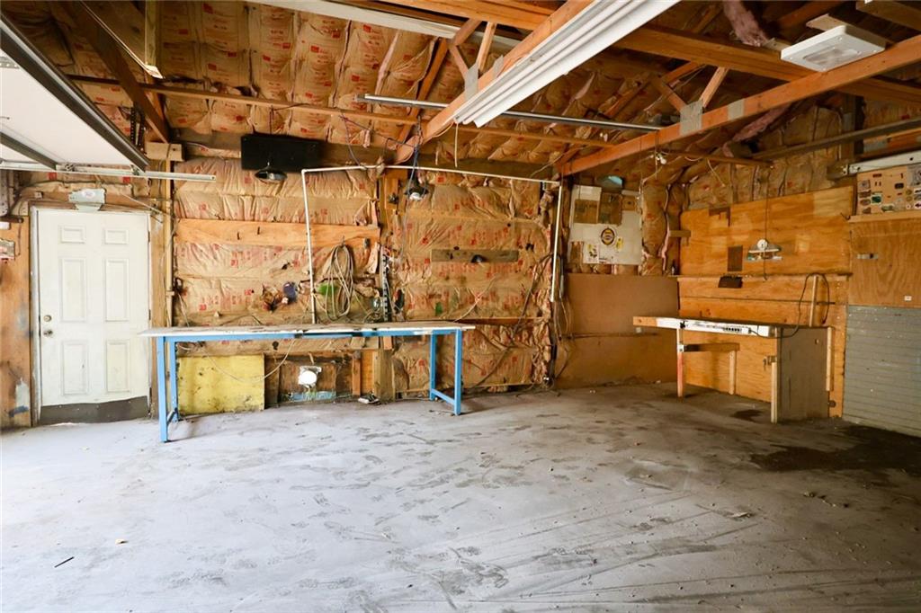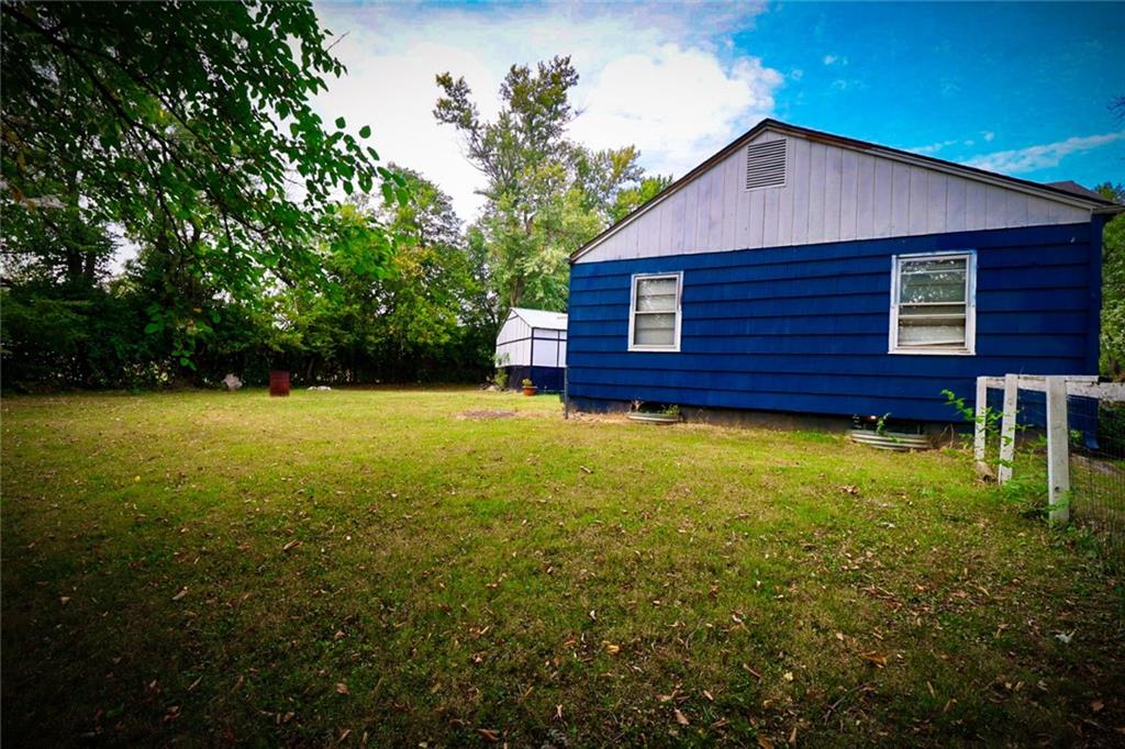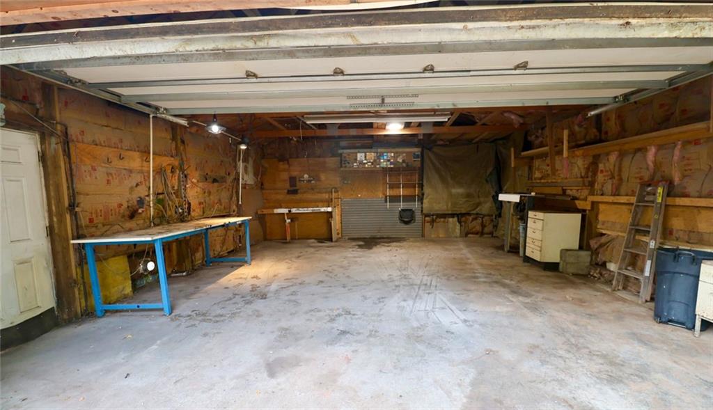 This one-level home offers 3 bedrooms and 1 bath with laundry currently located in the basement but originally on the main level —making it functional to move back upstairs for true stair-free living. Nestled on a quiet dead-end street on a 1/3-acre lot, the property is surrounded by mature trees along the back perimeter, creating privacy and seclusion. Car enthusiasts will appreciate the impressive 720 sq. ft. garage/outbuilding, designed with ample overhead clearance for trucks or vans. Depending on vehicle size, it can fit 2–3 cars with room to spare. This pole-barn style garage features a reinforced door rated to withstand 120 mph winds, plus AC / furnace attached to upper wall. A brand-new asphalt driveway, installed in July 2025, provides abundant parking for 5–7 additional vehicles, as well as the attached 1 car garage. Inside, the kitchen has been updated with new lower cabinets, butcher block countertops, and laminate flooring. The home also includes a new 50-gallon water heater installed in April 2025. The unfinished lower level offers a spacious basement, ideal for finishing or using as generous storage space.