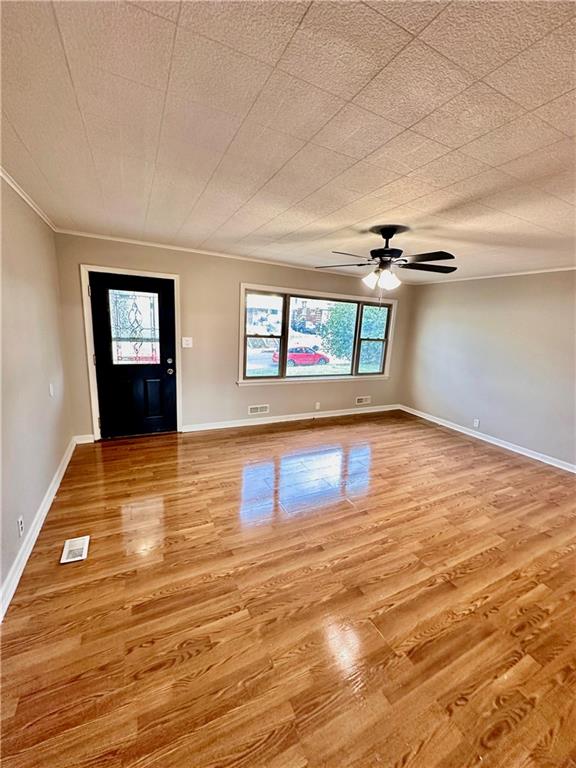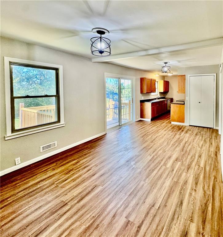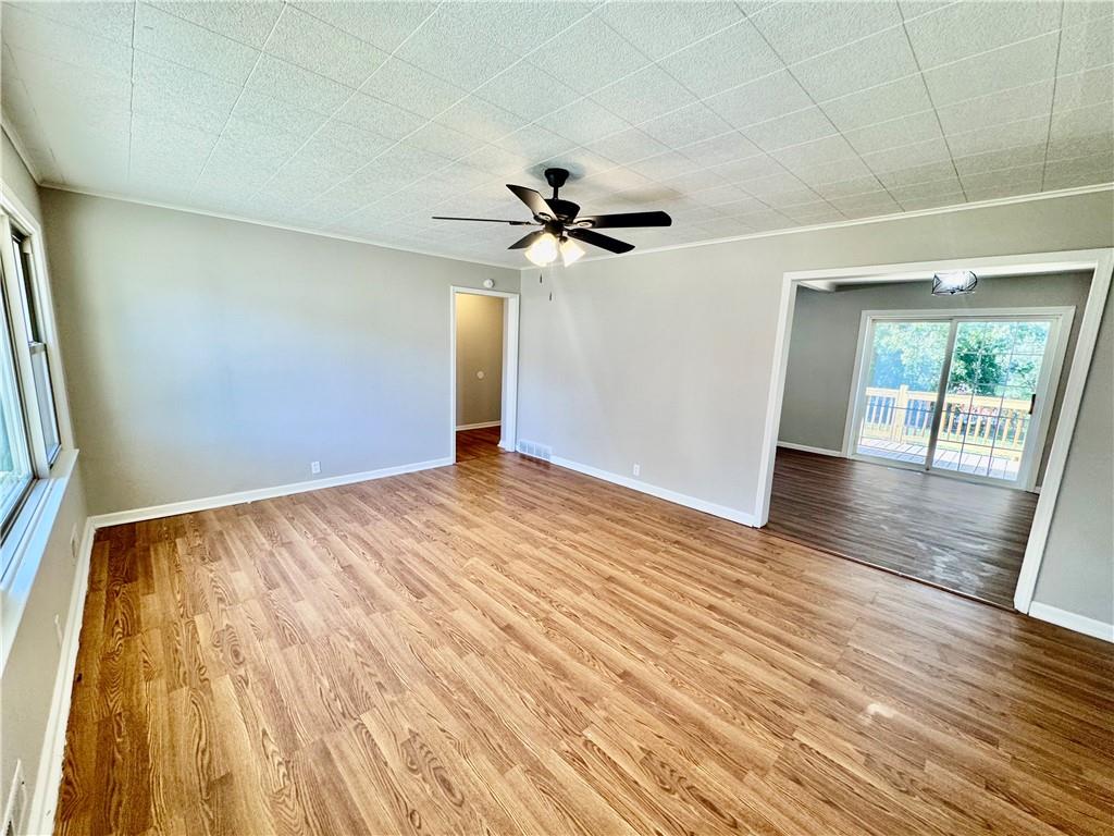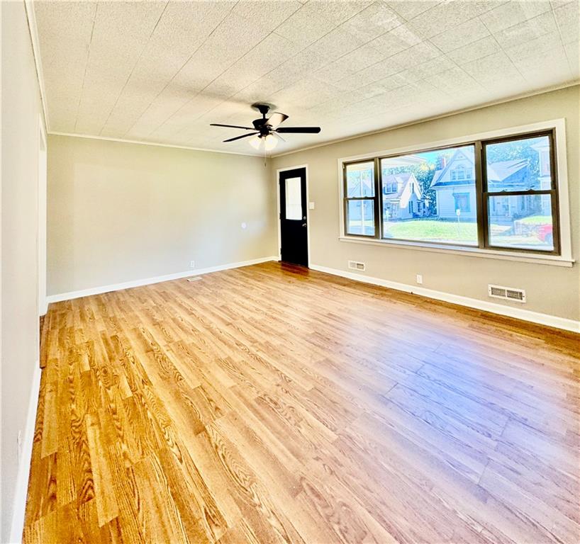Beautiful hardwood flooring runs throughout this inviting 2-bedroom, 1-bath home. Enjoy spacious living and dining rooms filled with natural light, creating a warm and welcoming atmosphere. This charming home is perfect for relaxing.