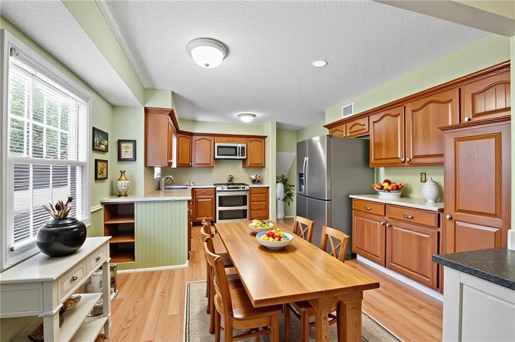 HUGE! True 5 Bedroom Side/Side split with room to roam! 5 bedrooms, 3.5 baths, formal living and dining rooms, sunroom, and a finished lower level with a HUGE family room. Newer roof, zoned HVAC, attic fan, newer windows, and low-maintenance vinyl siding. Wood floors, wood-burning fireplace w/gas start, and built-ins. The kitchen features solid surface countertops, stainless steel appliances, including a double oven range, microwave, and fridge. Bonus sunroom, extra deep garage, and excellent location! Kids can walk to Apache Elementary, quick access to 69 an, I-35, 435, the mall, and restaurants.