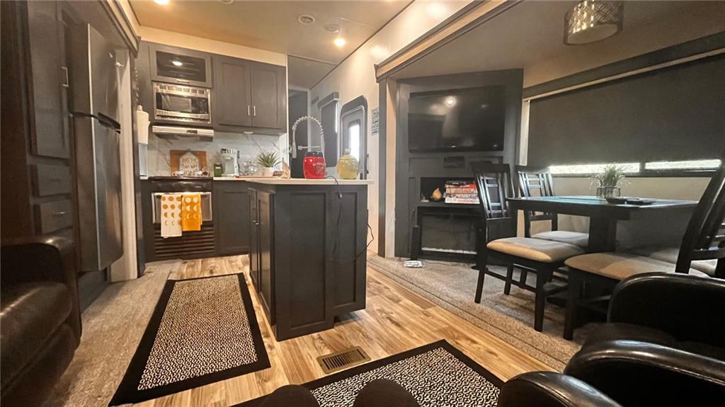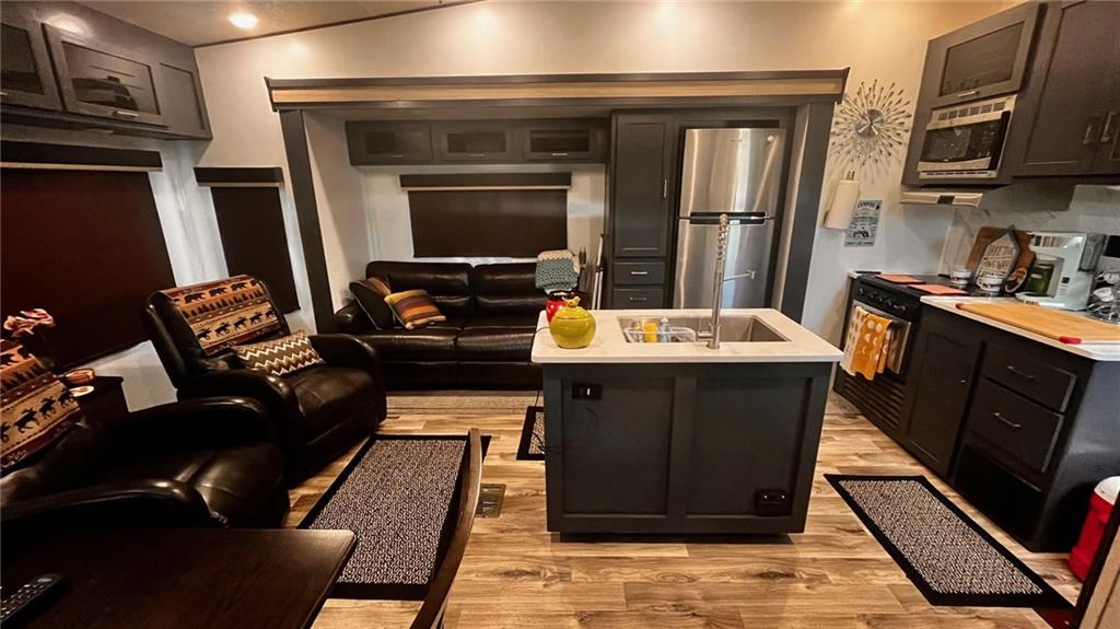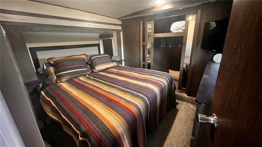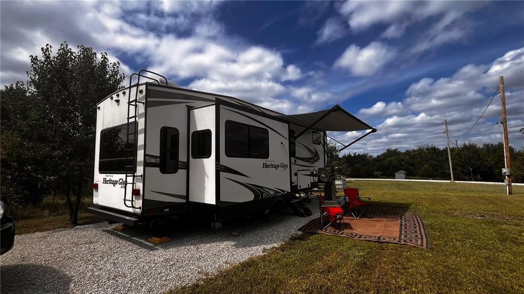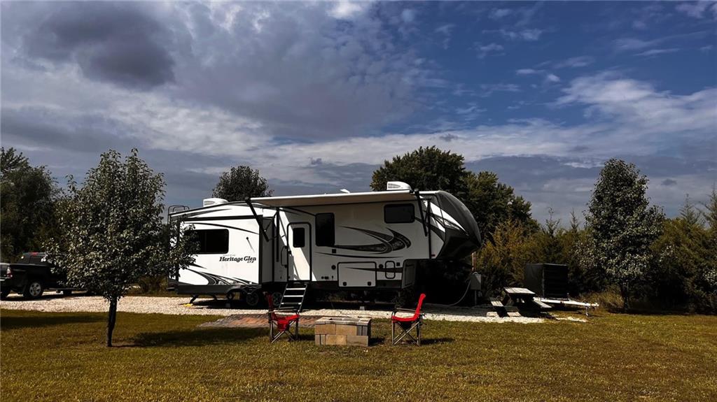 This is the perfect lot for enjoying the lake life in the Linn Valley community. The lot has a 100 AMP electric meter, crushed rock driveway for RV level positioning, a firepit, and includes the 275-gallon water container and trailer. A few of the features on the camper: 3 slide-outs with 15 foot awning, Kitchen has a residential refrigerator, Bathroom has a residential size shower and porcelain toilet; Bedroom has a custom king-size RV bed, large closet and dresser. The closet is plumbed for washer/dryer; Living area has ceiling fan, table with 4 chairs, 2 recliners, and a couch that pulls out into a full-size bed:2 rooftop AC units with individual thermostat controls. Come experience a great community with an 18-hole golf course, clubhouse with regularly scheduled activities, a community center with an exercise and fitness room, 2 swimming pools, a mini golf course, basketball and tennis courts, a walking trail, playground, fishing dock, boat ramp, campgrounds, shelter houses, a beach, sand volleyball, and more! Several stocked lakes and the main lake on which you can boat and jet-ski. There is personal property being sold with this listing.