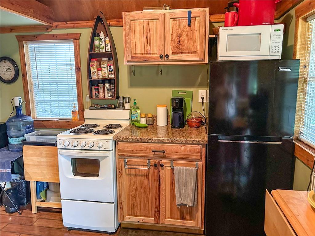Discover the ideal glamping cabin situated on two buildable lots at Linn Valley Lakes. These lots provide ample shade, a gravel driveway, and a small shed/glamping cabin. The building includes a loft, a living room area, and a kitchenette. Whether you choose to camp, glamp, or simply use it as a resting spot while you build your dream home, this property offers endless possibilities.