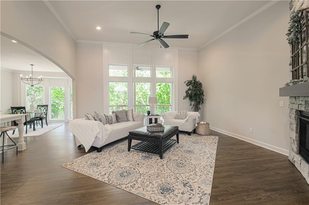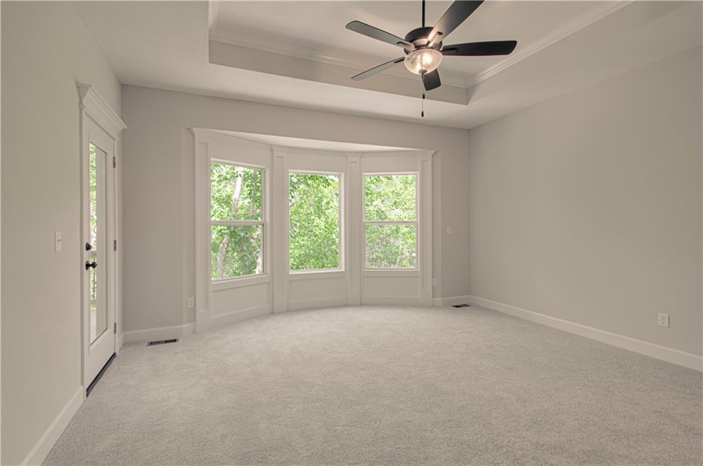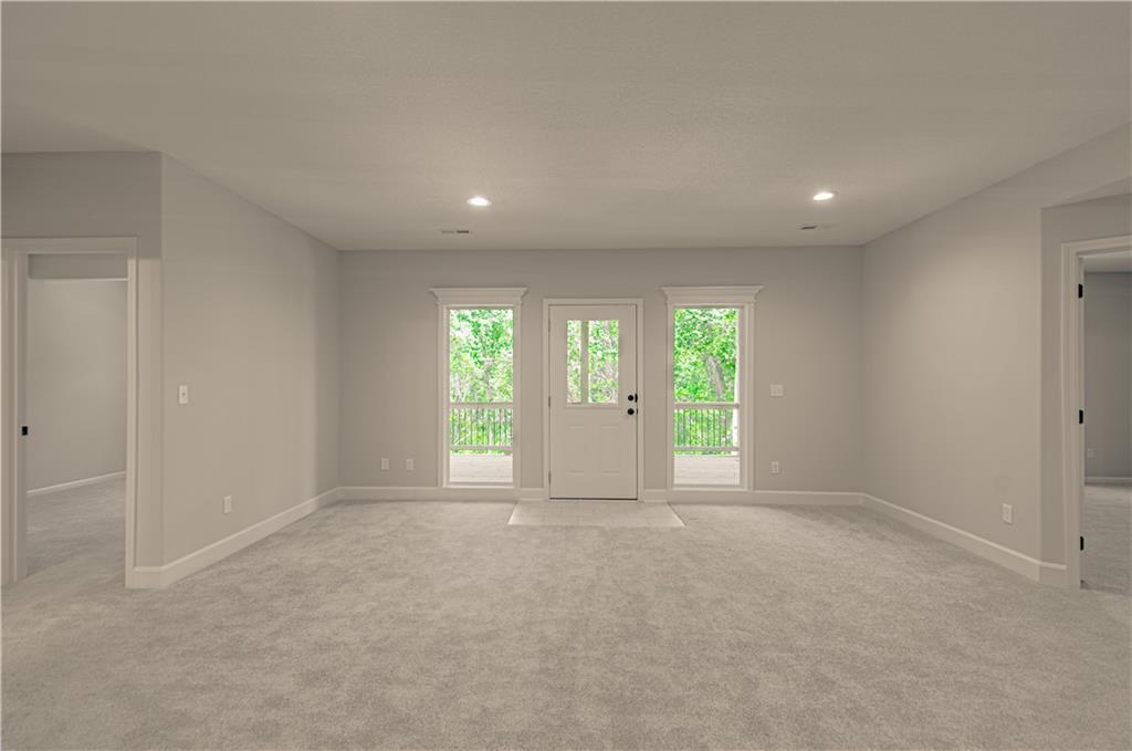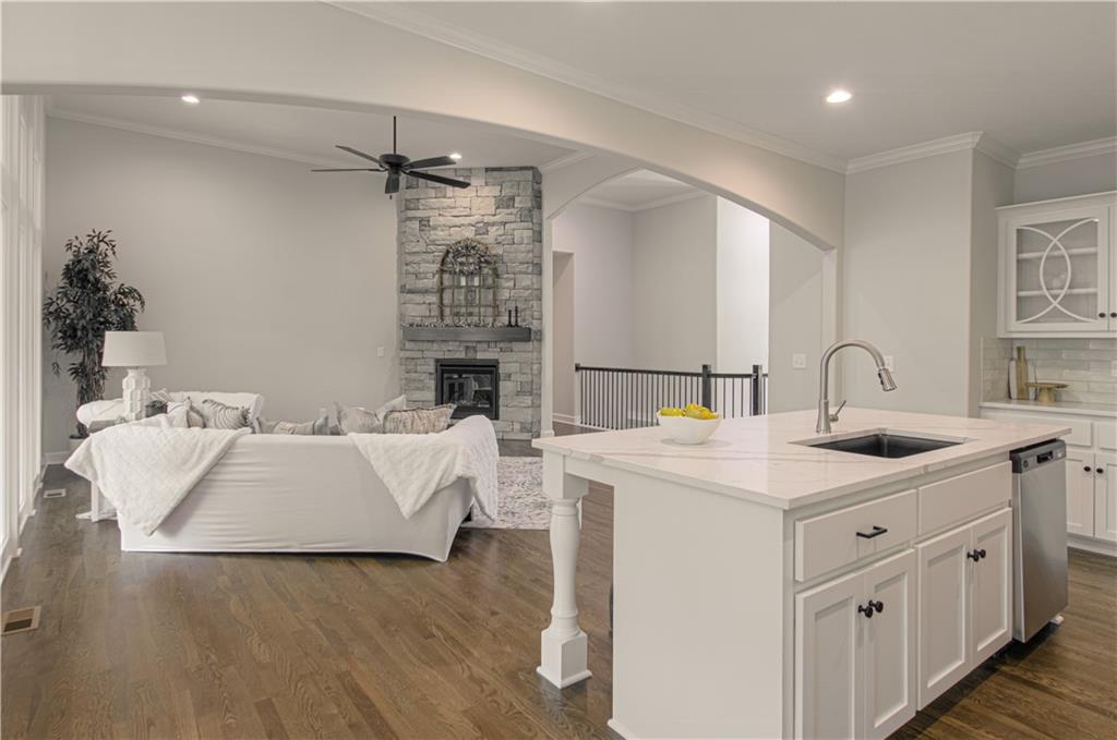 **NEW PRICE**REDUCED $10,000**COMPLETED AND MOVE-IN READY**The "NOAH" by Robertson Construction! Sitting on a Premium TREED LOT and BACKING TO TREES this Gorgeous Reverse 1.5-Story offers 2822 sq. ft. and beautiful detail throughout. Floor to Ceiling windows overlook the back yard with a peaceful view of nature. An impressive Open Main Level offers a Corner Stone Fireplace, Real Hardwood Floors, Private Master Suite, Luxurious Master Bath with a Walk-in Shower, Huge Soaker Tub and access to the Laundry Room complete with a utility sink. Also on this level is Bedroom 2 (makes a great home office) and 2nd Full Bath. The gourmet Kitchen has Custom Built Cabinets, UPGRADED Quartz Countertops and 5 burner Gas Cooktop, separate Electric Oven, Black Composite Sink, Island and a Walk-in Pantry. There are 2 OVERSIZED DECKS. The Top Deck has easy access from both the Breakfast Room and Master Suite. The Lower Deck, at the Walkout offers another great view with steps leading to the back yard. The Finished Lower Level WALKOUT offers more Floor to Ceiling Windows, WET BAR with Beverage Fridge, 2 more Bedrooms, 2 Baths, Family Room and a GENEROUS AMOUNT OF STORAGE in 2 STORAGE ROOMS. CUSTOM GARAGE DOORS. Subdivision amenities include a pool, clubhouse, tennis/basketball courts and play area. Located in the highly-rated NKC/Staley High School district.