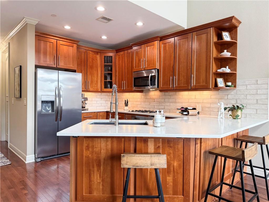 Sophisticated & Stylish in Mission Farms! This 1.5-story condo offers 2 bedrooms, 2.5 baths, and 1,728 sq ft of beautifully refreshed space. Thoughtful updates throughout include a brand-new primary shower (Aug 2025), new upstairs ceiling fans (Aug 2025), and a new refrigerator and dishwasher (May 2025). Major systems are in excellent shape with newer HVAC units—downstairs (2021) and upstairs (2022). Additional upgrades include quartz countertops, sinks, kitchen backsplash, Bertazzoni cooktop, trash compactor, disposal, light fixtures, and carpet—all installed in recent years. Enjoy the peace of mind of maintenance-free living plus the convenience of two reserved spaces in the secure underground garage. HOA covers water, gas, insurance, common areas, and garage maintenance. Steps from Mission Farms’ vibrant restaurants, shops, and amenities, this condo perfectly pairs modern comfort with unbeatable location.