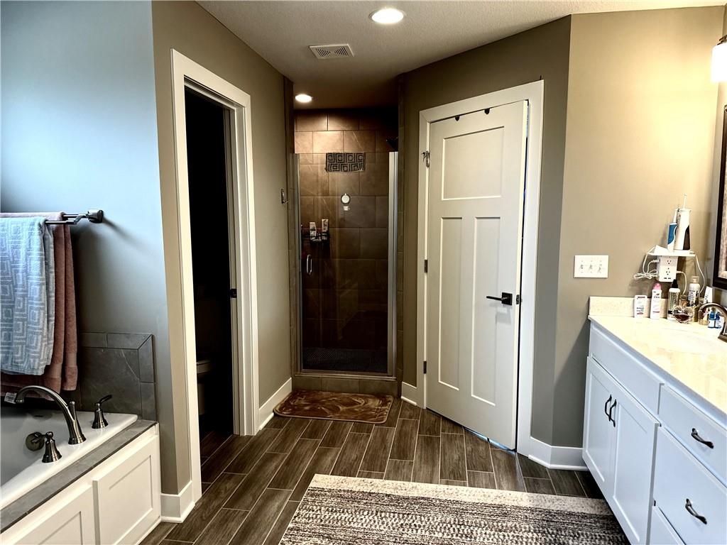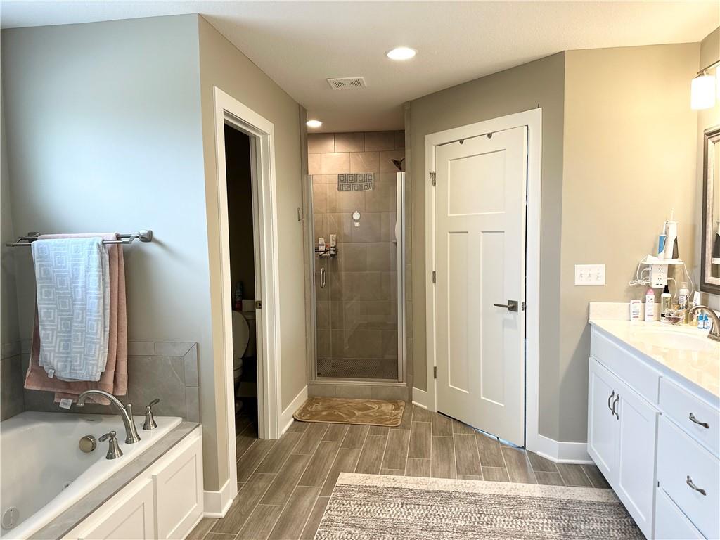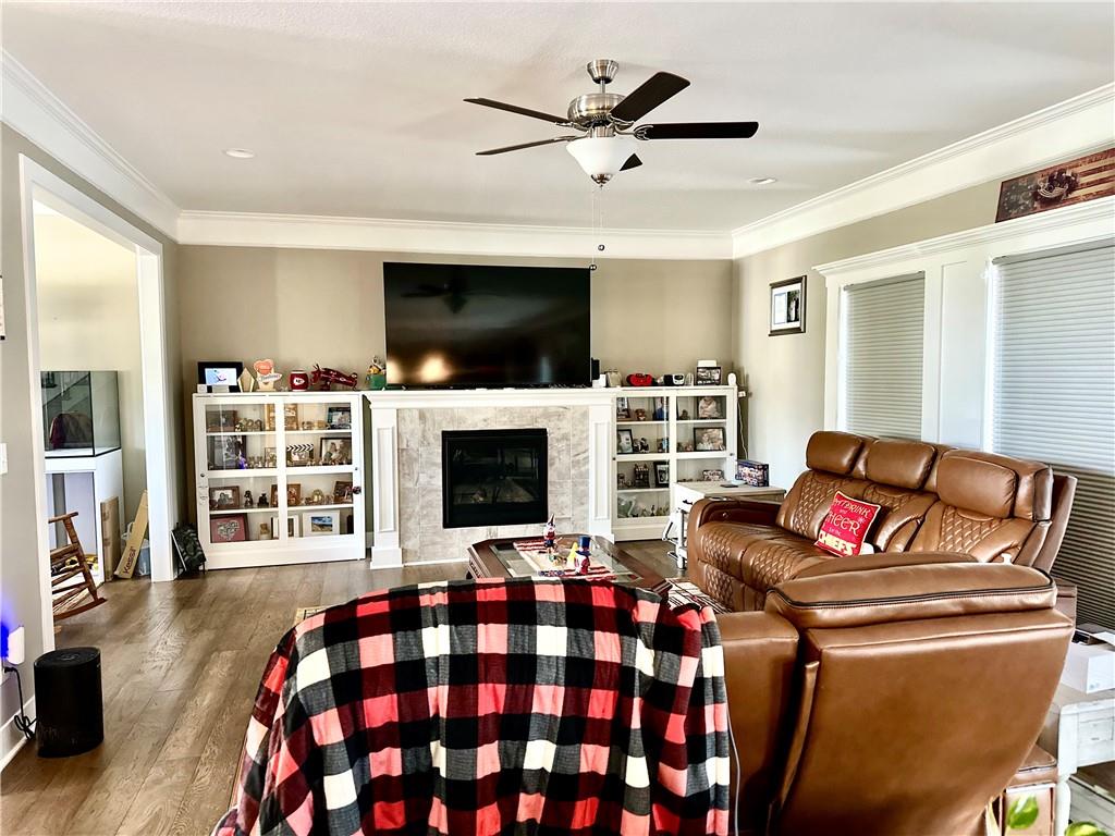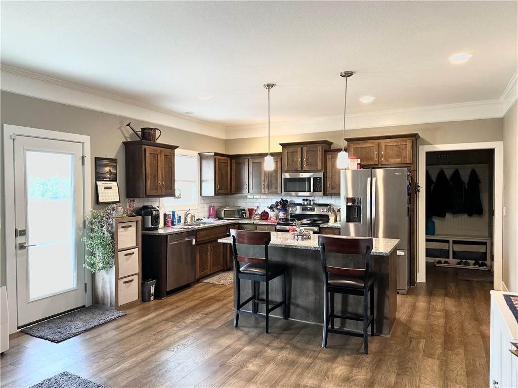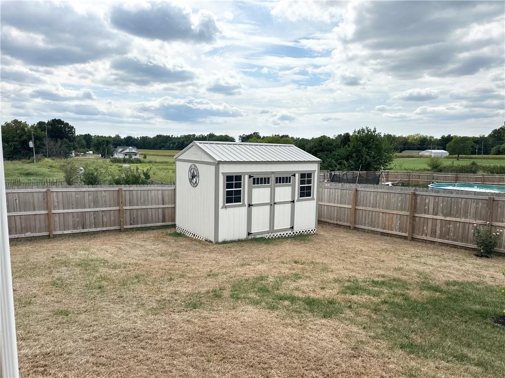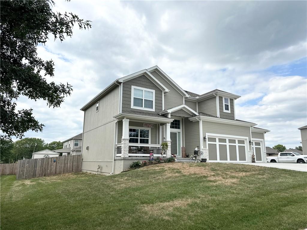 Stunning Newer Home on a Spacious Corner Lot! This beautifully maintained 4-bedroom, 2.5-bath home offers an inviting open floor plan with rich hardwood floors and elegant finishes throughout. The expansive master suite features a luxurious en-suite bath complete with double vanity, a walk-in shower, whirlpool tub, and an oversized walk-in closet. Enjoy the convenience of a laundry room located on the bedroom level. The gourmet kitchen boasts gorgeous stained cabinetry, a large island, granite countertops, and stainless steel appliances—perfect for entertaining. A formal dining room and a spacious family room with a cozy gas fireplace to add warmth and charm. Step outside to a covered patio and a fully fenced backyard for added privacy. Additional highlights include a 3-car garage wired for electric vehicle charging, a 10x14 storage shed, and a water softener system. Don’t miss this exceptional home that combines comfort, style, and functionality