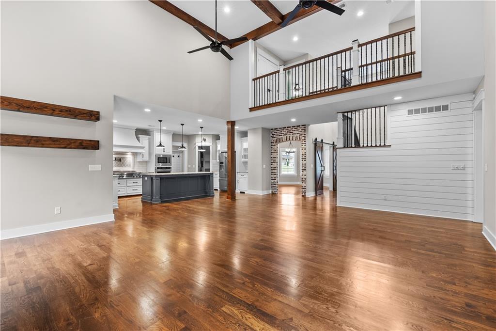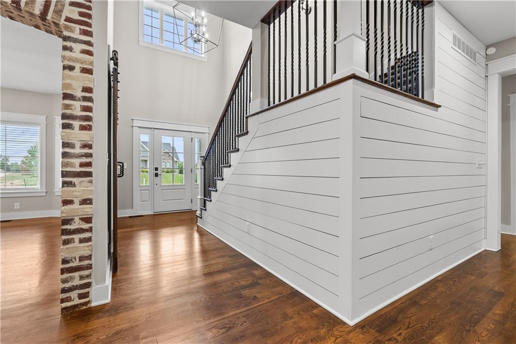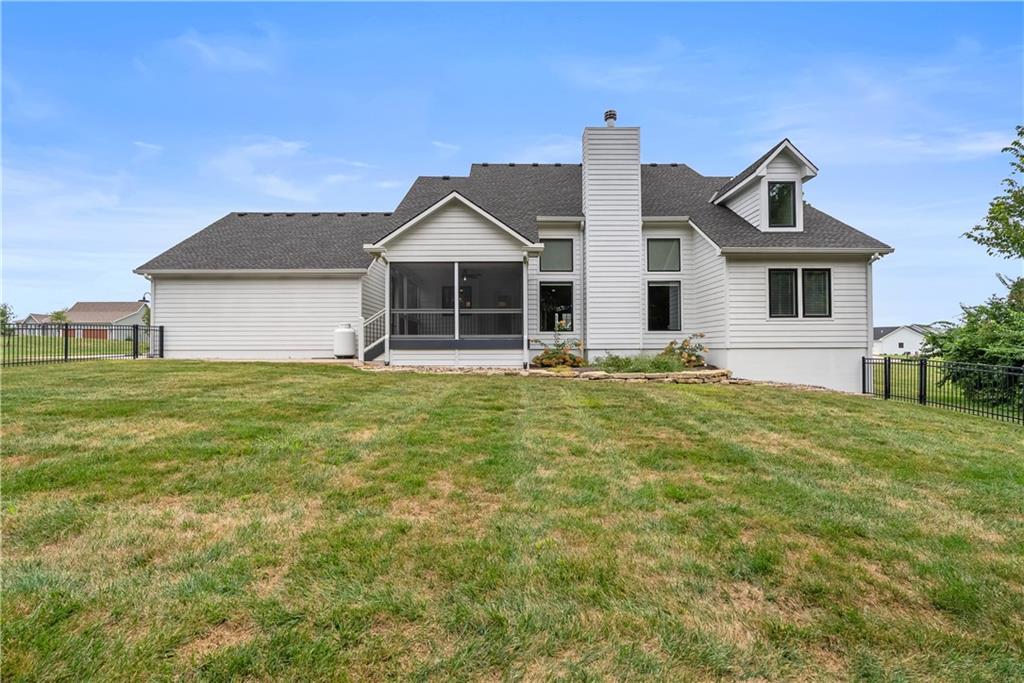 Stunning Modern Farmhouse situated on just over 1 Acre in the coveted Shadow Glen Subdivision. This Gorgeous 1.5 Story home highlights High-End finishes along with an open floorplan that is perfect for Entertaining! As you enter the home you are welcomed by gleaming hardwood floors thru-out and vaulted ceilings. The Great Room boasts a beautiful Stone Fireplace (wood burning), wood beams and floor-to-ceiling windows! Gourmet Kitchen features an oversized Island, custom cabinetry, granite Counters, Gas range + Double oven, Coffee bar & Large Walk-in Pantry. Just off the kitchen is the Screened-in Deck overlooking the peaceful fenced-in yard backing to trees and greenspace! Spacious Main Floor Master Suite boasts jaw dropping Ensuite Bath and Large Walk-in closet. Main level also highlights Formal dining room, 2nd Bedroom + Full Bath and Laundry Room. Upper Level offers 3 Bedrooms, Full Bath and the possibility to finish living space over the garage. Daylight lower level offers bountiful storage or the opportunity for future finish & stubbed for a Full Bath and Safe room under the front porch...so many possibilities! Enjoy catching sunrises and sunsets on the Large front porch or out back on the back patio. Additional features include an In-ground sprinkler system, 2 HWH, Security system & Expandable attic! Home is a Must See!
