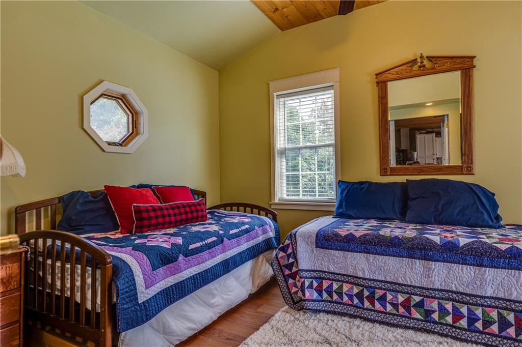 Sugar Valley lakes, 1.5 story home overlooking the lake on two mature tree covered lots. Enjoy the 3 decks & bay windows. This home is 2000 sq ft with a detached 3 car garage and 8x12 garden shed