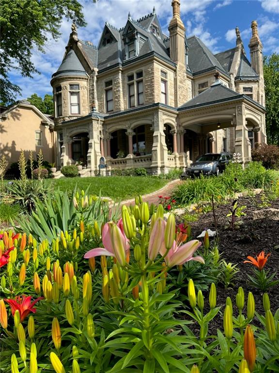 Shakespeare Chateau Inn and Gardens, located in the historic Hall Street District, is one of St. Joseph’s premier homes. A REAL BONUS IS HOW CLOSE IT IS THE KANSAS CITY INTERNATIONAL AIRPORT! Built in 1885, this Chateauesque style home was built by Nathan P. Ogden. This high-Victorian mansion is an architectural gem, showcasing 47 original stained glass windows, exquisite hand-crafted woodwork, an expansive encaustic tile foyer, ornate plaster ceilings, and many original chandeliers - just to name a few. The main house is a fully furnished turn-key bed and breakfast with six elegant suites, a spacious commercial kitchen and wine cellar perfect for small gatherings. Four guest rooms on the second level are furnished with period art and antiques each named after works of Shakespeare. Two additional suites on the third level are ideal for long term guests. The carriage house provides three apartments, perfect for longer-term rentals, adding versatility to the property. 819 Hall Street is also included. This all brick house has been refurbished on the exterior and inside is a blank canvas, stripped to the studs and ready for a transformative rehab. Whether you envision a personal residence, a thriving B&B, or an event space, the possibilities here are endless. Live your dream and make Shakespeare Chateau your next great chapter. This is a RARE OPPORTUNITY to own a piece of history. This house has changed hands only five times in 140 years and remains as magnificent as the day it was built.