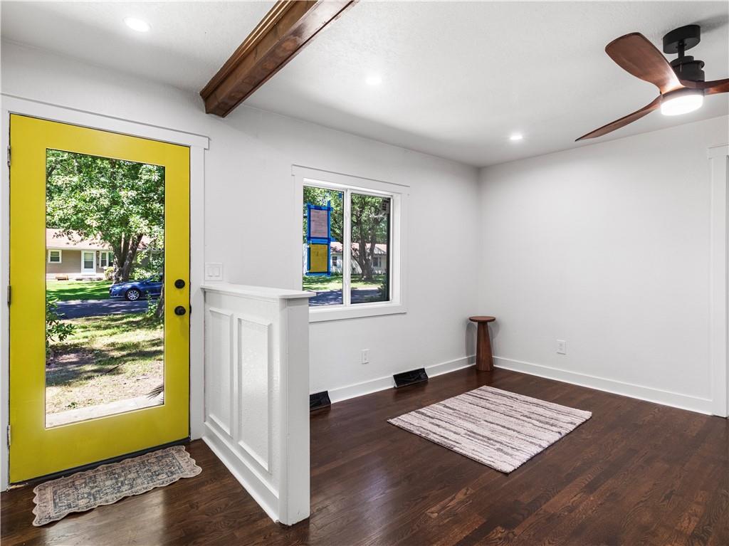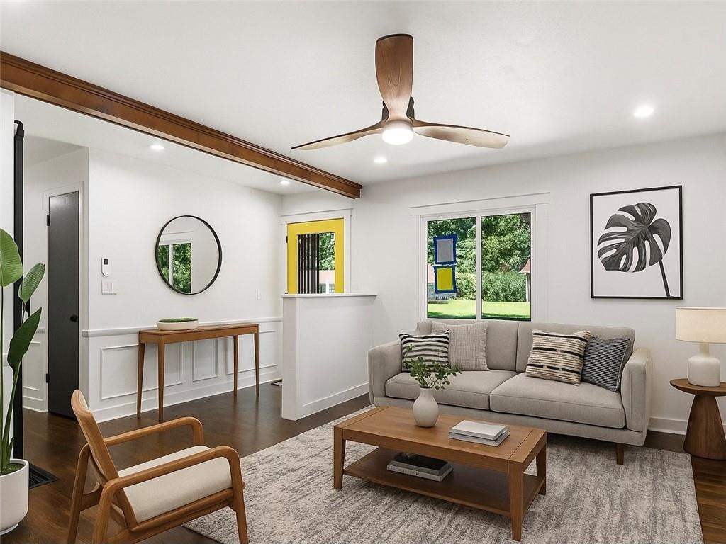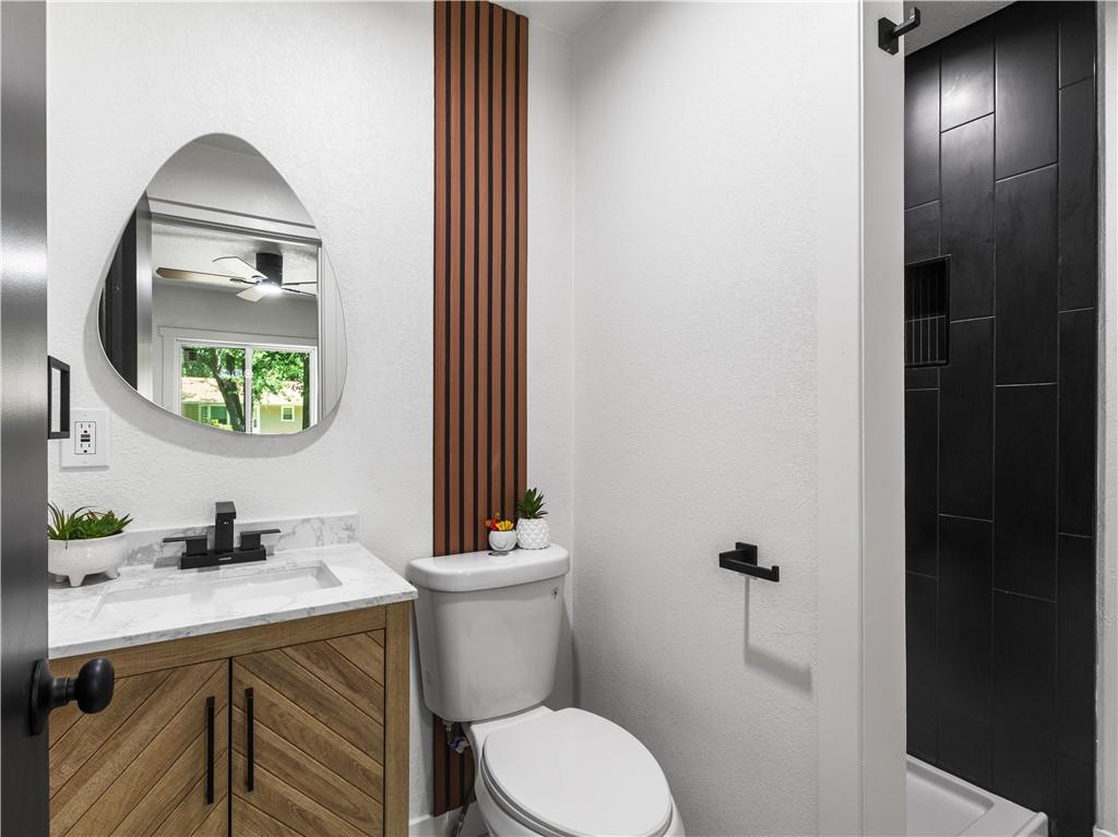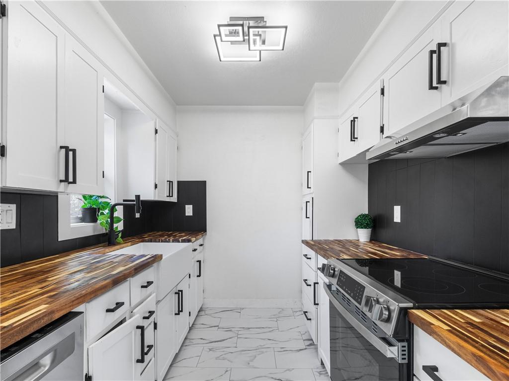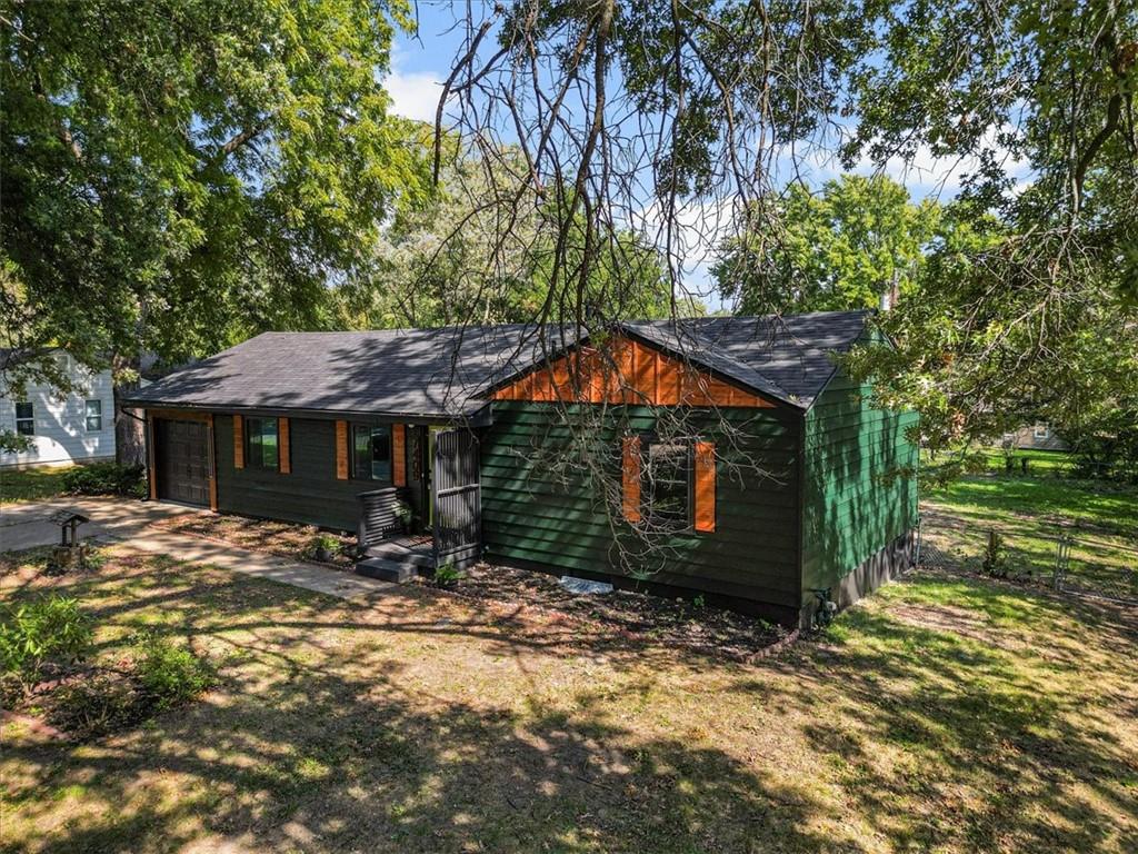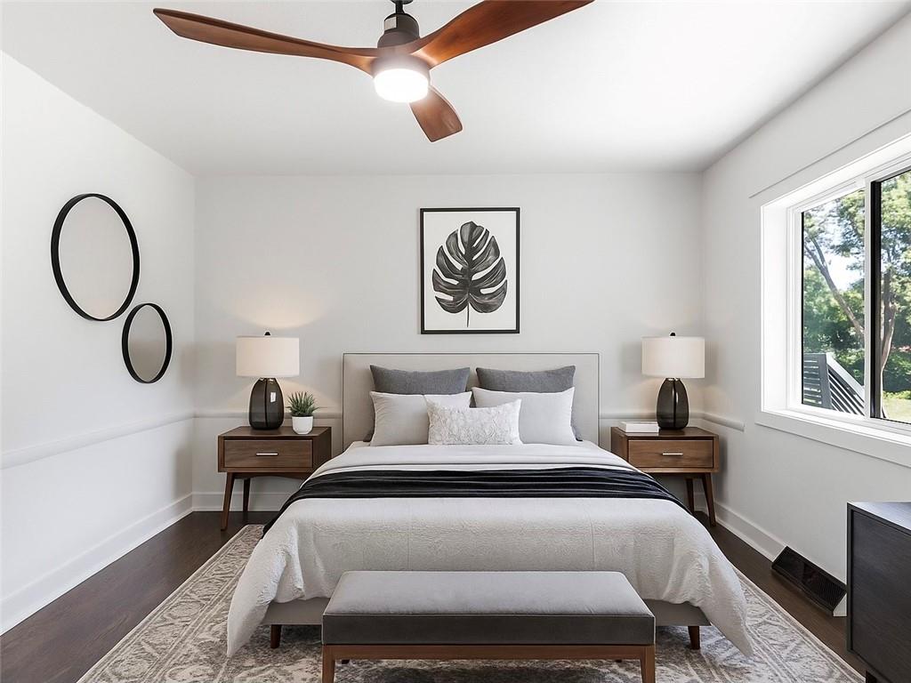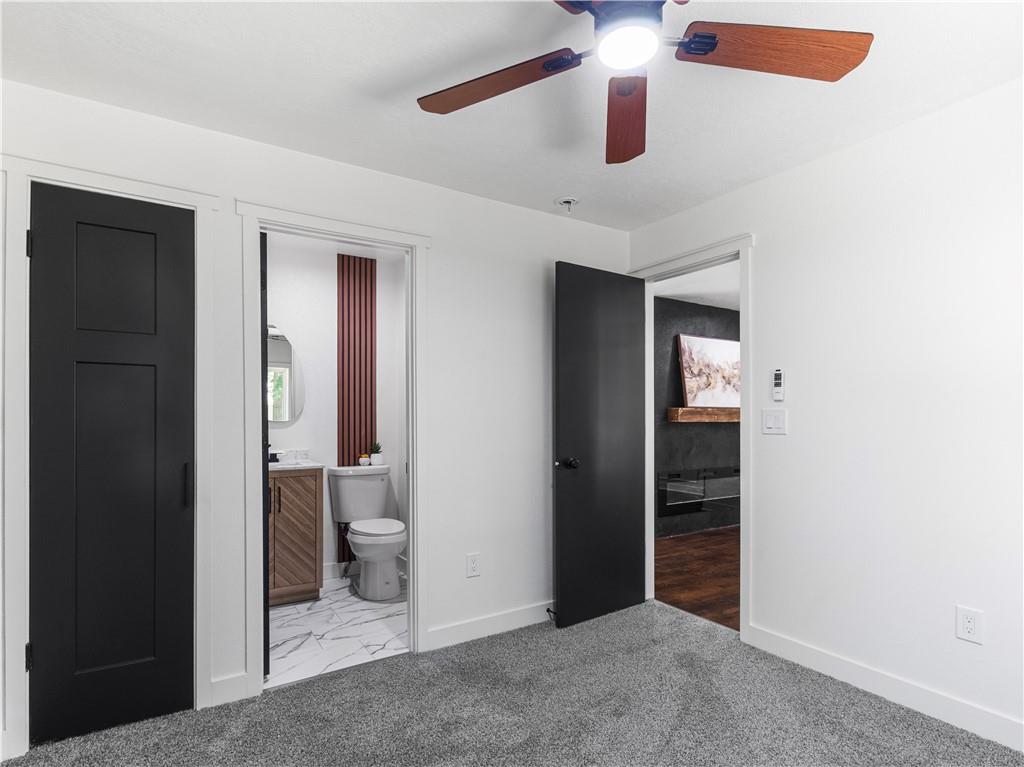 Welcome to this stunningly renovated 3-bedroom, 3-bathroom ranch-style home where modern updates meet timeless comfort. Every major system has been fully upgraded—including a brand-new roof, HVAC, furnace, water heater, updated electrical, and all-new plumbing—offering peace of mind for years to come. Inside, you'll be welcomed by a light-filled living room featuring a sleek electric fireplace and an open-concept design that flows effortlessly into the kitchen and dining area. Perfect for entertaining or relaxing, this layout creates a natural connection between indoor and outdoor living. One of the standout features of this home is its rare and versatile floor plan, offering two private owner suites on opposite ends—ideal for multi-generational living, guests, or flexible work-from-home needs. The first suite, located off the living room, features a fully renovated bathroom and a spacious walk-in closet. Down the hall, you'll find a second bedroom, a stylish full bathroom, and a convenient main-level laundry closet. The second owner suite is privately tucked away and includes its own en-suite bathroom and generous walk-in closet, creating a peaceful retreat. Throughout the home, enjoy all-new finishes including refinished hardwood flooring, plush carpeting, and elegant tile work. Step outside to a brand-new deck overlooking a flat, spacious backyard and a lower concrete patio—perfect for outdoor dining or cozy fall evenings. The unfinished walk-out basement provides ample storage and exciting potential for future living space. Additional highlights include a one-car garage, oversized driveway, and a location in a quiet, established neighborhood close to shops, restaurants, schools, and major highways. Move-in ready and beautifully updated—this home has it all!