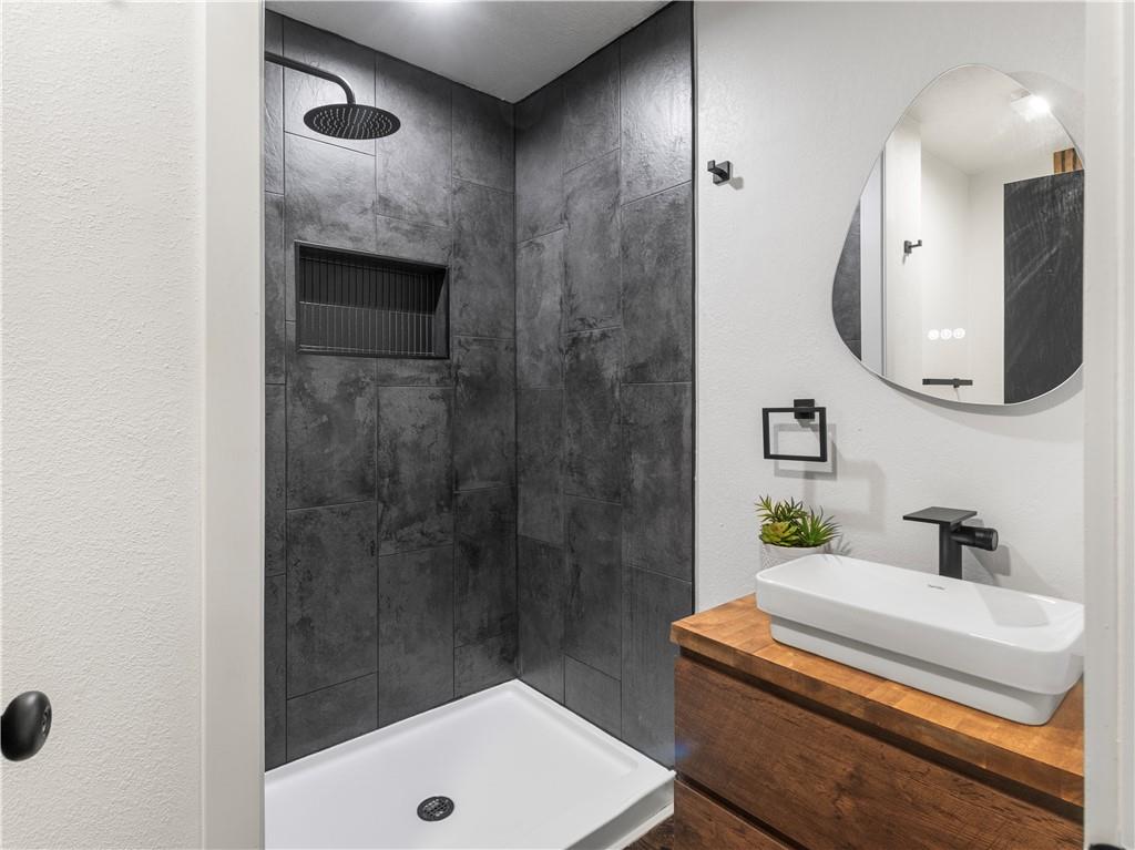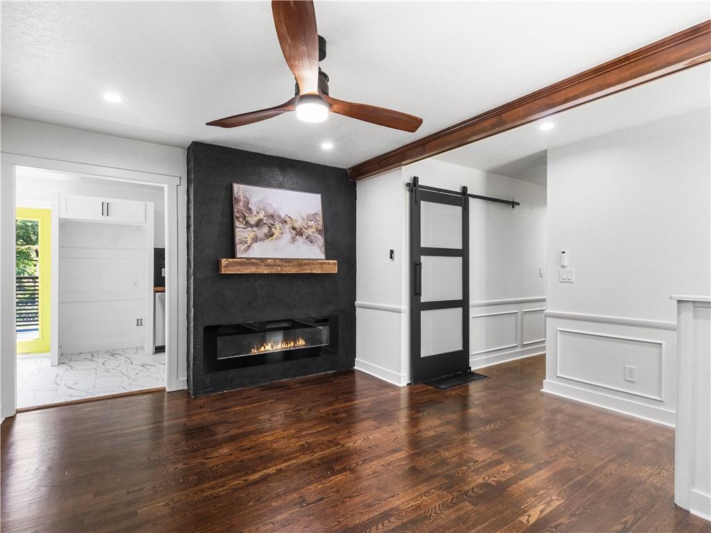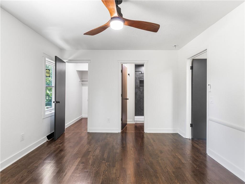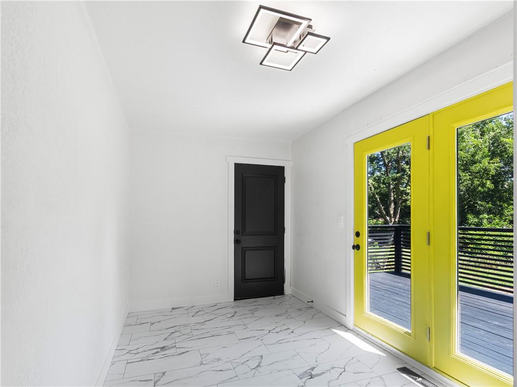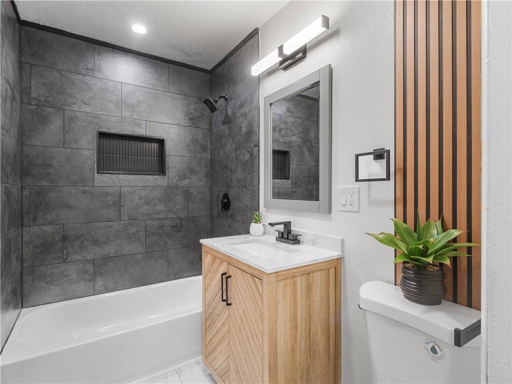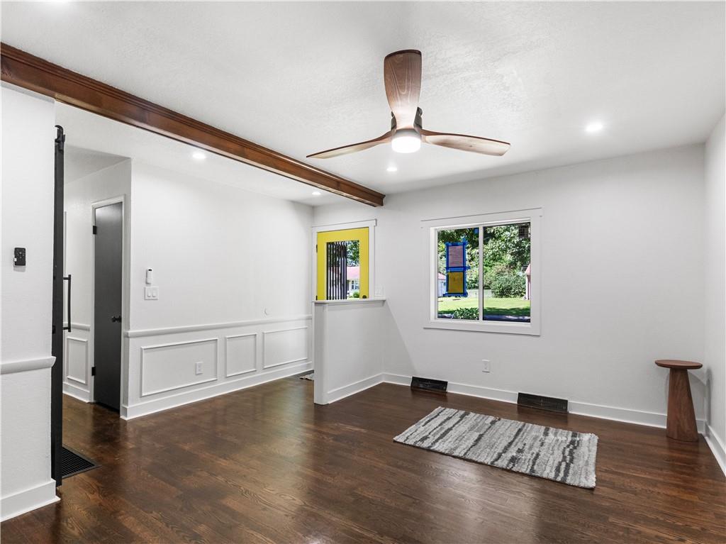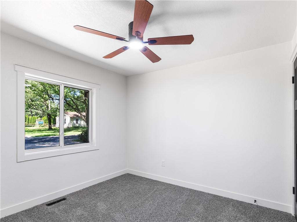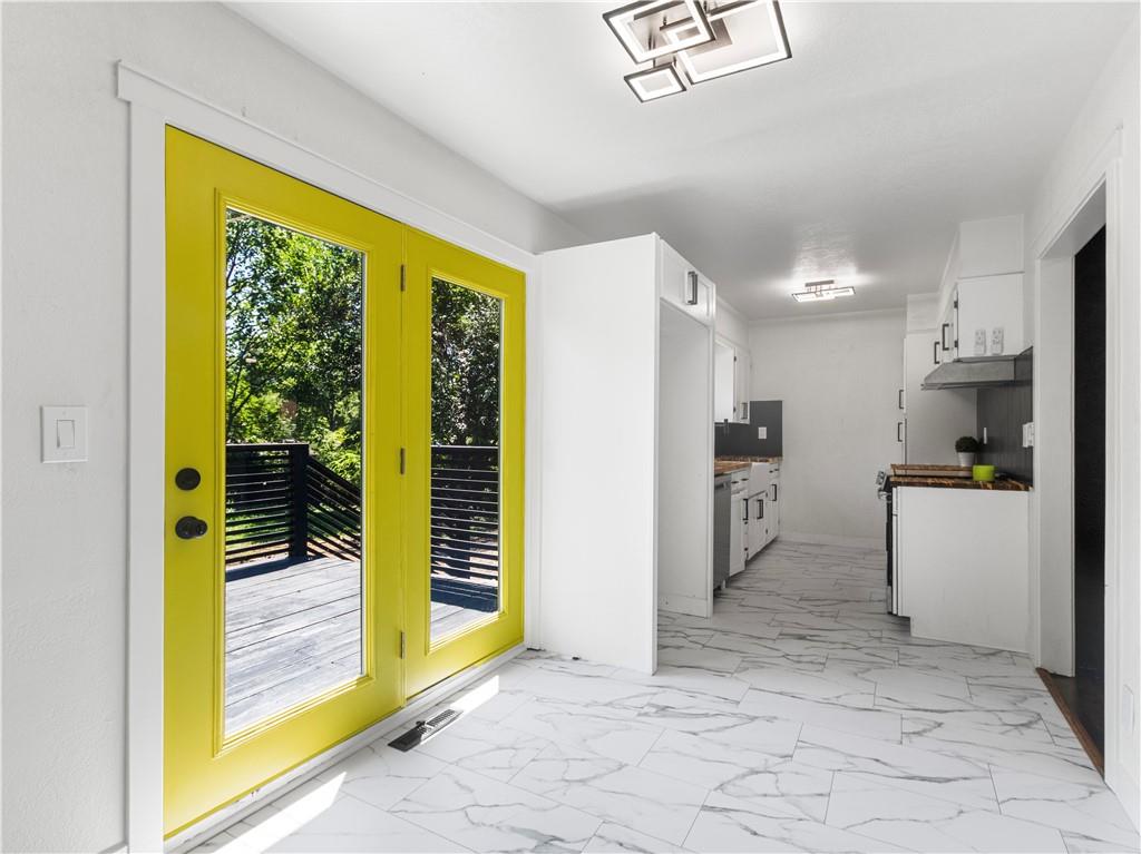 Welcome to this stunningly renovated 3-bedroom, 3-bathroom ranch-style home where modern updates meet timeless comfort. Every major system has been fully upgraded—including a brand-new roof, HVAC, furnace, water heater, updated electrical, and all-new plumbing—offering peace of mind for years to come. Inside, you'll be welcomed by a light-filled living room featuring a sleek electric fireplace and an open-concept design that flows effortlessly into the kitchen and dining area. Perfect for entertaining or relaxing, this layout creates a natural connection between indoor and outdoor living. One of the standout features of this home is its rare and versatile floor plan, offering two private owner suites on opposite ends—ideal for multi-generational living, guests, or flexible work-from-home needs. The first suite, located off the living room, features a fully renovated bathroom and a spacious walk-in closet. Down the hall, you'll find a second bedroom, a stylish full bathroom, and a convenient main-level laundry closet. The second owner suite is privately tucked away and includes its own en-suite bathroom and generous walk-in closet, creating a peaceful retreat. Throughout the home, enjoy all-new finishes including refinished hardwood flooring, plush carpeting, and elegant tile work. Step outside to a brand-new deck overlooking a flat, spacious backyard and a lower concrete patio—perfect for outdoor dining or cozy fall evenings. The unfinished walk-out basement provides ample storage and exciting potential for future living space. Additional highlights include a one-car garage, oversized driveway, and a location in a quiet, established neighborhood close to shops, restaurants, schools, and major highways. Move-in ready and beautifully updated—this home has it all!