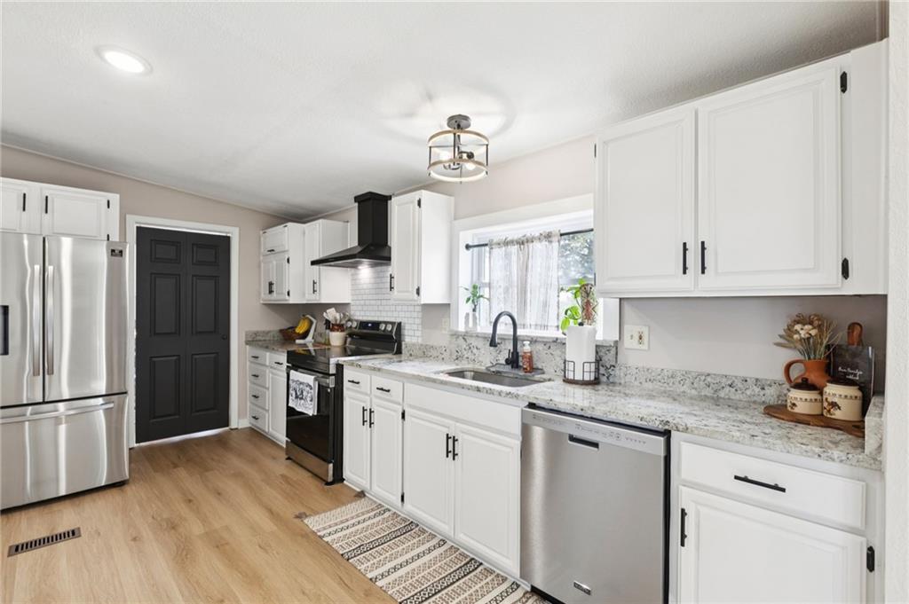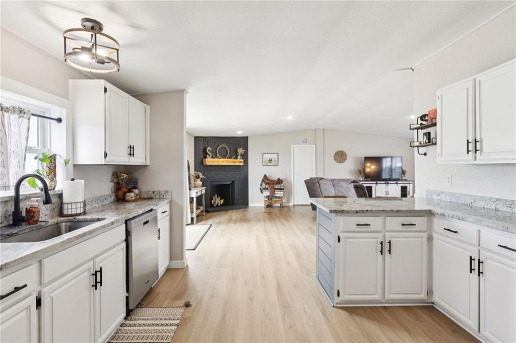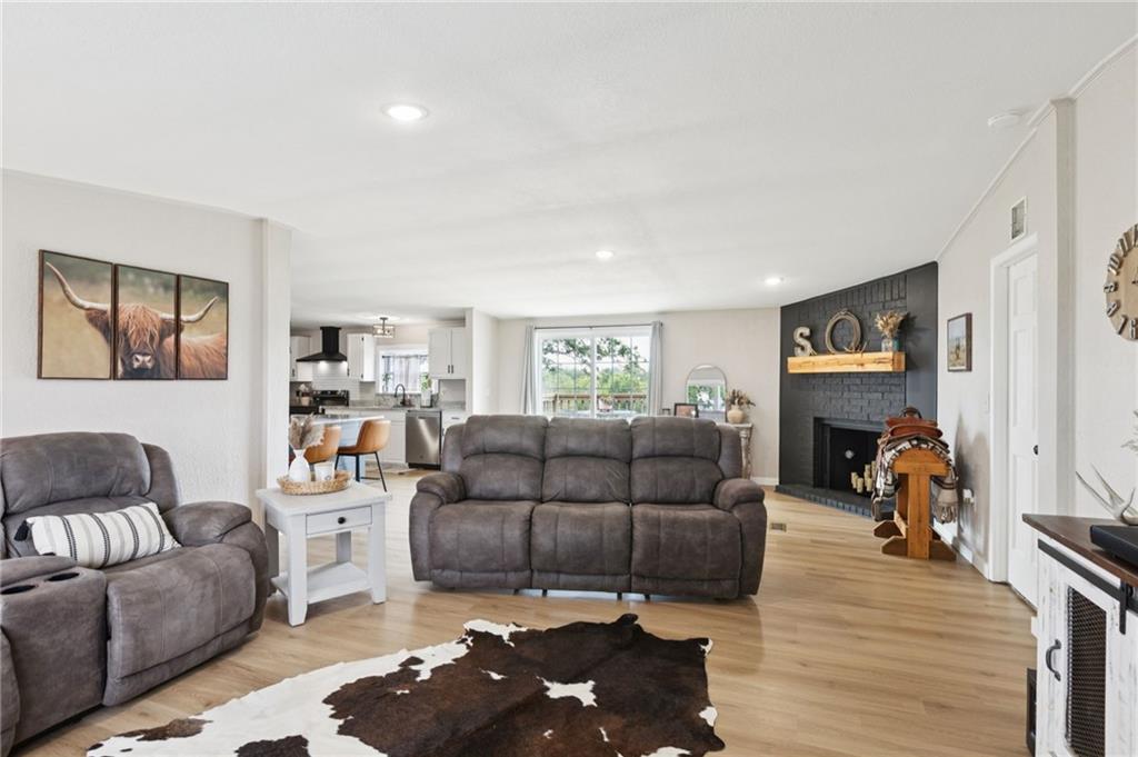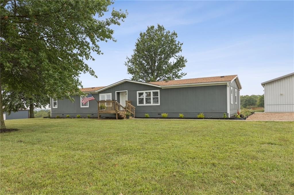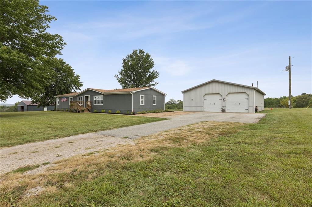 Stunning, fully updated 2,400 sq ft home nestled on 10 beautifully fenced acres with blacktop access and an exceptional setting. Sitting far back off the road and perched atop a hill, this home offers privacy, peaceful views, and a prime location that’s hard to beat. Inside, the home has been thoughtfully updated with new flooring, fresh paint, modern light fixtures, updated hardware, and granite countertops, creating a clean, move-in-ready feel. The split floor plan places the spacious primary suite on one end of the home, providing privacy and comfort, while the remaining bedrooms are located on the opposite side. Two bedrooms share a combined bathroom, and every room in the home features scenic views of the surrounding acreage. The large living room serves as the heart of the home and flows seamlessly into the open kitchen and formal dining area—perfect for entertaining. The kitchen also offers an eat-in dining space for casual meals and gatherings. A convenient laundry/mudroom with a half bath adds functionality for everyday living. Outdoors, the property truly shines with two impressive outbuildings. A 30x40 pole barn includes electric and water, while the 40x70 building features a concrete floor and electric, offering endless possibilities for storage, workshops, or business use. A storm shelter provides added peace of mind. This rare property delivers the perfect blend of updated living space, usable acreage, privacy, and accessibility—an ideal opportunity for those seeking space, versatility, and a beautiful country setting without sacrificing convenience.