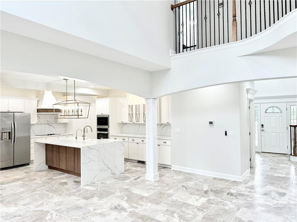 Welcome to this stunning home offering timeless curb appeal, a full covered front porch, and elegant modern farmhouse touches throughout. Situated on 3.20 peaceful acres, this beautifully updated six-bedroom, three-and-a-half-bathroom estate features 4,508 square feet of thoughtfully designed living space that is perfect for both entertaining and everyday comfort. Step inside to an impressive open-concept layout with soaring ceilings, abundant natural light, and a spacious great room that flows seamlessly into a gourmet kitchen. The kitchen is a true showpiece with gorgeous countertops, premium stainless steel appliances, custom cabinetry, and high-end finishes throughout. A dedicated home office with built-in cabinetry provides the perfect space for remote work or study. The home also includes a bonus room that can serve as a home gym, play room or storage. The finished lower level has a second full kitchen, a bar area, a spacious room, and a dining space. The home’s layout provides exceptional flexibility for any lifestyle. Step outside to your private outdoor retreat complete with a custom-designed playground that includes multiple playsets, slides, swings, and a trampoline. The large backyard is surrounded by mature trees, offering both privacy and space to relax or entertain. A chicken coop and raised garden beds add a touch of country charm and make it easy to enjoy farm-fresh eggs and homegrown produce. Additional highlights include an attached two-car garage, a spacious driveway, and a private setting that offers a sense of seclusion while still being conveniently located just minutes from town amenities. This exceptional property offers the perfect blend of style, space, and functionality. Schedule your private showing today and experience everything this move-in-ready home has to offer.