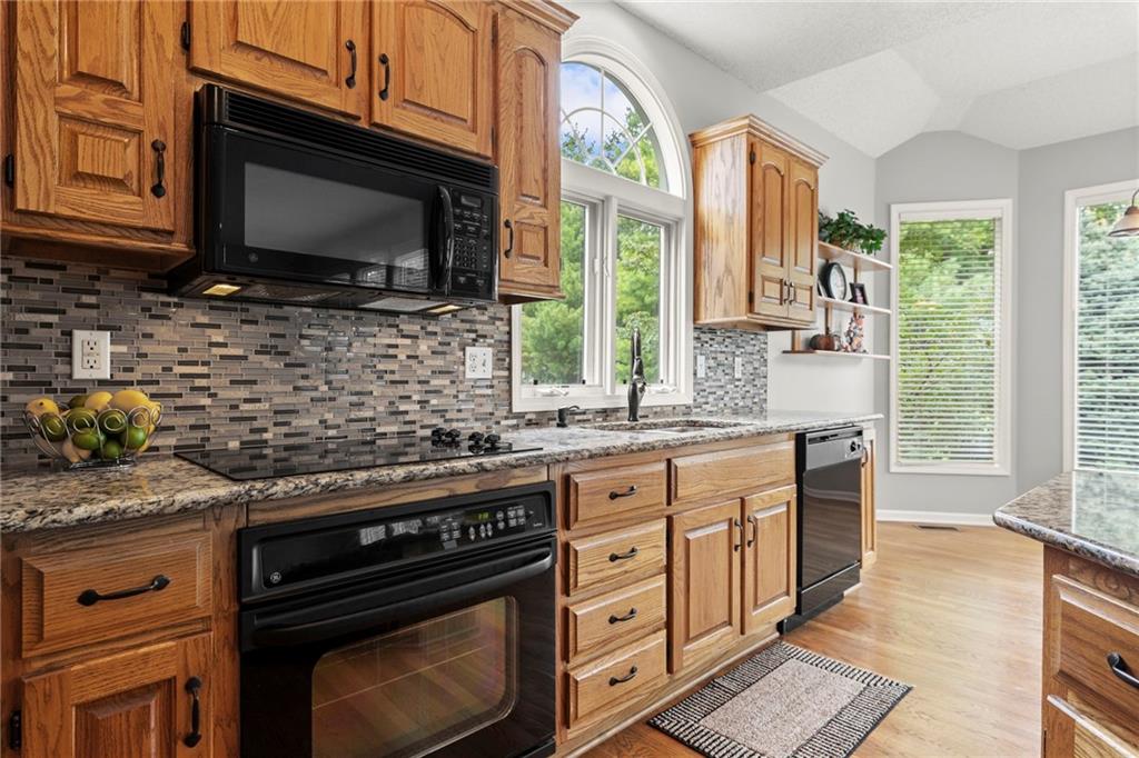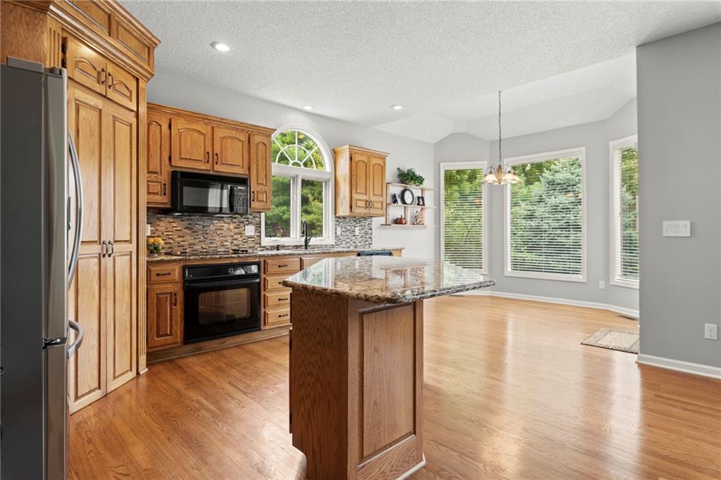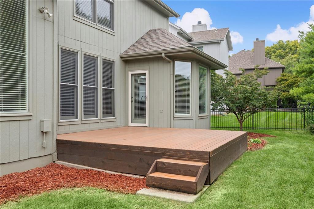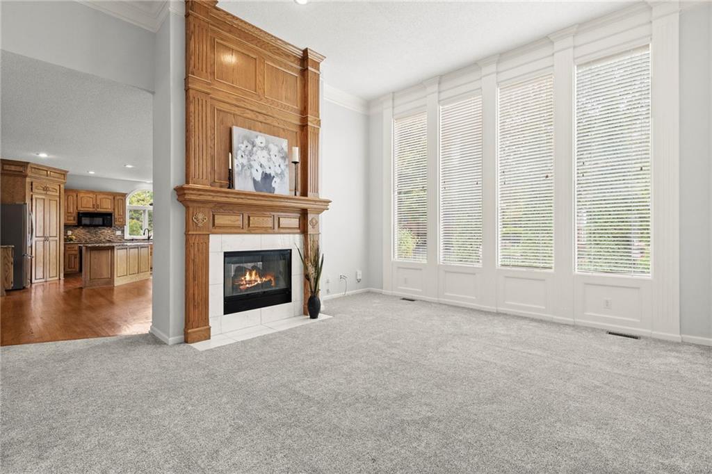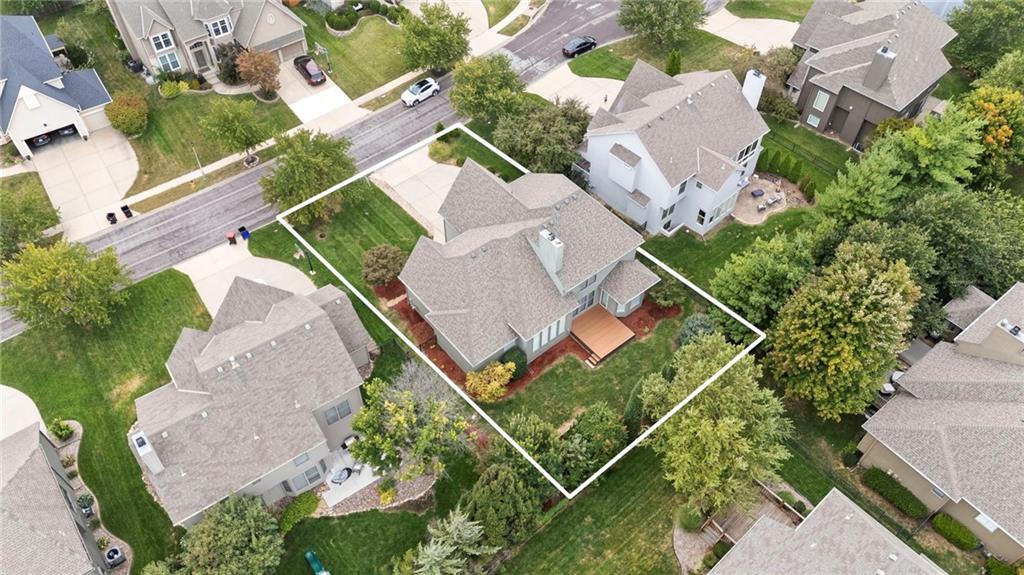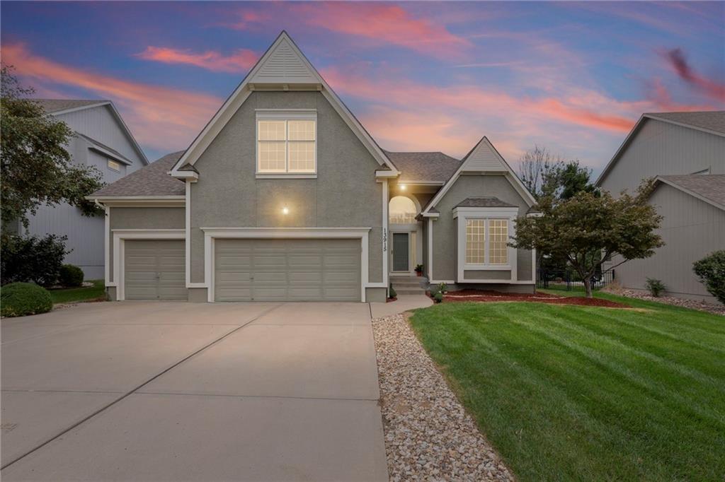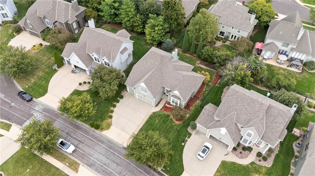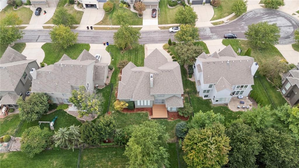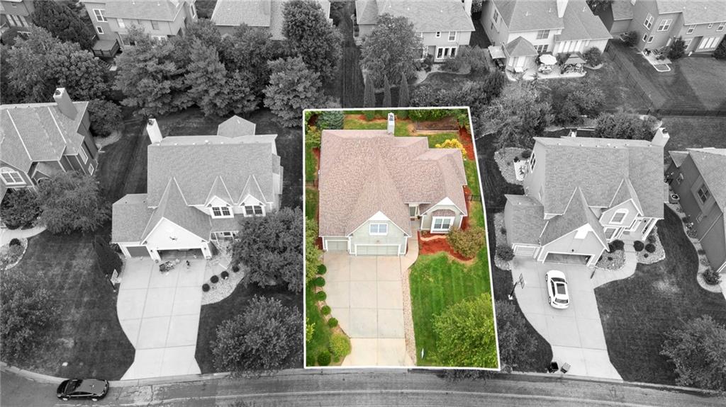 What are you waiting for? Finally you can grab a home with a main floor primary suite in the desirable Amesbury community! Step inside to a dramatic two-story entry and a spacious Great Room with floor-to-ceiling windows that fill the space with natural light. The warm Kitchen and Hearth Room feature beautiful wood flooring, updated granite counters, and a true cook's delight--an oversized prep island with no sink plus upgraded venting to the outside. A new refrigerator stays with the home, and the oversized corner pantry keeps appliances and groceries neatly tucked away. The main floor also offers a convenient laundry room with new tile flooring. You will enjoy the main floor primary suite with huge walk-in closet and a fully updated bath--expanded shower, new tile, and modern fixtures. Plush newer carpet extends throughout the main and lower levels of the home, creating a soft, inviting feel. Upstairs, you'll find brand new carpet, a versatile loft overlooking the entry and Great Room, along with three generously sized bedrooms, each with walk-in closets and bath access featuring fresh tile flooring. The finished lower level is an entertainer's dream--complete with a large TV area, kitchen/bar, full bath, exercise area, play area, craft space with utility sink, and an versatile walk-in closet designed for clothing and storage. Enjoy outdoor living on the newer composite deck overlooking the east-facing, fenced backyard with a raised bed for your garden, too! The three-car garage with utility sink adds extra convenience. Nestled on a quiet cul-de-sac in award-winning Blue Valley Schools, this home truly has it all. Just a two block walk to the paved 1/2 mile pathway to Amesbury Lake Park. This trail connects with the Tomahawk Trail system--12 miles of fun!