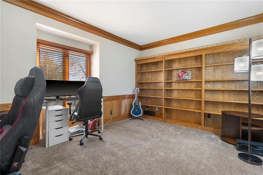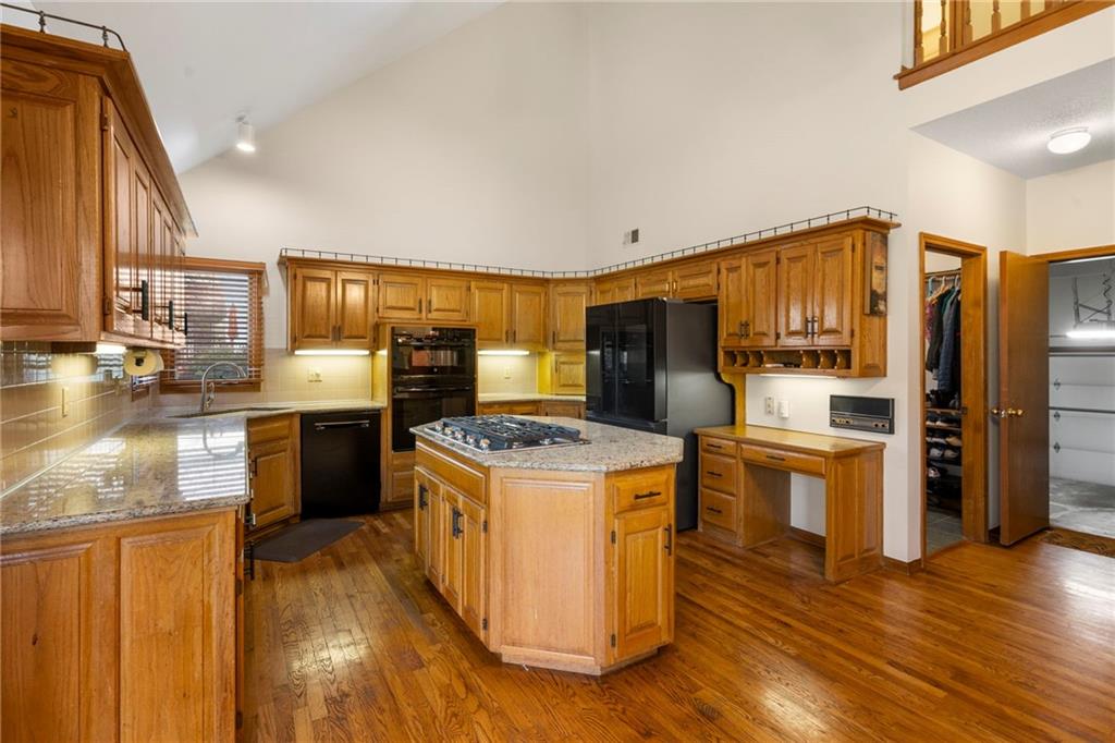 Beautiful 1.5 story home in sought-after Lakeview Estates featuring a new roof, freshly painted exterior and interior, a sunroom addition, newer HVAC, and a new gas cooktop with downdraft. The impressive great room showcases an oak box beam ceiling, stone fireplace, and floor to ceiling windows. The gourmet kitchen offers a vaulted ceiling, oversized island, granite countertops, abundant cabinetry, walk in pantry, and built in wet bar. The main floor primary suite is a retreat with a vaulted ceiling, jetted tub, and enormous walk-in closet. A library with oak paneling and built ins, along with a formal dining room with a cathedral ceiling. Upstairs, spacious secondary bedrooms feature large walk-in closets, including one with a cedar closet. The open full basement includes a full bath, a stone area designed for a future wet bar and provides abundant storage. With thoughtful details throughout and just steps from the elementary school, this exceptional Shawnee home is one you won’t want to miss.