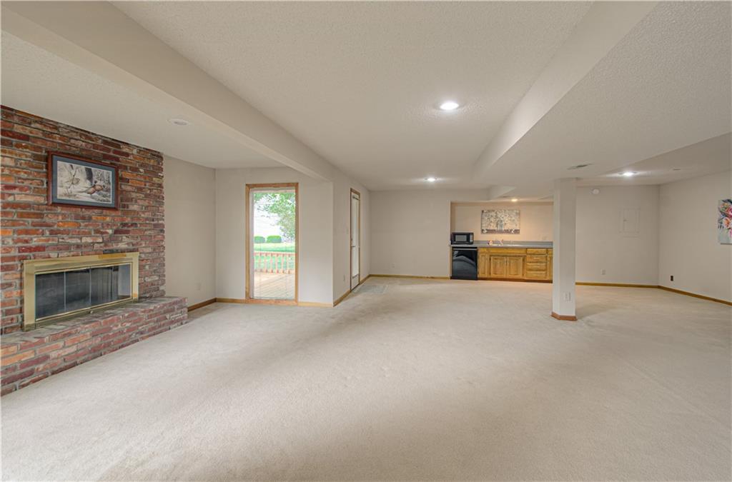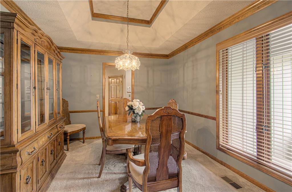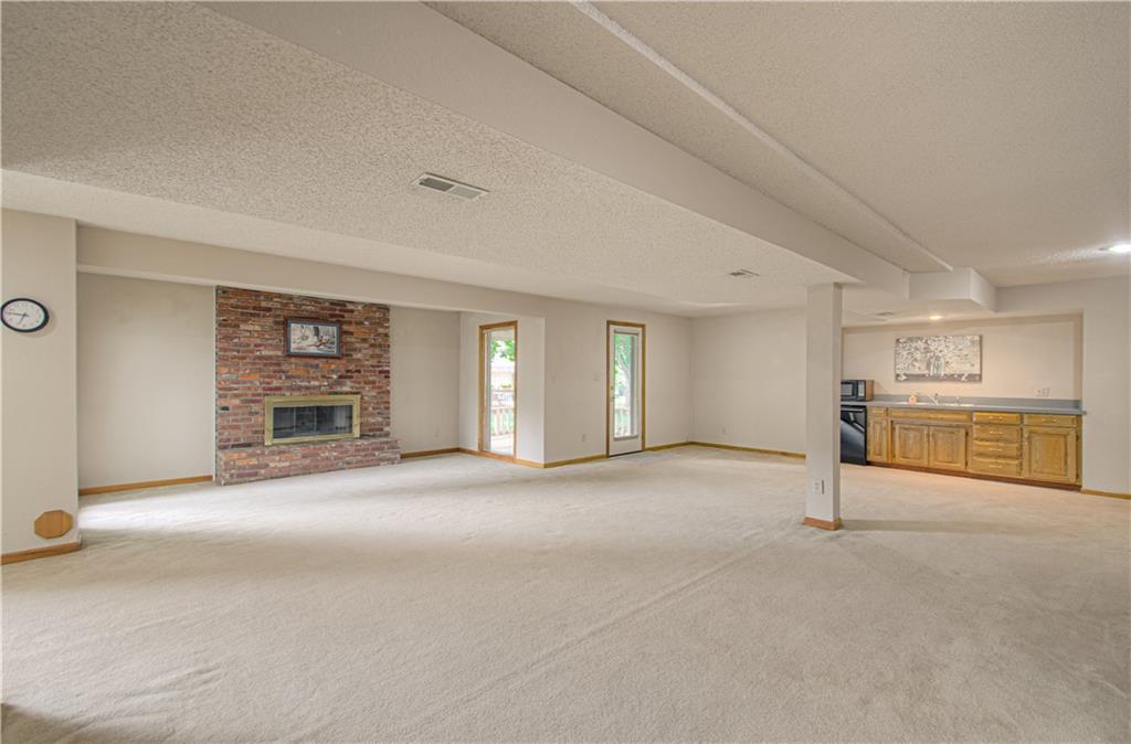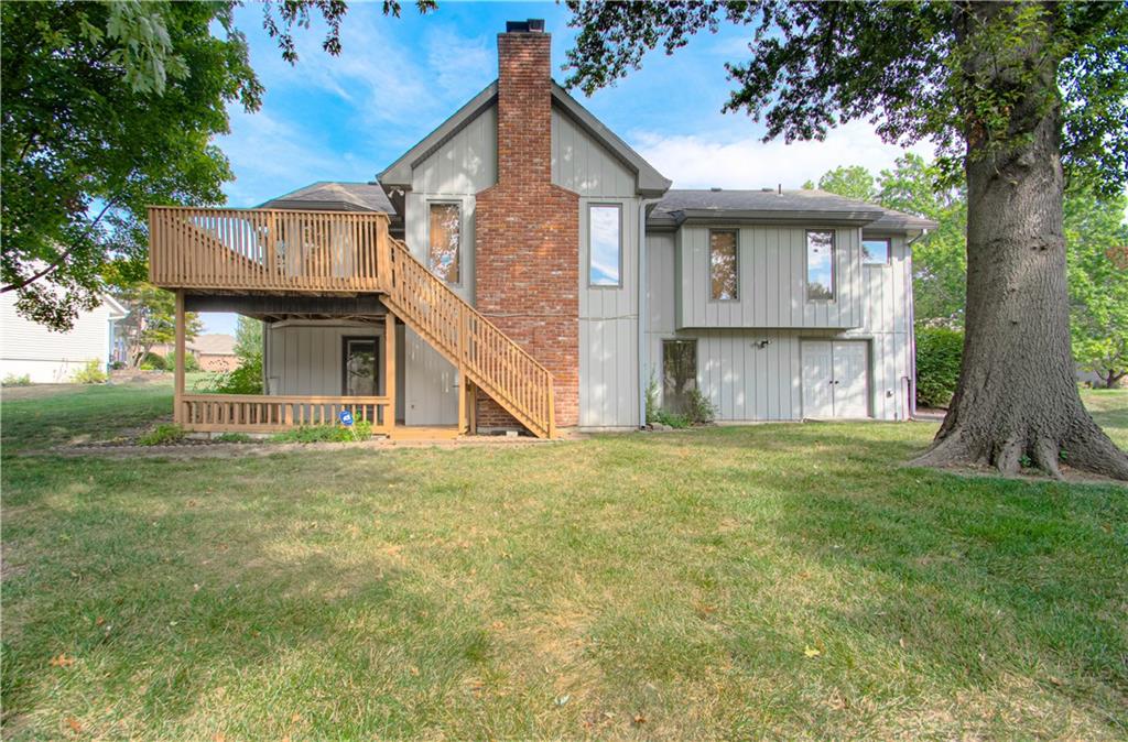 Well-maintained ranch Home, located in Gladstone. This 3-bedroom, 2.5-bath ranch offers comfort and space both inside and out. Step into a bright and inviting home featuring a spacious living room and a cozy fireplace. You will fall in love with this spacious kitchen, featuring a large breakfast nook, hardwood floors, and a nice pantry. Enjoy entertaining in the large formal dining room, perfect for special occasions. All bedrooms and the laundry are located on the main level. The lower level is perfectly finished with a 2nd brick fireplace. Lots of windows for natural lighting. This level walks out to a covered patio, a level yard, and mature trees. Bonus: A deck is located off the kitchen, and a utility garage is situated in the lower level, which has double doors. The exterior features maintenance-free siding with a stone front and nice landscaping.