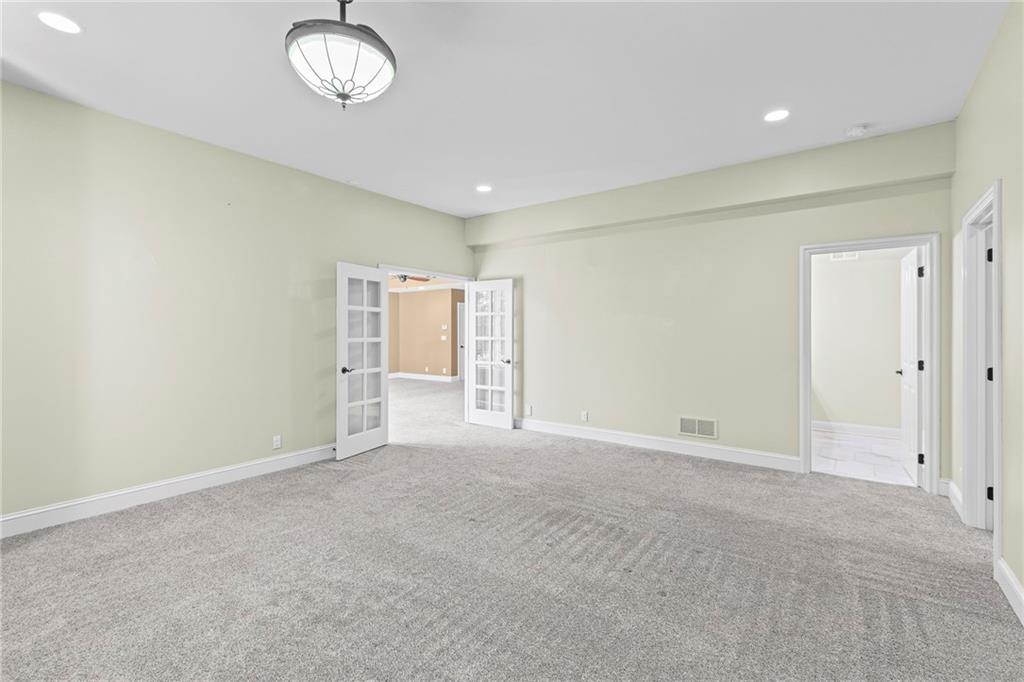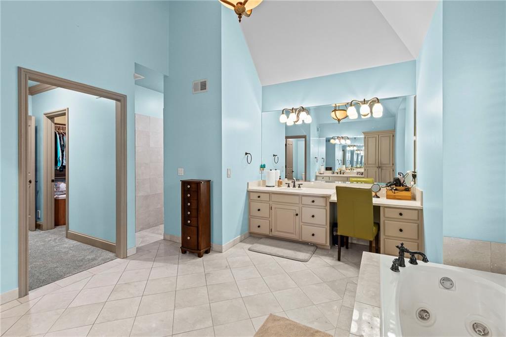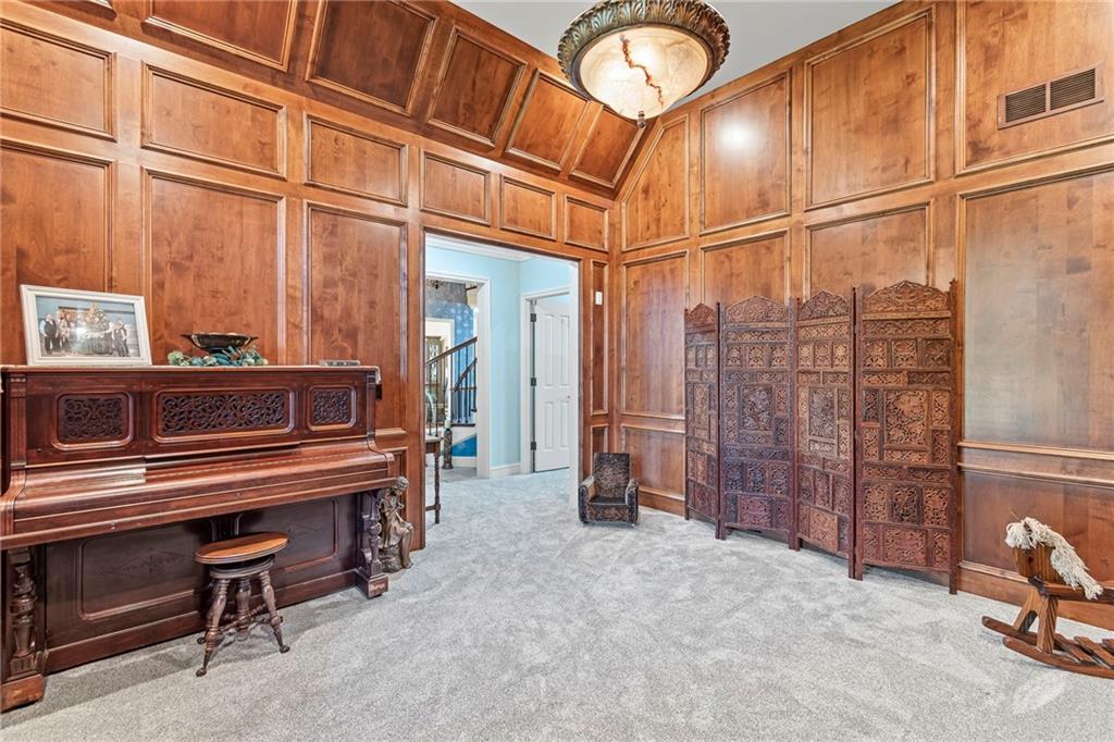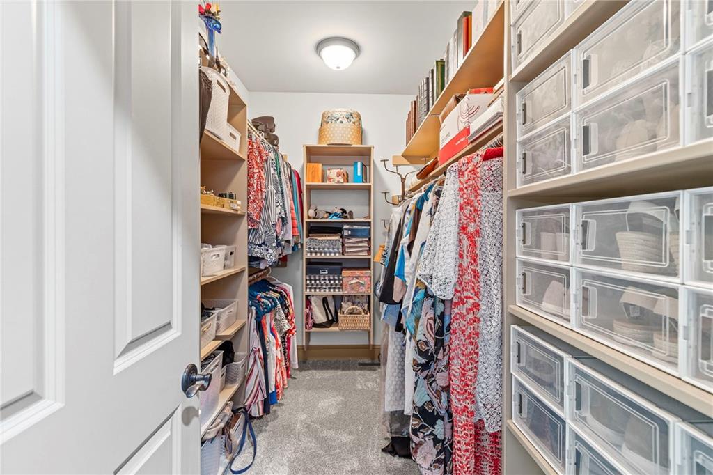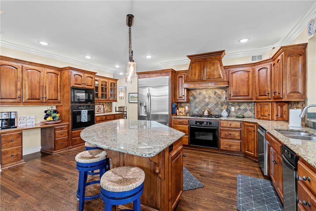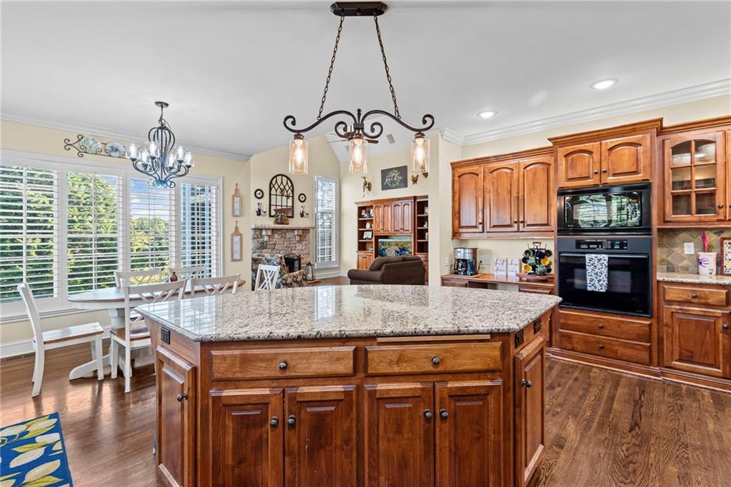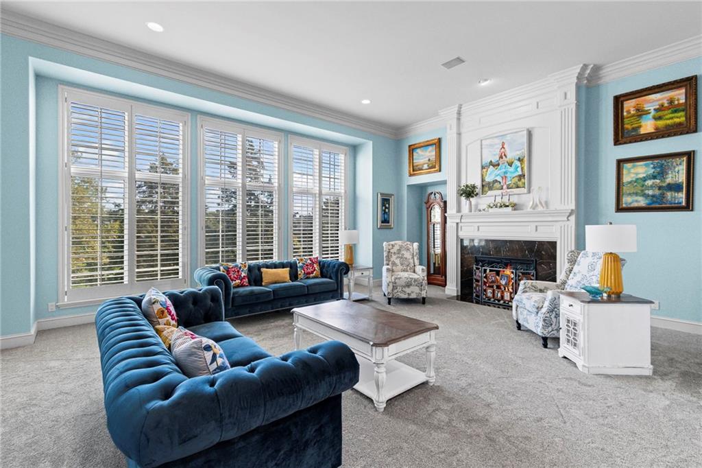 Multi-generational Estate size home with 2 primary suites and a 4 car side entry garage offers privacy on this 1+ acre lot. Additional square footage in the lower level has been professionally finished adding 2 bedrooms and 2 bathrooms to this home. Outside boast lots of trees, landscaping, a water feature, firepit & 2 patios. Upon entering you are greeted with a stunning 2 story circular staircase, plantation shutters, library with floor to ceiling built-ins, large Primary suite with new carpet, walk in shower and 2 closets. There are beautiful hardwood and carpet on the main level with a formal living and dinning room. Large chef's kitchen featuring gas cooktop, island, double ovens and pantry. The hearthroom has a beautiful stone fireplace, built ins and wet bar. Upstairs has 3 bedrooms with private baths, second laundry. New carpet upstairs in 2 bedrooms and hall. Walkout lower level w/full kitchen, rec room, 3rd fireplace, second primary suite and additional bedroom w/bath. 4 car Garage has floor to ceiling cabinets a 2nd separate staircase to the basement. This home a plenty of space for entertaining.