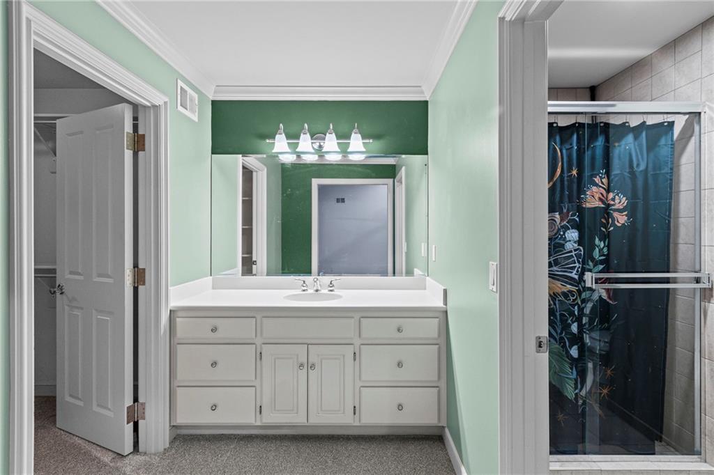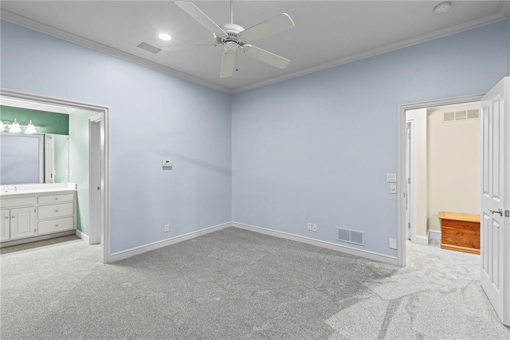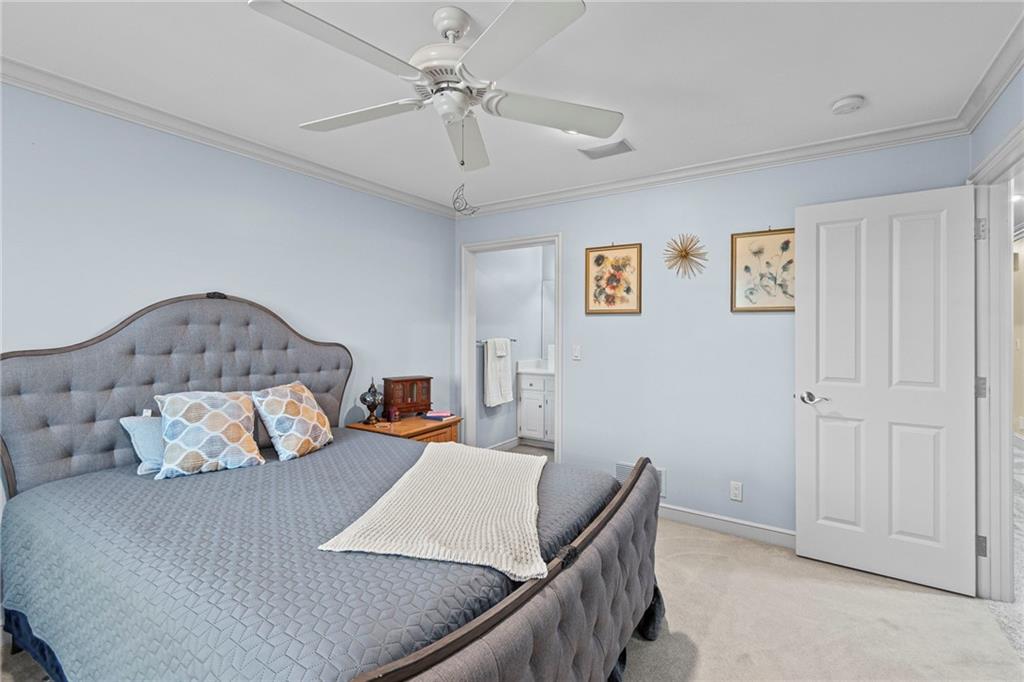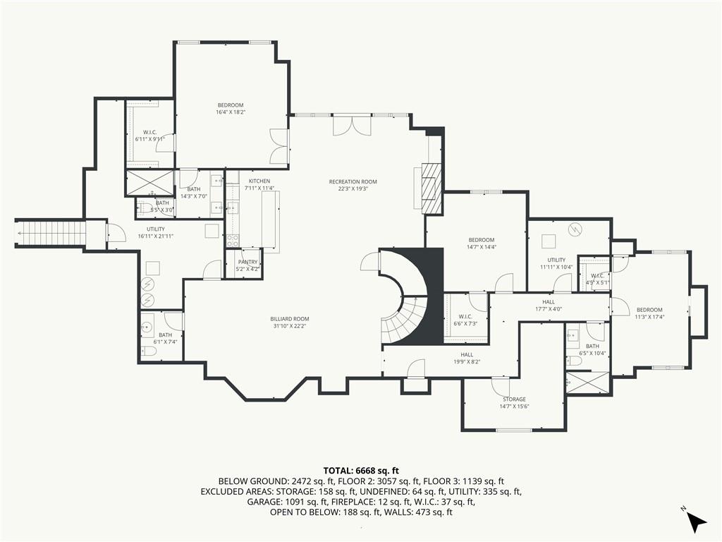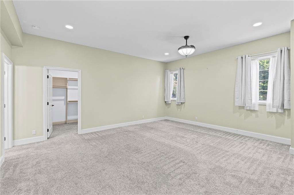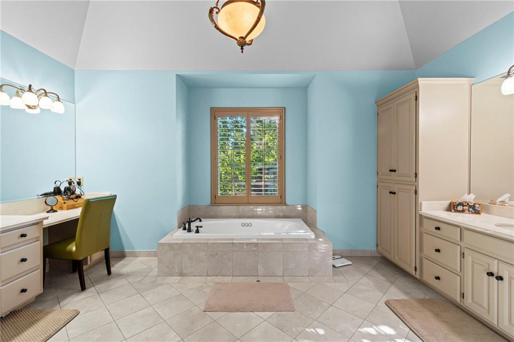 Multi-generational Estate size home with 2 primary suites and a 4 car side entry garage offers privacy on this 1+ acre lot. Additional square footage in the lower level has been professionally finished adding 2 bedrooms and 2 bathrooms to this home. Outside boast lots of trees, landscaping, a water feature, firepit & 2 patios. Upon entering you are greeted with a stunning 2 story circular staircase, plantation shutters, library with floor to ceiling built-ins, large Primary suite with new carpet, walk in shower and 2 closets. There are beautiful hardwood and carpet on the main level with a formal living and dinning room. Large chef's kitchen featuring gas cooktop, island, double ovens and pantry. The hearthroom has a beautiful stone fireplace, built ins and wet bar. Upstairs has 3 bedrooms with private baths, second laundry. New carpet upstairs in 2 bedrooms and hall. Walkout lower level w/full kitchen, rec room, 3rd fireplace, second primary suite and additional bedroom w/bath. 4 car Garage has floor to ceiling cabinets a 2nd separate staircase to the basement. This home a plenty of space for entertaining.