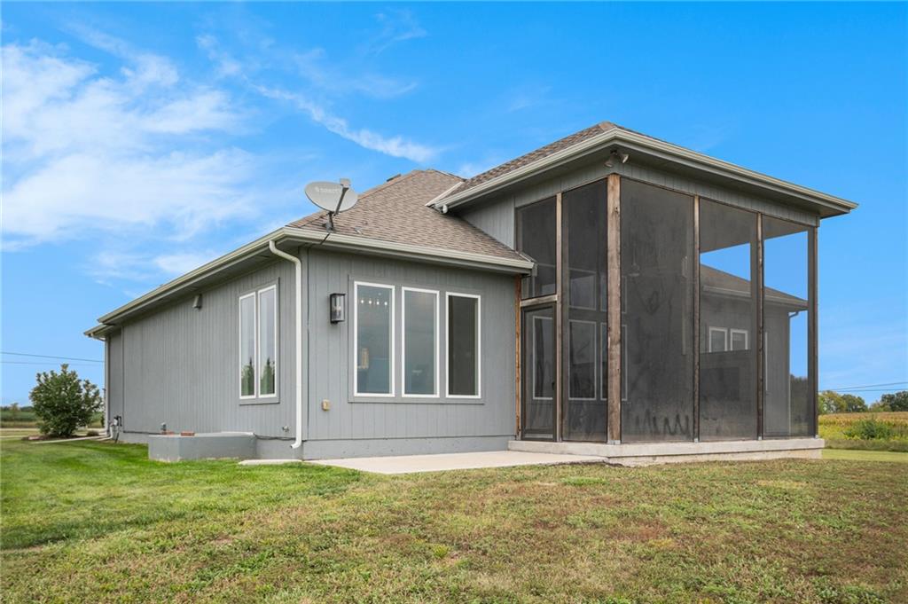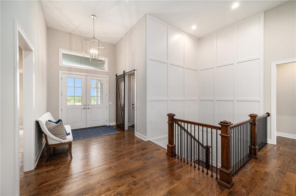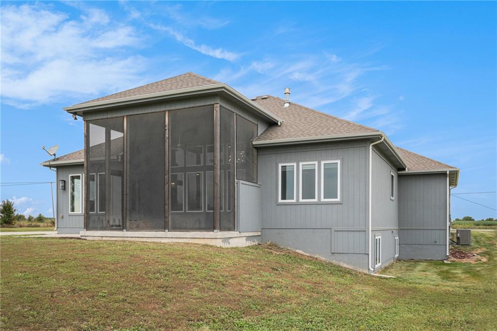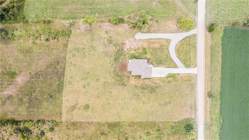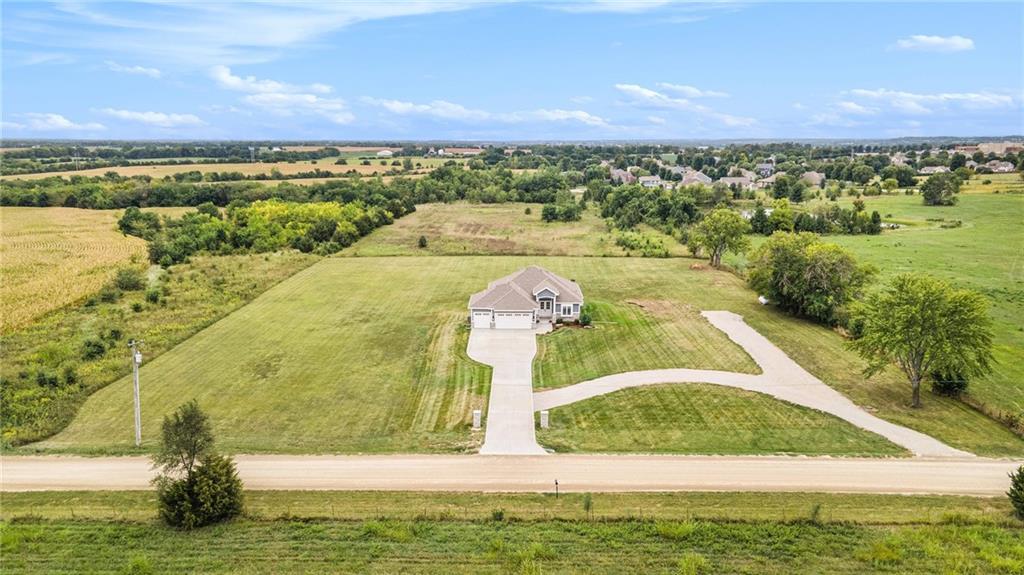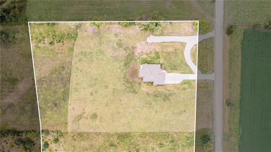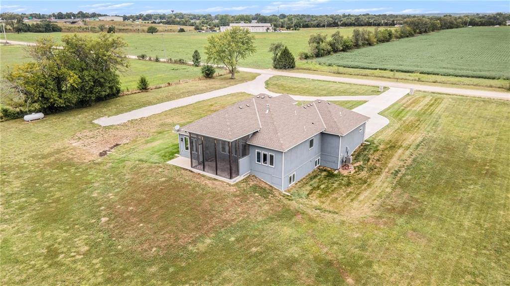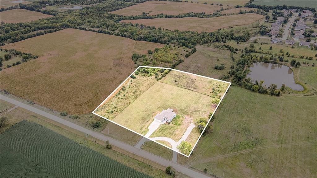 LIKE NEW Reverse 1.5 Story home on 5 acres! This custom home has a stunning double door entry with a large open layout. The great room has a stone fireplace, built-ins, 14-foot ceilings, beautiful wood beams, and large windows overlooking the backyard and patio. All white kitchen with stainless steel appliances, gas range, huge center island, built-in beverage fridge, and a walk-in pantry. Main floor primary suite with a spa-like bath and walk-in closet, plus a main floor laundry room and 2nd bedroom or office. Finished lower level with a family room, exercise room, three bedrooms, and two full bathrooms. Screened-in patio overlooking the property's private acreage. Great location close to all three Eudora schools. Convenient access to K-10. Use Google Maps for driving directions.