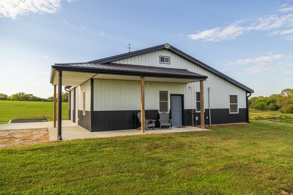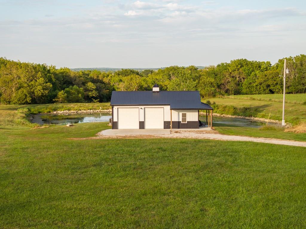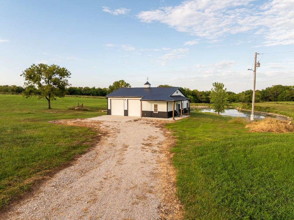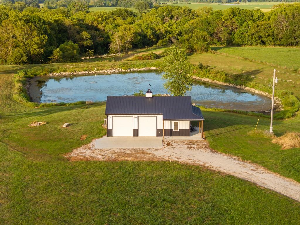 Your piece of paradise awaits in Northern Bates County! Gated entrance with a long gravel drive to a new barndominium overlooking a stocked pond with trophy bass. The barndominium is approximately 1,380 sq ft with 2 bedrooms, 1.5 bath and comes fully furnished with fiber internet, washer and dryer, and full kitchen. There is a two car attached garage and an additional finished loft above the garage that also has HVAC for storage or perfect for a bunk room. If you need more room, the garage could easily be converted to additional living space or bedrooms. The property is fully fenced with a nice mix of timber, pasture/hay ground, and two stocked ponds. Put in a few food plots or convert the hay fields to alfalfa and this one is dynamite! The deer and turkey hunting is incredible but this would also be a great farm to raise livestock or that hobby farm you have always looked for. A perfect weekend getaway with all the comforts of home or the perfect opportunity to call this your forever home. Set up and ready to go! Less than an hour from Overland Park and the KC Metro but so secluded and quiet you will get lost in the beauty it has to offer.