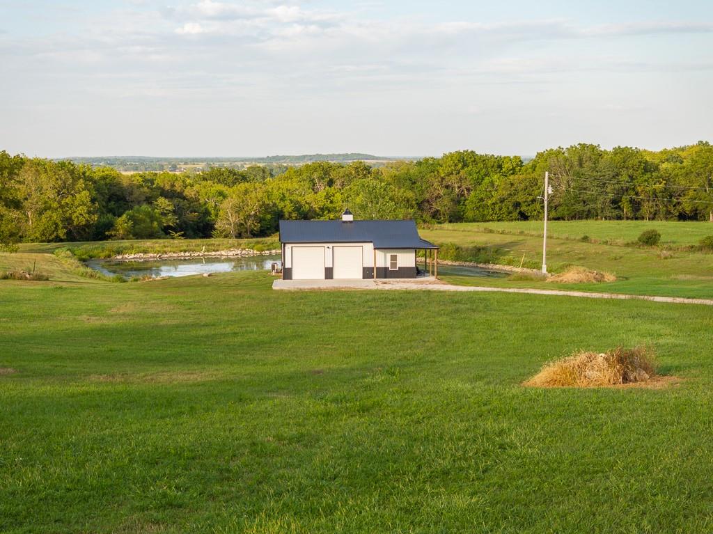 Your piece of paradise awaits in Northern Bates County! Gated entrance with a long gravel drive to a new barndominium overlooking a stocked pond with trophy bass. The barndominium is approximately 1,380 sq ft with 2 bedrooms, 1.5 bath and comes fully furnished with fiber internet, washer and dryer, and full kitchen. There is a two car attached garage and an additional finished loft above the garage that also has HVAC for storage or perfect for a bunk room. If you need more room, the garage could easily be converted to additional living space or bedrooms. The property is fully fenced with a nice mix of timber, pasture/hay ground, and two stocked ponds. Put in a few food plots or convert the hay fields to alfalfa and this one is dynamite! The deer and turkey hunting is incredible but this would also be a great farm to raise livestock or that hobby farm you have always looked for. A perfect weekend getaway with all the comforts of home or the perfect opportunity to call this your forever home. Set up and ready to go! Less than an hour from Overland Park and the KC Metro but so secluded and quiet you will get lost in the beauty it has to offer.