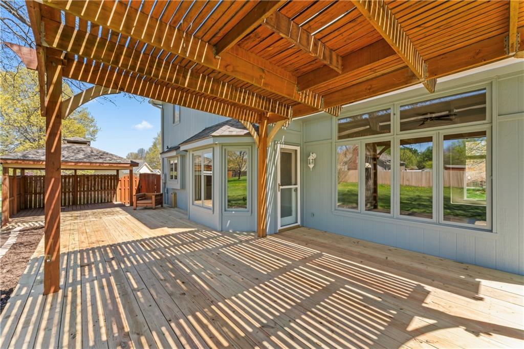 Modern two-story home located on an oversized corner lot in Grain Valley. The property includes four bedrooms, three and a half bathrooms, and a finished basement. Recent updates feature a new HVAC system, a newer roof, new appliances, freshly painted and new flooring throughout. Additional features include a vaulted ceiling, large deck and gazebo, fireplace, and a laundry room located off the kitchen.