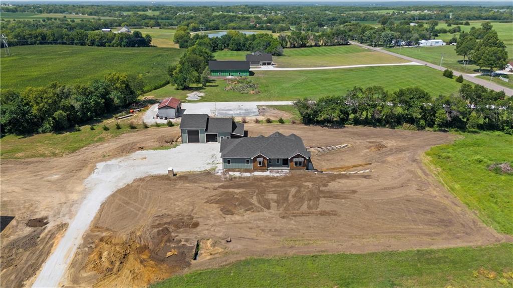 Beautiful custom home by Bryant Construction Group situated on 2.5 acres with custom upgrades throughout. This 5-bedroom, 4-bath property features a gourmet kitchen with walk-in pantry and custom cabinetry, a primary suite with custom closet, and an additional laundry closet in the basement. Zoned HVAC, heated garage, and upgraded insulation provide year-round comfort. Outdoor living includes a patio off the kitchen, a screened rear patio, fire pit, and sprinkler system. A detached 40x50 shop with 12- and 16-foot ceilings includes septic, water, propane, 200-amp panel, and bathroom stub-in—ideal for a guest suite, workshop, or hobby space. Property is agent owned.