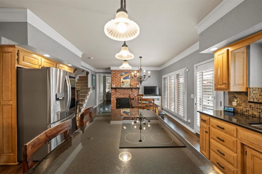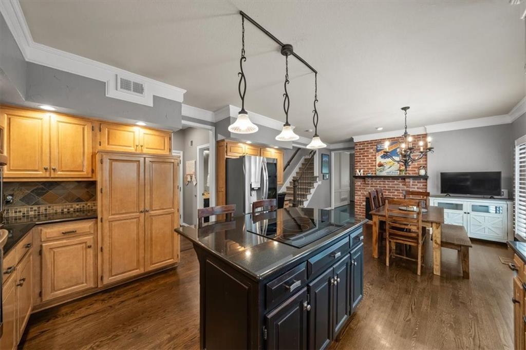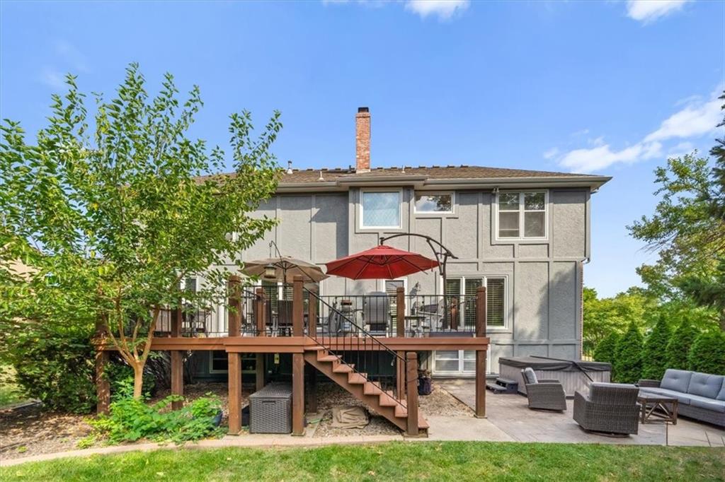 Nestled in the sought after Nottingham Forest South, in the heart of Overland Park, this charming 2-story offers the perfect blend of traditional charm and functionality. The spacious floor plan with formal and informal living areas and timeless architectural details provide the perfect canvas for your personal style. Whether you're relaxing with family or entertaining guests, the open layout accommodates every need. The main level showcases gleaming hardwood floors, plantation shutters, formal living and dining rooms, an inviting family room with double sided fireplace, laundry room and tons of natural light. The gourmet kitchen is a chef's dream, featuring an island with seating, double ovens, pantry and lots of cabinet space. Upstairs, the master suite feels like a private retreat with a spa-like bath boasting dual vanities, a soaking tub, a walk-in shower, and a generous walk-in closet. Additional bedrooms are spacious and versatile. Finished basement provides plenty of extra living space with a large rec room, wet bar, 5th bedroom and full bath. Step outside to your fenced backyard oasis on a nearly 1/2 acre lot with professional landscaping, large deck, stamped patio and hot tub! Checkout all the additional upgrades in supplements! Prime location with quick access to award-winning Blue Valley schools, shops, dining, parks, walking trails, and highways. Also one of the best neighborhood pools in the area! Don't miss your chance to make this your dream home!