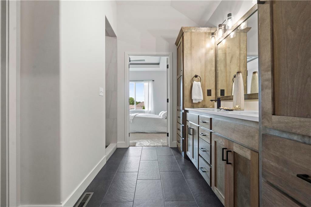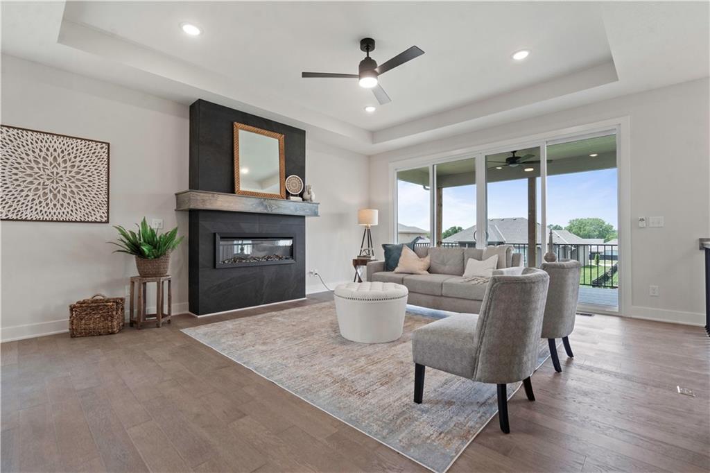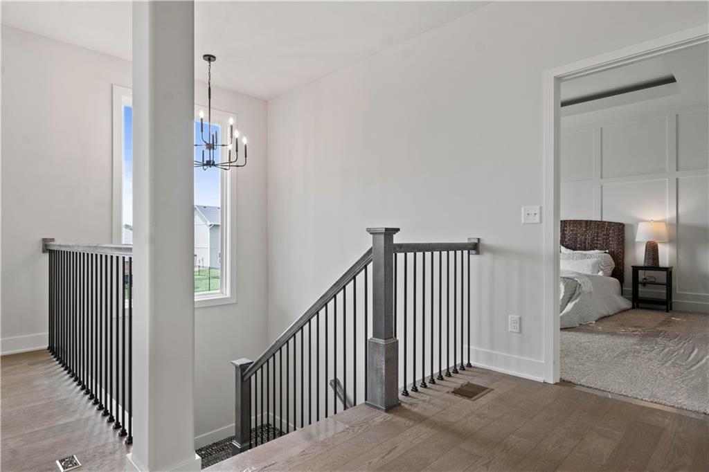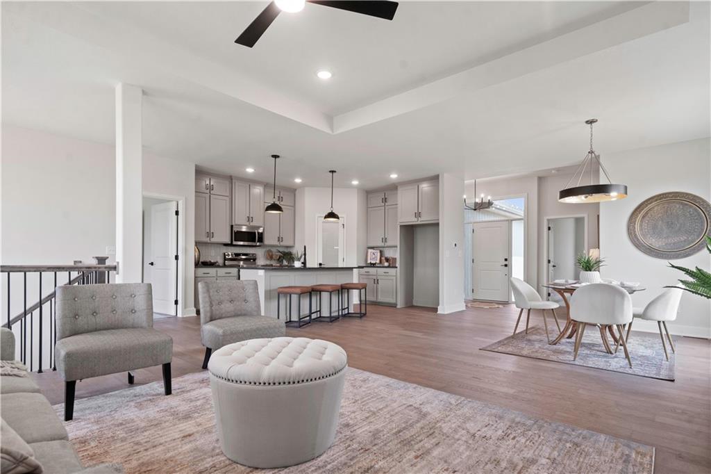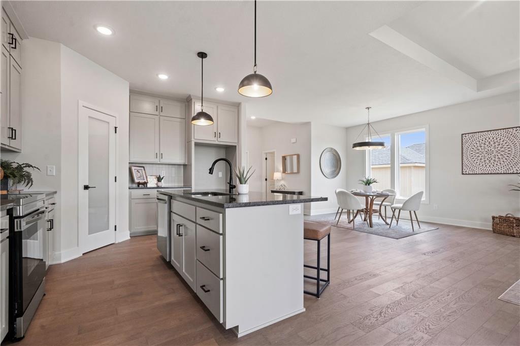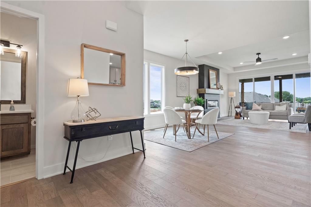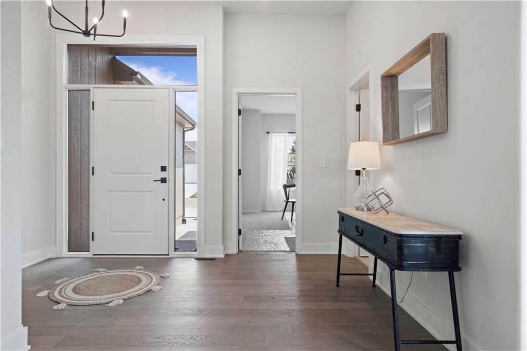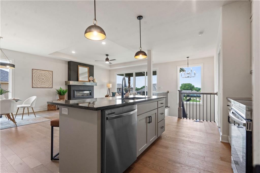 Introducing the stunning Meadowcroft II Reverse by DRHI ! This thoughtfully designed home features a bright and inviting Great Room with an elegant electric fireplace framed in tile. Oversized double doors flood the open-concept main living area with natural light, leading to a covered 16x10 deck overlooking a serene pond. The chef’s kitchen boasts custom cabinetry, a stylish tile backsplash, solid-surface countertops, and an electric cooktop, all perfectly complemented by gleaming hardwoods flowing through the Great Room, kitchen, dining area, mudroom, and pantry. Downstairs, enjoy a finished walkout basement that opens to a covered patio, perfect for relaxing or entertaining. Retreat to the luxurious primary suite featuring a walk-in tiled shower and beautiful tile finishes. Nestled in the highly sought-after Foxberry Estates, residents enjoy resort-style amenities including a pool, clubhouse, scenic trails, and playgrounds. Home is under construction and final pricing is subject to change.