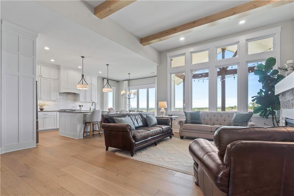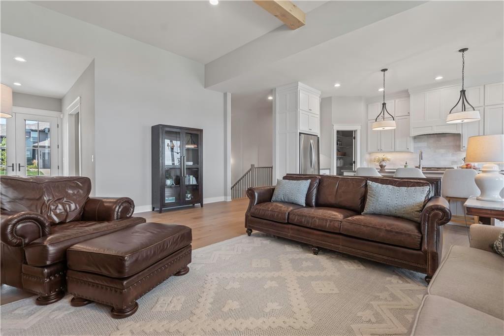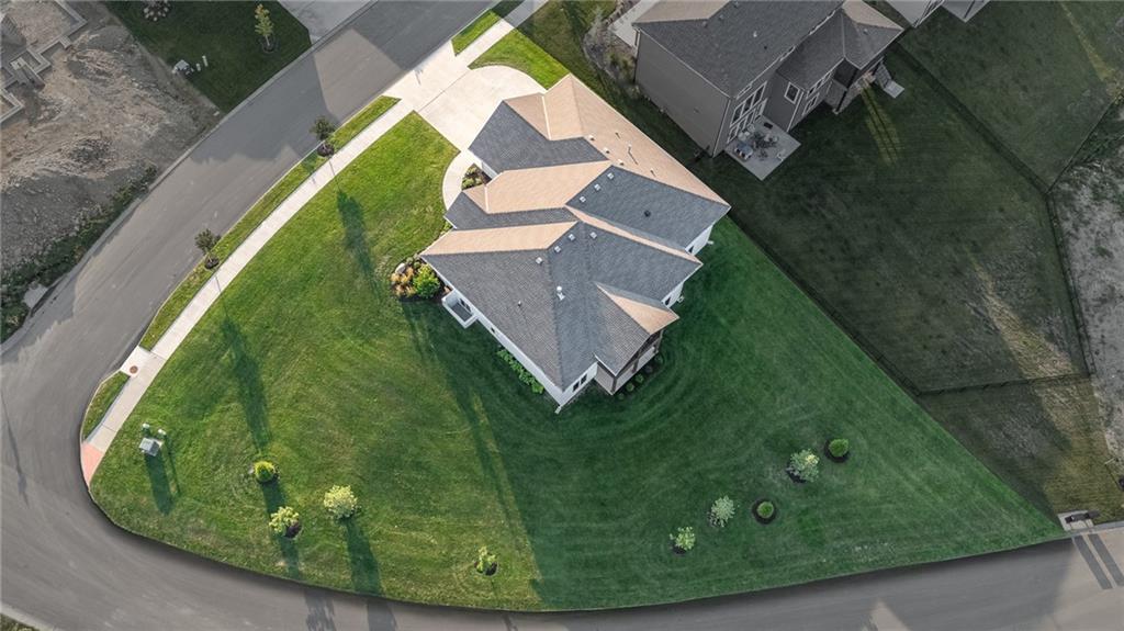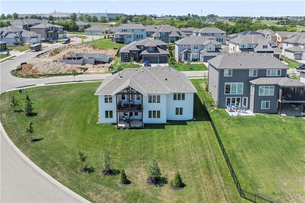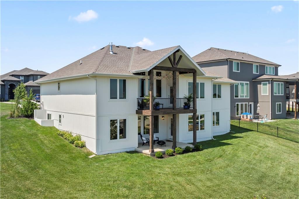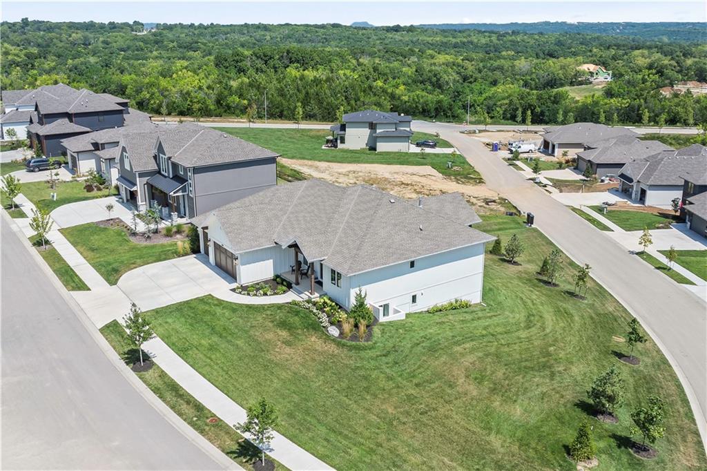Your 2023 custom-built dream home has it all—5+ bedrooms, an office (or two), a game room, and a flex space that bends to your lifestyle as a formal dining, sitting room or office on main level. The heart of the home beats on the main level, with the laundry tucked neatly and quietly in the basement—freeing up space for an open, airy layout you’ll actually live in. The kitchen steals the show with LG appliances, quartz island, and gas cooktop, flowing into a vaulted great room with wood beams, stone fireplace, and all the natural light. The primary suite is a true retreat with soaking tub, quartz vanities, walk-in shower, and walk-in closet. Head downstairs for the fun stuff: a bright walkout rec room, wet bar, game room, covered patio, two more bedrooms and a full bath and a bonus flex space with laundry closet and storage access. All this in Bristol Highlands—near golf, trails, lakes, Lenexa City Center, and highway access. High style, low stress, and priced smart! This home will impress you!!