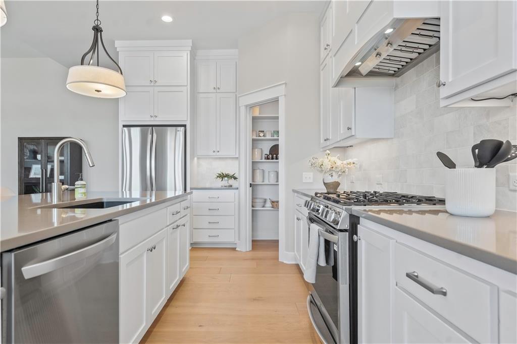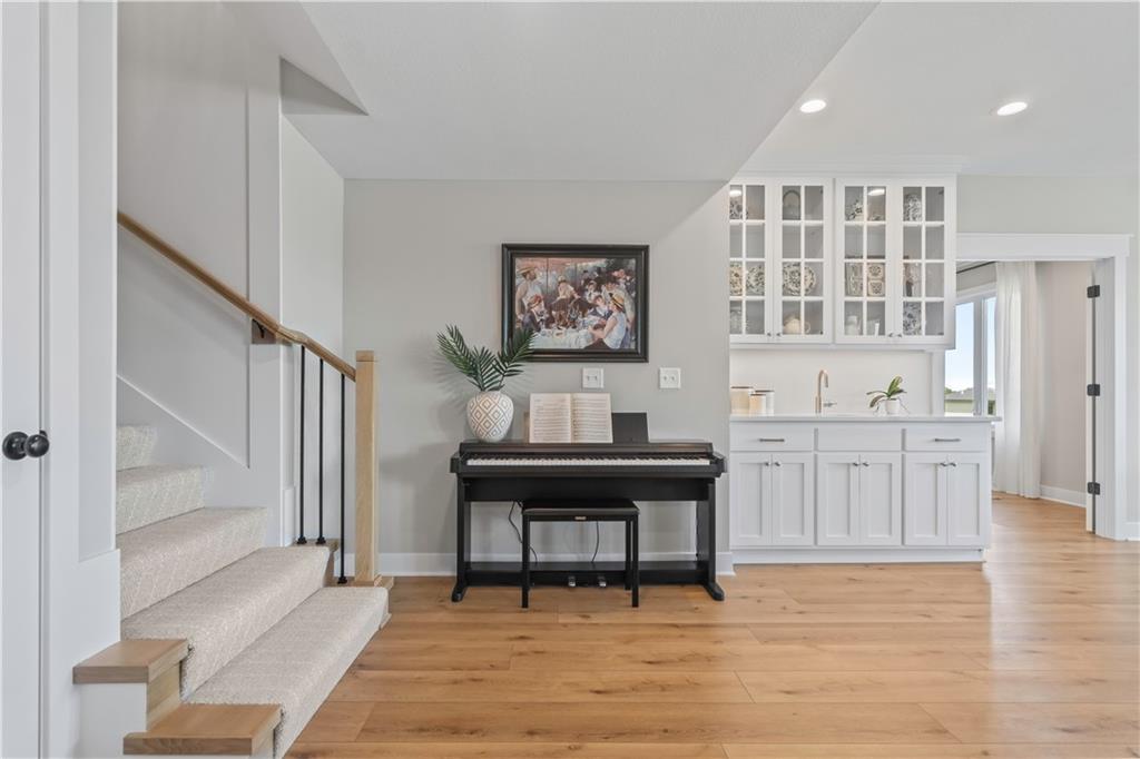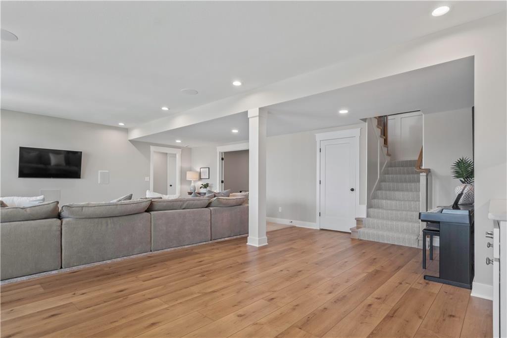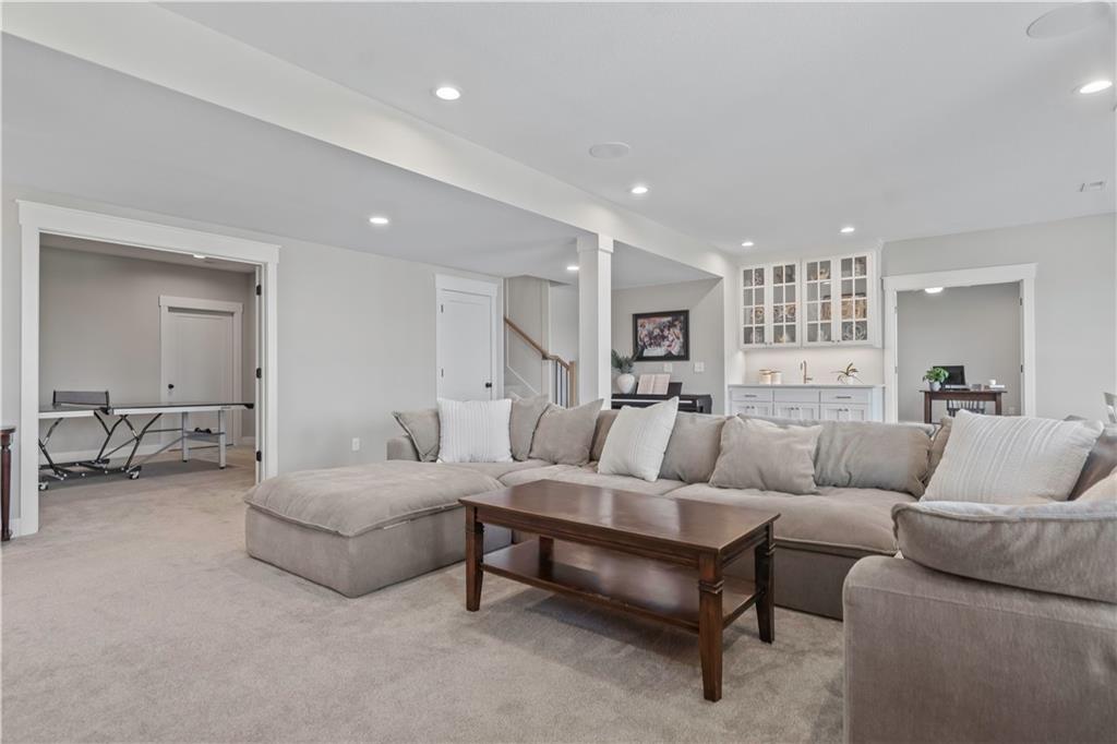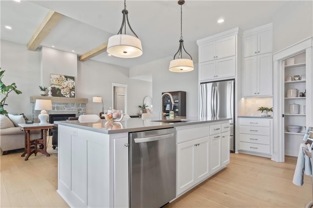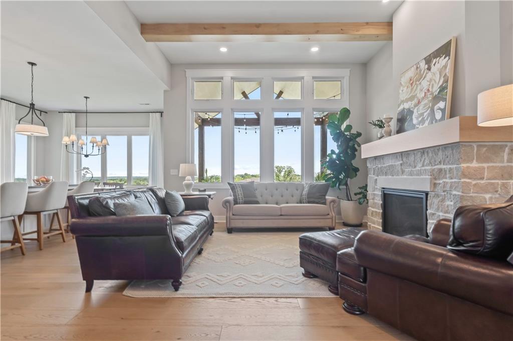 Your 2023 custom-built dream home has it all—5+ bedrooms, an office (or two), a game room, and a flex space that bends to your lifestyle as a formal dining, sitting room or office on main level. The heart of the home beats on the main level, with the laundry tucked neatly and quietly in the basement—freeing up space for an open, airy layout you’ll actually live in. The kitchen steals the show with LG appliances, quartz island, and gas cooktop, flowing into a vaulted great room with wood beams, stone fireplace, and all the natural light. The primary suite is a true retreat with soaking tub, quartz vanities, walk-in shower, and walk-in closet. Head downstairs for the fun stuff: a bright walkout rec room, wet bar, game room, covered patio, two more bedrooms and a full bath and a bonus flex space with laundry closet and storage access. All this in Bristol Highlands—near golf, trails, lakes, Lenexa City Center, and highway access. High style, low stress, and priced smart! This home will impress you!!