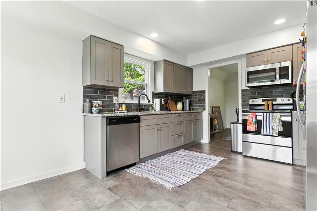 BEAUTIFUL AND UPDATED HOME IN OVERLAND PARK! Enjoy mornings on the long covered front porch, the perfect spot to sip a favorite beverage. Inside, the open living room, formal dining and main floor family room offer plenty of space to gather and entertain. Updated eat-in kitchen shines with granite countertops, soft-close cabinetry, and stainless steel appliances. Upstairs, retreat to the primary suite with a beautifully updated en-suite, joined by two additional bedrooms and a second full bath. Full walk-out basement is ready to expand your living space or use for hobbies and storage. Step outside to a spacious fenced yard and deck, perfect for BBQs and relaxing outdoors. All this in a fantastic central location just minutes from downtown Overland Park’s shops, dining, parks, and community center. WELCOME HOME! Hurry in as this will not last long.