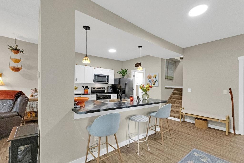 Best of both: desirous location by Corby Pond with completely redone home boasting open main floor, convenient laundry, kitchen complete with appliances, and private setting for fall time gatherings. Upper level offers 3 bedrooms and full bathroom. Perfectly located near Parkway trails, dog park, and soon-to-be pickleball courts. Off-street parking through alley.