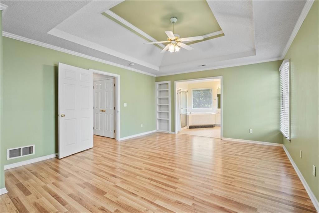 Spacious 2-Story in Overland Park with Olathe Schools! This 4 bed, 3.5 bath home with over 2,500 sq ft has the space and updates you’ve been waiting for. Step inside to soaring ceilings, hardwood floors, and a wall of windows that flood the living areas with natural light. The main level features a formal dining room, a large living room with fireplace, and a kitchen with granite counters, stainless appliances, and a sunny breakfast area overlooking the fenced backyard. Upstairs, the primary suite is a true retreat with two walk-in closets and a spa-like bath featuring dual vanities, a jetted tub, and walk-in shower. The remaining three bedrooms all feature new hardwoods — two share a convenient Jack-and-Jill bath with double vanities and full shower, while the third enjoys its own private en-suite. Laundry is also located on the bedroom level for maximum convenience. Add in a brand-new garage door, fenced yard, and prime location near shopping, dining, parks, and Olathe Schools — this home checks every single box! Come see it today!