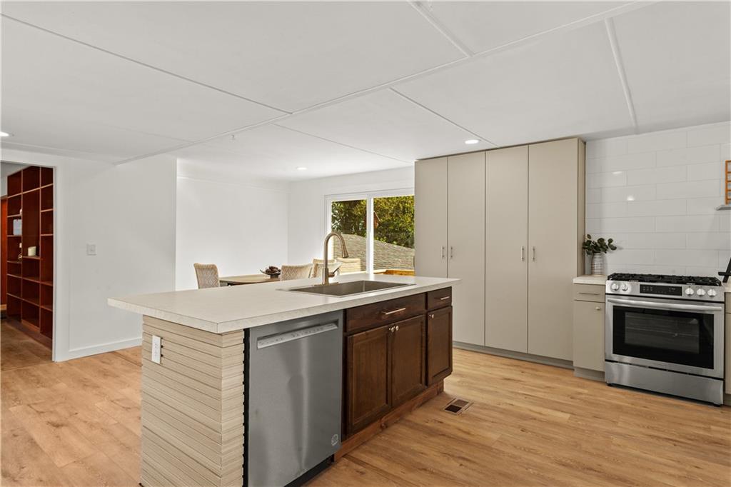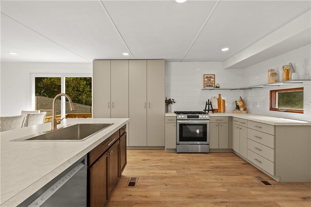 Motivated seller, renovated 3 Bedroom, 2 Bath Home with a 4th non-conforming bedroom in the walkout basement & Over 1/2 acre fenced yard. This beautiful home offers modern finishes and plenty of space inside and out. The all-new kitchen features brand-new cabinets, countertops, flooring, and stainless steel appliances. Fresh exterior paint, new exterior doors, and a newly built back deck add to the home’s curb appeal. The main bedroom includes an on suite bath with a new double vanity and tub/shower combo. The hall bathroom is also fully updated with a new tub and ceramic tile surround. The brand-new finished basement provides a fourth non-conforming bedroom, a second family room, and convenient walkout access through the oversized garage with over 730sqft. The garage offers abundant room for hobbies, storage, and even a loft area. Outside, enjoy a fully fenced ½ acre lot with mature shade trees and a large, level yard perfect for outdoor activities. The backyard also features a storage shed and direct access to city-owned green space. The in-ground needs a liner but is set in show stopping space with an outlet and pad for a hot tub.