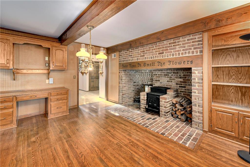 Discover the old world charm of this beautiful Prairie Village 3 bedroom, 2 1/2 bath, one and a half story home, filled with character. Upon entering the front door, you will be captivated by the large oak paneled Living Room with soaring ceilings and striking wood-burning fireplace, flanked by bookcases. The formal Dining Room is located in the heart of the home with beautiful wood floors and is accessible to all of the public areas on the main level. “Take time to smell the flowers” is carved into the hearth of the spectacular wood-burning fireplace/wood stove combination focal point in the classic kitchen equipped with a Jenn Air cooktop and KitchenAid appliances. Just off of the Kitchen, enjoy morning coffee in the light filled solarium with two Juliet balconies and a wood-burning stove. The main level primary suite features a see-through fireplace, his and her wet areas with closets and a shared Bathroom. The upper level is appointed with 2 generously sized bedrooms, a jack and jill bath and a large bonus room with many possibilities including adding a staircase to the garage, adding a closet for a fourth bedroom or use it as a media/playroom. A third woodburning fireplace can be found in the finished lower-level family room along with a small kitchen with sink and cabinetry, a large walk-in cedar closet, and an open storage area, including newer HVAC and central vac systems. Off of the solarium, you will find a large deck with hot tub and access to the beautifully landscaped backyard. Located in the Shawnee Mission East school District, Briarwood Elementary is right around the corner.
