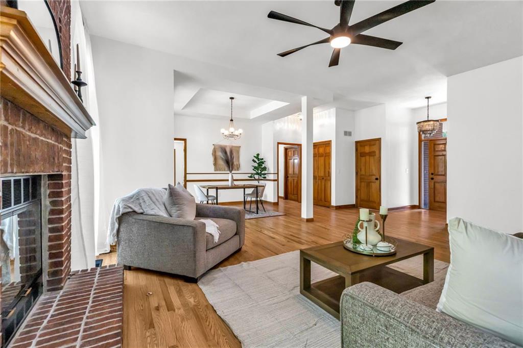 Freshly renovated and move-in ready, this 4-bedroom, 3-bathroom true ranch offers modern design, updated finishes, and the welcoming lifestyle of Weatherby Lake. Recent upgrades—just completed and city-inspected—include all-new bathrooms, refinished hardwoods, brand-new flooring throughout, and updated lighting fixtures. The spacious main level is bright and inviting, anchored by a brick fireplace and framed with oversized windows that flood the living spaces with natural light. The kitchen and dining areas connect seamlessly for entertaining or everyday living. Spa-like bathrooms showcase custom tile, double vanities, and designer finishes that feel both fresh and timeless. Downstairs, the fully finished walkout basement expands your options with a large family room, additional bedroom, full bath, and direct access to the backyard. Enjoy all that Weatherby Lake living has to offer—community lake access, trails, and a friendly neighborhood feel—while still being minutes from shopping, dining, and major highways for easy commuting.