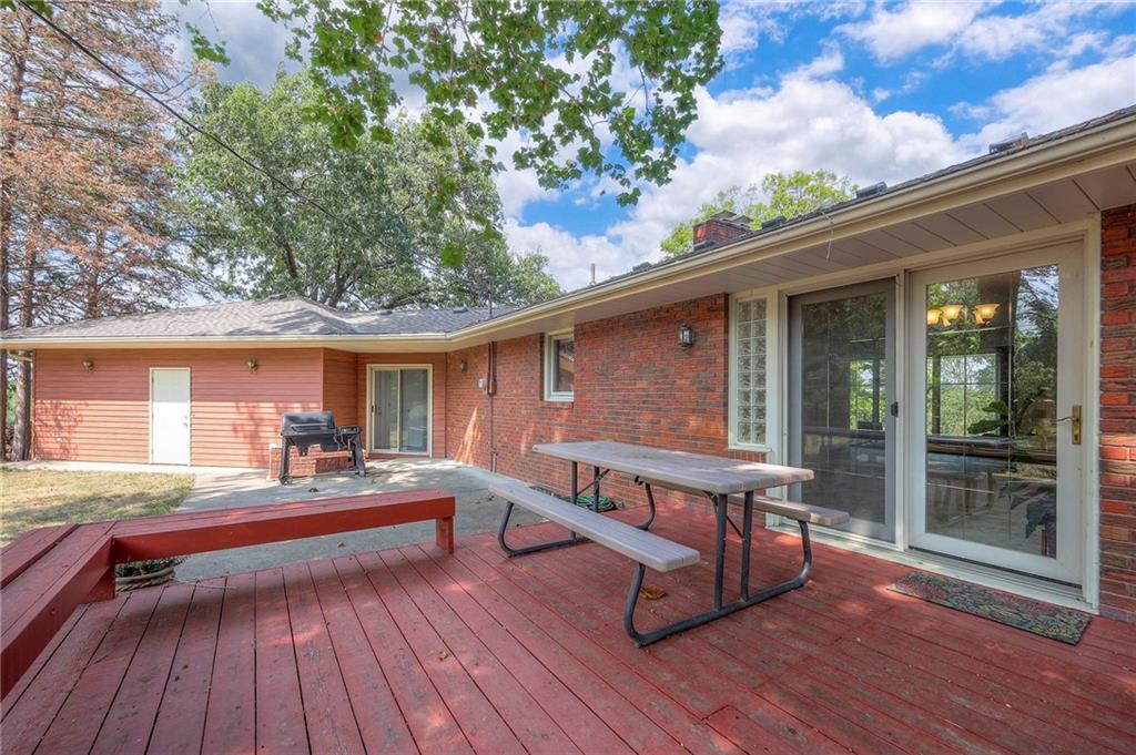 Take in breathtaking sunrises and sunsets from the front porch or back deck of this solid ranch-style home, perfectly positioned on 4.58 acres within city limits.This spacious home offers 5 bedrooms and 2 full baths, along with an abundance of storage throughout. The kitchen features custom stained cabinetry, a center island, pantry, and granite countertops, perfect for everyday living or entertaining. The formal dining room includes a beautiful atrium door that opens to a private, ground level deck. Enjoy cozy evenings in the formal living room with its masonry fireplace, and take advantage of the additional den for extra living space. The main floor includes the primary bedroom plus three more bedrooms, great for guests, offices, or hobbies. Downstairs, you'll find a fifth bedroom, another full bath, and a fantastic entertainment area complete with a wet bar, island seating, and a tiled bar setup. The home features dual-zone HVAC for year round comfort. Outside, a generous 2 car garage offers built-in storage cabinets, a workbench, and walkout access to the yard. You'll also find a garden shed and a Bobcat mower for easy property maintenance. What truly sets this property apart is the land, it’s spacious, versatile, and full of possibilities: -Equestrian-Friendly: Ideal for horse lovers, with plenty of room for stables or riding space. -Orchard Charm: Enjoy fresh fruit from your very own cherry, apple, and pear trees. -Peaceful Shade Garden: A serene spot to relax and unwind outdoors. -Kid-Friendly Fun: A designated play area just west of the driveway provides a safe space for children to enjoy. -Investment Potential: The property can be subdivided once, offering the chance to create a second buildable lot. This unique property offers the best of both worlds, rural tranquility with the convenience of city living. Don’t miss your opportunity to see it in person. Schedule your private tour today! New front door being installed on 10/09/2025.