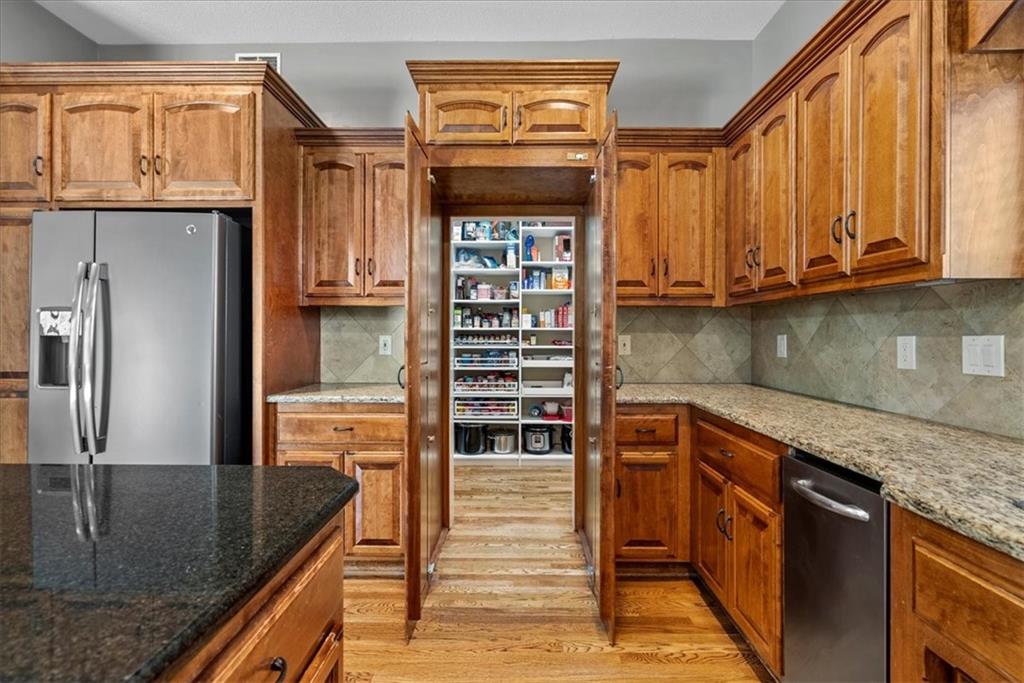 Welcome to Deer Valley, where charm and convenience come together on a quiet street in the award-winning Blue Valley School District. This 4-bedroom, 3.5-bath two-story home is designed with the details that make everyday living feel extraordinary. The spacious primary suite is a true retreat, complete with a custom walk-in closet that feels more like a private boutique than a storage space—beautifully designed and larger than most you will find in the neighborhood. The kitchen continues to impress with a huge hidden walk-in pantry, offering both functionality and a touch of surprise as it keeps everything neatly tucked away while maintaining the open flow of the living space. For those who value a well-crafted garage, this one is unmatched. With its epoxy-sealed floor and extensive built-in storage, it is the perfect place for car enthusiasts, hobbyists, or anyone who appreciates an organized and polished workspace. Step outside to discover a peaceful, quiet backyard—an ideal setting for morning coffee, evening gatherings, or simply unwinding after a long day. Recent updates, including fresh exterior paint in 2025, a two-year-old AC unit, and refreshed landscaping, add curb appeal and peace of mind. With schools, parks, shopping, and dining just minutes away, this home delivers not just a place to live, but a lifestyle to love.