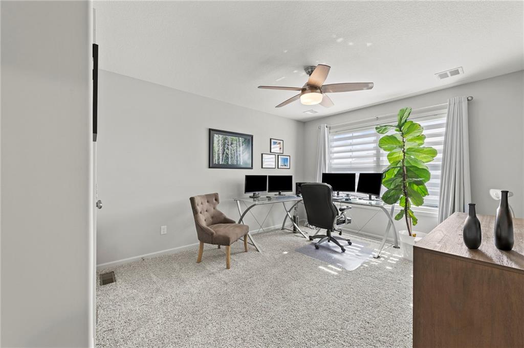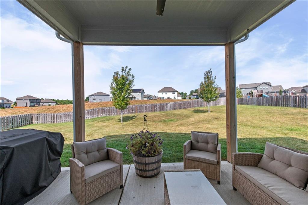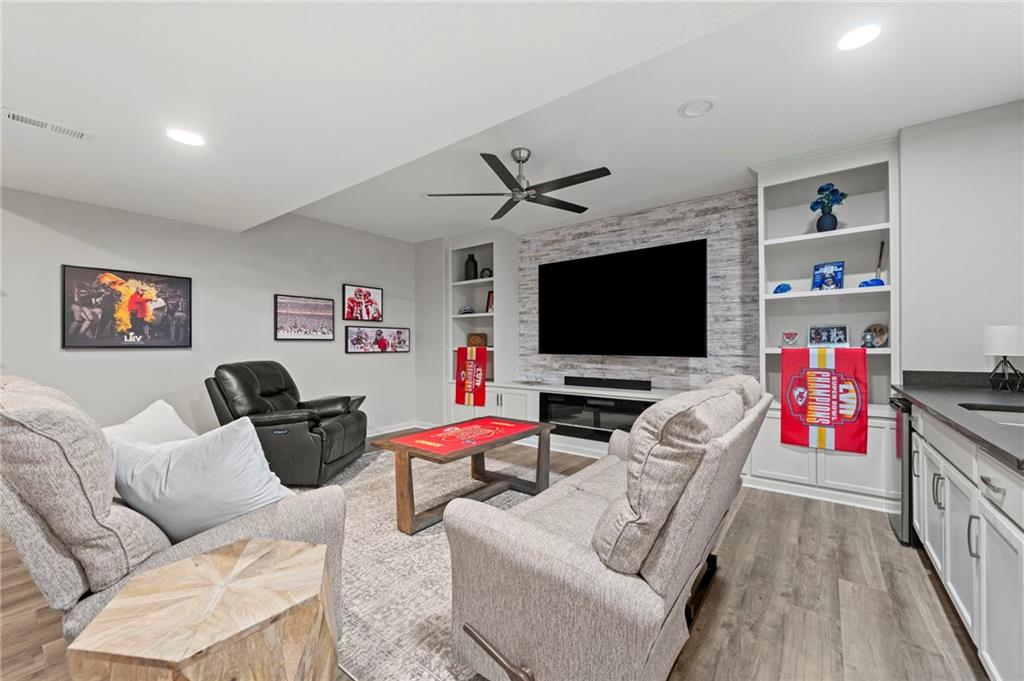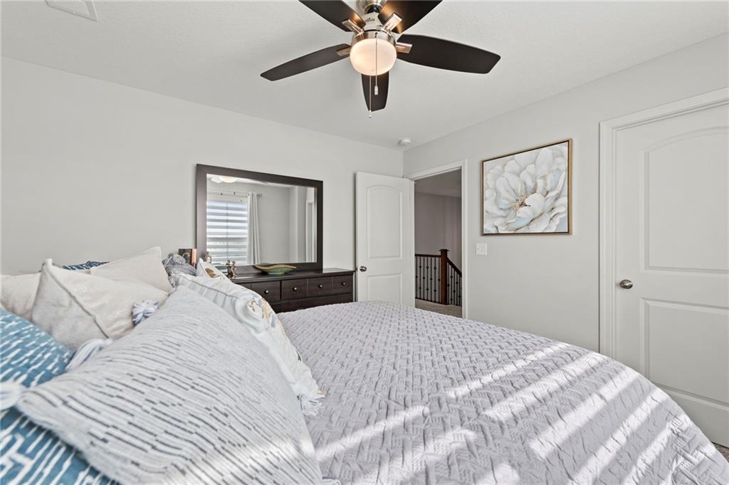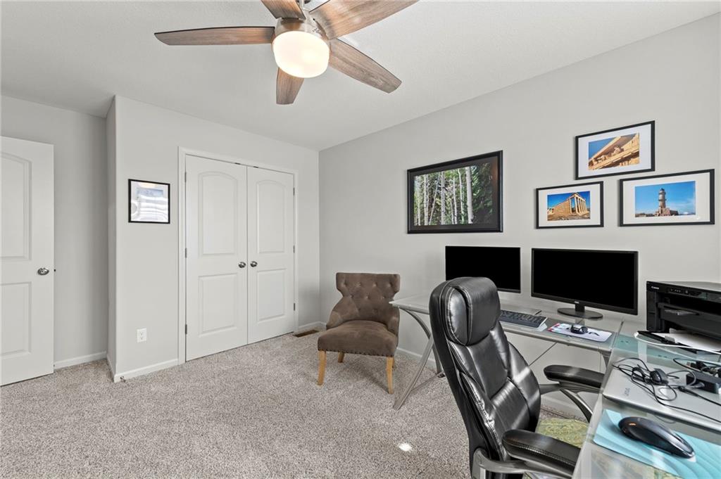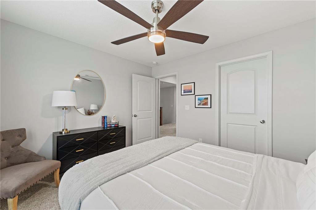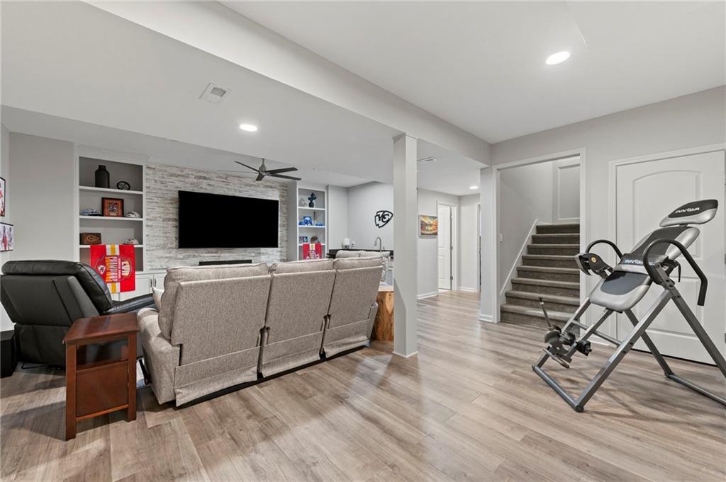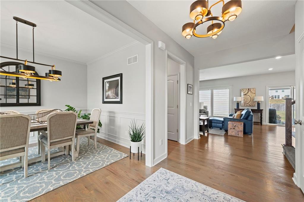 Immaculate 4-Year-Old Home in Tiffany Woods at Rose Creek – The Sycamore by Hearthside Homes. Welcome to this beautifully maintained 5-bedroom, 3.5-bathroom home offering over 3,000 sq. ft. of thoughtfully designed living space. Step inside and be greeted by gorgeous hardwood floors throughout the main level and an abundance of natural light flowing into the spacious living room, complete with a gas fireplace and custom built-in shelving. Zebra shade window coverings add a touch of modern elegance to every window. The kitchen features quartz countertops, stainless steel appliances, a gas range, walk-in pantry, and painted cabinetry—perfect for both daily living and entertaining. A flexible front room can serve as a formal dining area or home office. Retreat to the primary suite, featuring a spa-like en-suite with a custom tiled shower, frameless glass, a fabulous soaking tub, and large walk-in closet. Upstairs features the primary suite plus three spacious bedrooms, each with a walk-in closet, and a full bath designed for comfort and convenience. The finished basement offers a second living area, additional custom built-ins, a fifth bedroom, full bathroom, and plenty of storage space. Step outside to your covered patio, ideal for hosting or relaxing, with a fenced-in backyard that backs to greenspace—a rare and peaceful find. The 3-car garage includes bonus cabinet storage and a full 3-car driveway. All located in a prime, convenient location close to shopping, schools, and major highways.