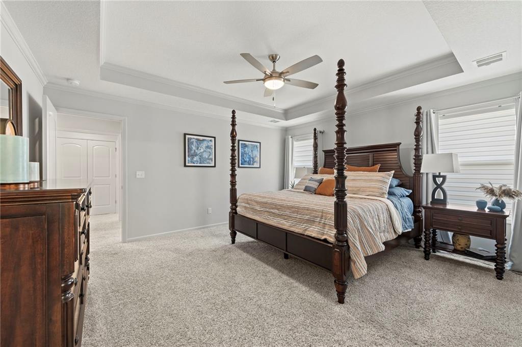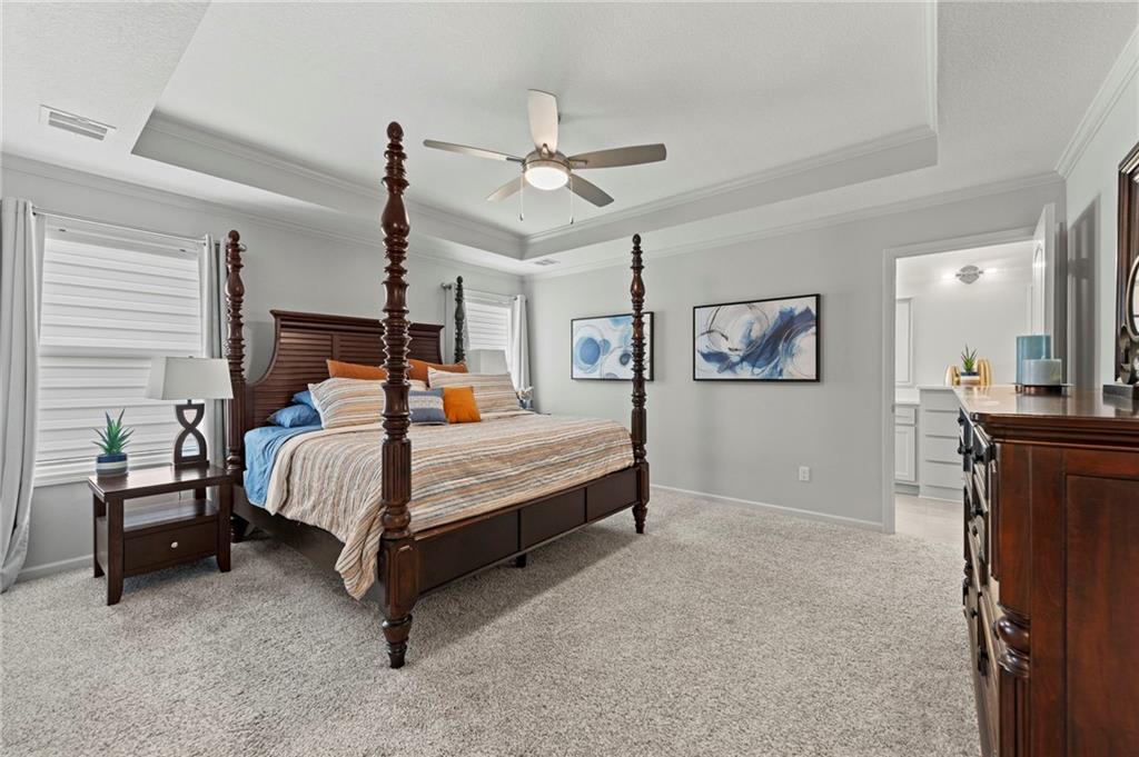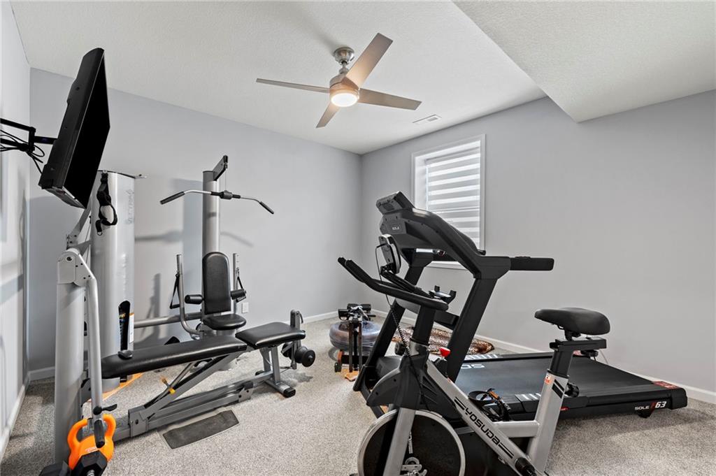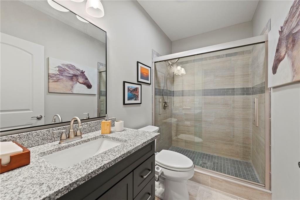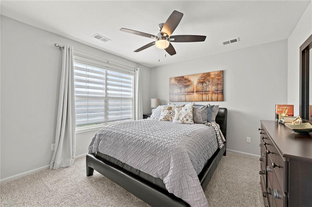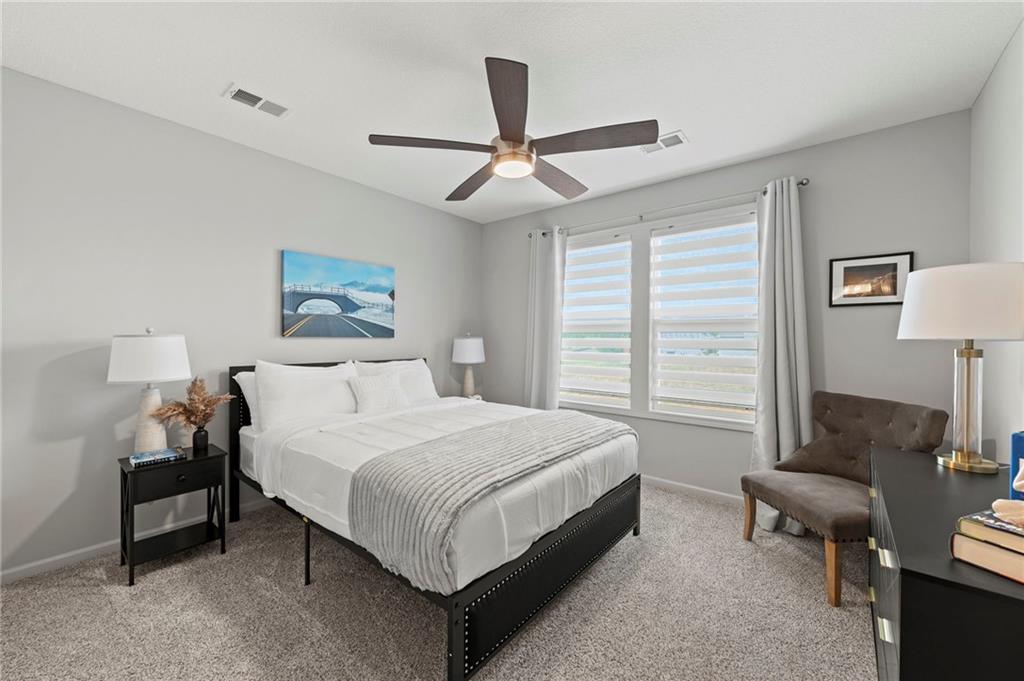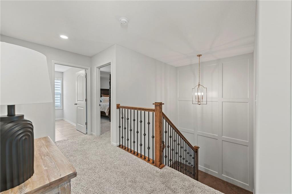 Immaculate 4-Year-Old Home in Tiffany Woods at Rose Creek – The Sycamore by Hearthside Homes. Welcome to this beautifully maintained 5-bedroom, 3.5-bathroom home offering over 3,000 sq. ft. of thoughtfully designed living space. Step inside and be greeted by gorgeous hardwood floors throughout the main level and an abundance of natural light flowing into the spacious living room, complete with a gas fireplace and custom built-in shelving. Zebra shade window coverings add a touch of modern elegance to every window. The kitchen features quartz countertops, stainless steel appliances, a gas range, walk-in pantry, and painted cabinetry—perfect for both daily living and entertaining. A flexible front room can serve as a formal dining area or home office. Retreat to the primary suite, featuring a spa-like en-suite with a custom tiled shower, frameless glass, a fabulous soaking tub, and large walk-in closet. Upstairs features the primary suite plus three spacious bedrooms, each with a walk-in closet, and a full bath designed for comfort and convenience. The finished basement offers a second living area, additional custom built-ins, a fifth bedroom, full bathroom, and plenty of storage space. Step outside to your covered patio, ideal for hosting or relaxing, with a fenced-in backyard that backs to greenspace—a rare and peaceful find. The 3-car garage includes bonus cabinet storage and a full 3-car driveway. All located in a prime, convenient location close to shopping, schools, and major highways.