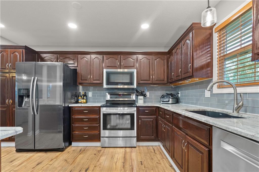 WELCOME HOME to this charmer!! Open concept floorplan and vaulted ceilings invite you right into this modern home which is perfect for entertaining! The kitchen has granite counters and stainless steel appliances. Primary suite includes newly renovated stunning bathroom including walk-in closet and skylights! Spacious bedrooms. Finished Daylight basement with bonus living space and the perfect space for an office space or 4th bedroom plus a full bath. Newer HVAC systems (2 years young) and NEW Water Heater! Great fenced-in backyard with large deck is perfect for kids and pets to run around. Roof is only 7 years old. Big ticket items have been taken care. Just move in and relax! This home has been so loved and is ready for everything you've wanted in a home. Don't miss your chance!