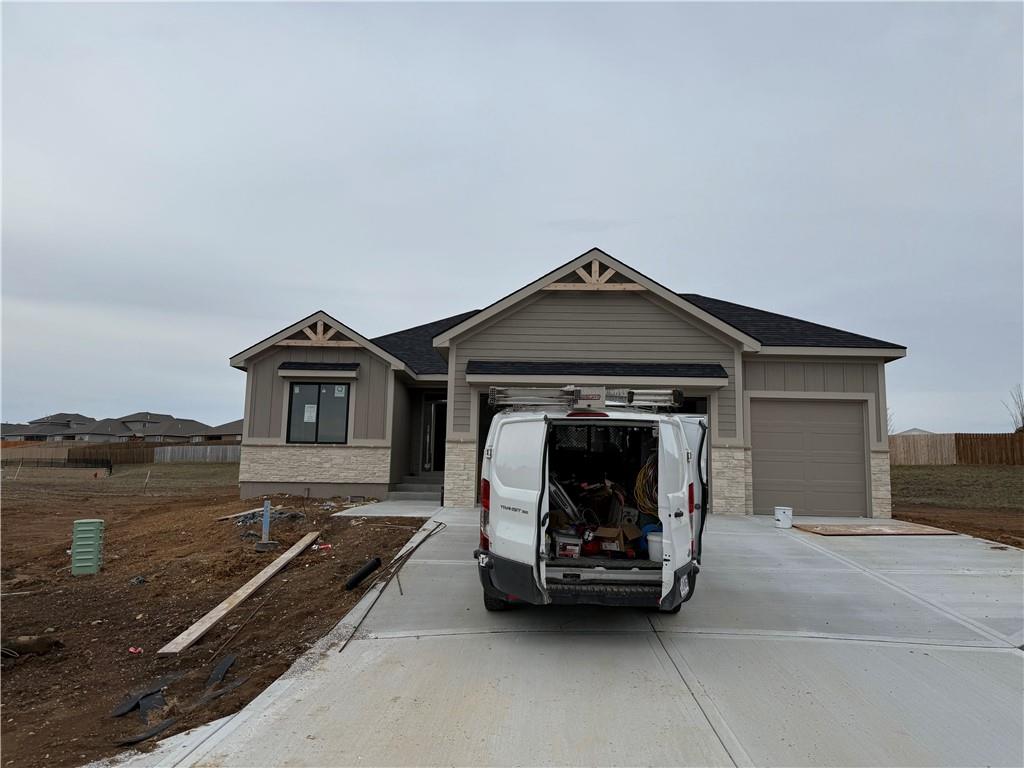 Now Under Construction – The Dexter Reverse 1.5 Story by DRHI! This thoughtfully designed home features a spacious Great Room with soaring 10-foot ceilings and a cozy fireplace, creating the perfect gathering space. The open floor plan showcases a chef’s kitchen with a large center island, huge pantry, and a sunny breakfast area with access to the rear covered patio—ideal for outdoor dining. The luxurious primary suite offers abundant natural light, a spa-inspired bath with dual sinks and a walk-in shower, plus a massive walk-in closet with built-in shelving that connects directly to the main-level laundry room for convenience. A second bedroom and full bath with a shower/tub combo complete the main floor. The finished lower level is designed for entertaining, featuring a large rec room, two additional bedrooms, and a full bath with double sinks. Located in Hoot Owl Acres, this home is just minutes from shopping and dining along South 7 Highway and Adams Dairy Parkway. Enjoy a quiet South Blue Springs location with quick access to 7 Highway and I-70 for easy commuting. Zoned for award-winning Blue Springs Schools, with Blue Springs South High School nearby. Currently under construction; final pricing subject to change. For the best experience, please be aware that the address may not map correctly in GPS. We recommend using the detailed directions included in the listing.