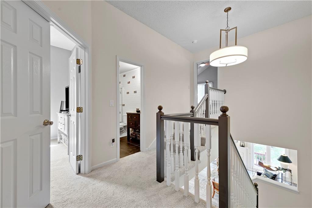 BRAND NEW ROOF!! Step inside this 3BR/2.5BA two-story condo and enjoy all of the incredible updates thruout. Main floor boasts newer luxury vinyl in the vaulted ceiling Great Room/Dining Room, eat-in Kitchen, laundry and 1/2 bath. Kitchen is updated with professionally painted cabinets, granite countertops, subway tile backsplash, gas cooktop & new Kitchen faucet. The spacious Great Room/Dining room offers fireplace with stacked stone & access to the private deck. Second floor is home to three bedrooms....Primary Suite with vaulted ceiling, ceiling fan, walk-in closet, bathroom with tub, dual vessel sink vanity & shower. Two additional bedrooms (one w/walk-in closet) both have ceiling fans and share access to the updatd hall bath with vessel sink vanity, tub/shower combo & beautifully tiled walls. Both staircases and all carpeting on 2nd floor were just replaced in July. Don't miss the finished lower level perfect for home office, playroom, exercise room & so much more. Gorgeous landscaping surrounds this property and the two-car garage complete the package. Conveniently located near great shopping at 119th & Metcalf, St. Lukes South Hospital, easy highway access and Blue Valley Schools (BVN High, Overland Trail Middle, Valley Park Elem)