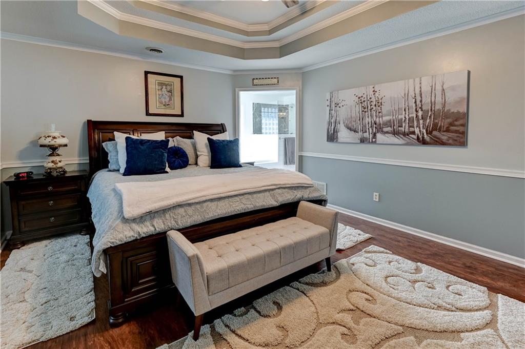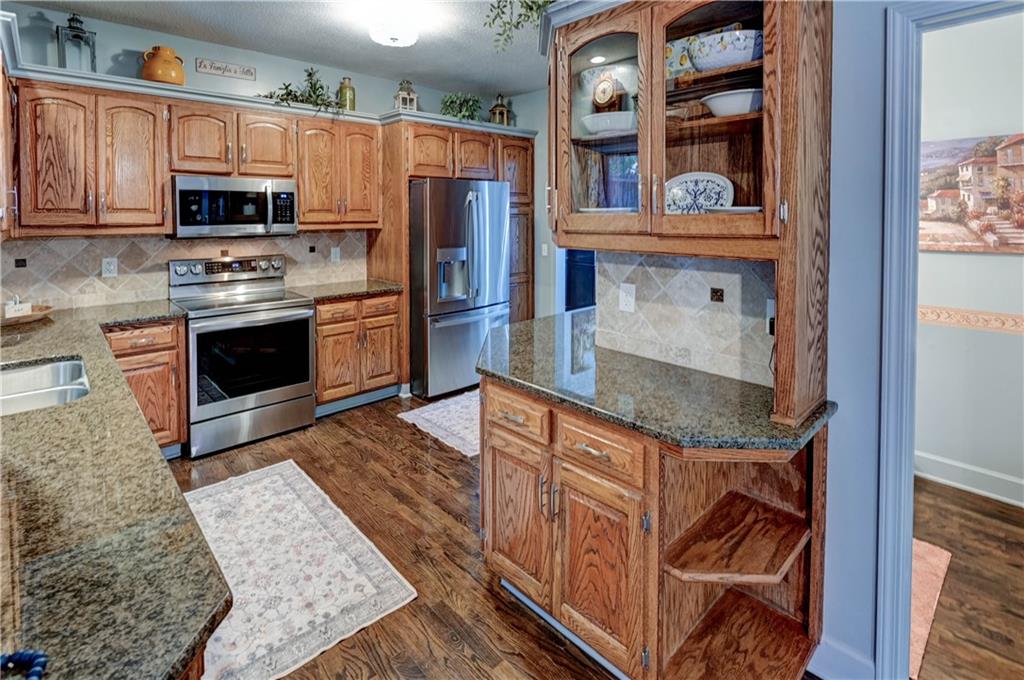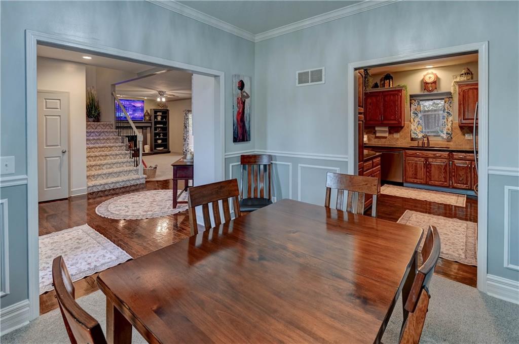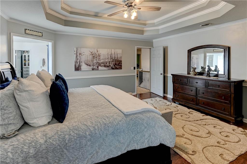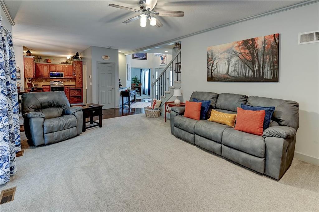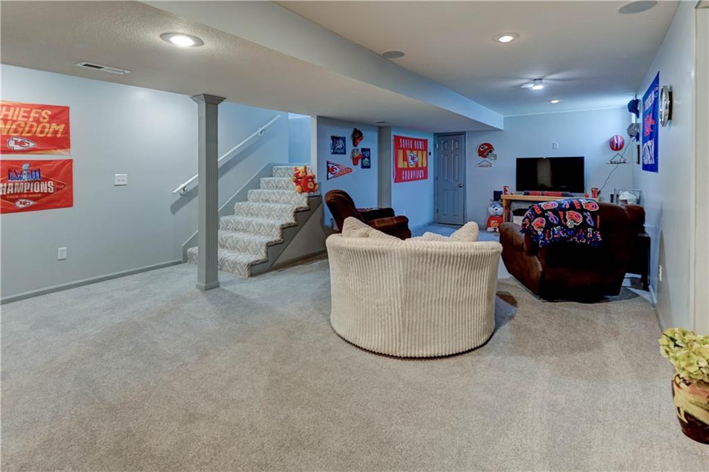Welcome home to this stunning 1-½ story home offering 4 spacious bedrooms, 3 full baths, and 2 convenient half baths, designed for both comfort and luxury. With 3,736 sq/ft of move in ready beauty, this property has an abundance of space for family living and entertaining. The large water fountain greets you as you enter. Once inside the luxurious entryway the warmth of this home welcomes you. The main level features two separate dining areas, perfect for both everyday meals and formal gatherings. A chef’s choice kitchen with real oak cabinets, granite countertops, and plenty of prep space for cooking. From the main level, step outside onto the secluded patio offering a shaded retreat ideal for grilling, relaxing, or enjoying the view of the beautifully upgraded landscaping. An updated master bathroom and brand new tile shower and a huge jetted tub. Large closets that add both elegance and functionality. Enjoy the cozy sitting area that’s perfect for unwinding with a good book or enjoying morning coffee. Additional bedrooms with ample closet space and easy access to full bathrooms, making it comfortable for family or guests. The fully finished basement is a standout feature of this home. It offers a massive recreation room with a wet bar, built-in surround sound, and plenty of room for hosting game nights, movie marathons, or large gatherings. Recent updates add peace of mind, including a newer roof, HVAC system, and tankless hot water heater. Every detail of this home has been thoughtfully designed and meticulously maintained. This property combines luxury features with everyday practicality, offering endless possibilities for entertaining, relaxation, and comfortable living Beautifully updated ceiling fans and lighting fixtures throughout. New Carpet throughout and more. Great Location! Don’t miss your chance to call this incredible home your own. Schedule a tour today before it’s gone! All information including tax/measrmnt etc should be verified by buyers.
