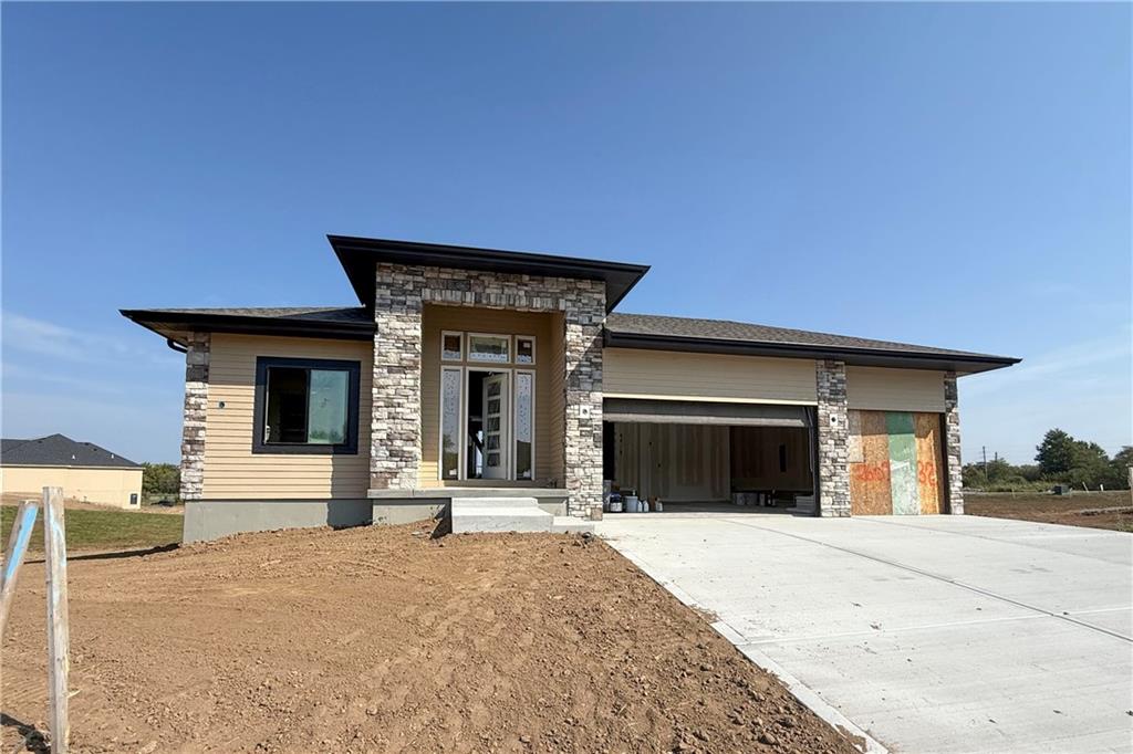 Nestled in the brand-new Woodland Oaks Subdivision, this stunning reverse 1.5-story home, built by Walker Custom Homes, is designed for luxury and functionality. Step inside to find soaring 12-foot ceilings and a cozy fireplace in the spacious Great Room, where abundant natural light creates a warm and inviting atmosphere. The gourmet kitchen features a center island, plentiful cabinetry, and a large walk-in pantry—perfect for everyday living and entertaining. Retreat to the elegant primary suite, complete with a freestanding soaking tub, oversized walk-in shower, dual vanities, and an impressive walk-in closet. A second main-level bedroom and full bath offer flexibility for guests or an in-home office, while the convenient laundry room is located just off the garage entrance. Downstairs, the expansive walk-out lower level is built for entertaining, boasting a large rec room with a wet bar, two additional bedrooms, a storm shelter, and generous unfinished storage space. Living in Woodland Oaks means enjoying access to premier area amenities, including nearby Lake Jacomo and Legacy Park, with its state-of-the-art community center, amphitheater, disc golf course, miles of walking trails, and sports facilities for all ages—all just steps from your front door. Home is under construction and final pricing is subject to change. Pics of former model. The specification sheet will outline planned finishes for this property, and supersede any details, photos, drawings, or depictions used for marketing purposes on this listing.