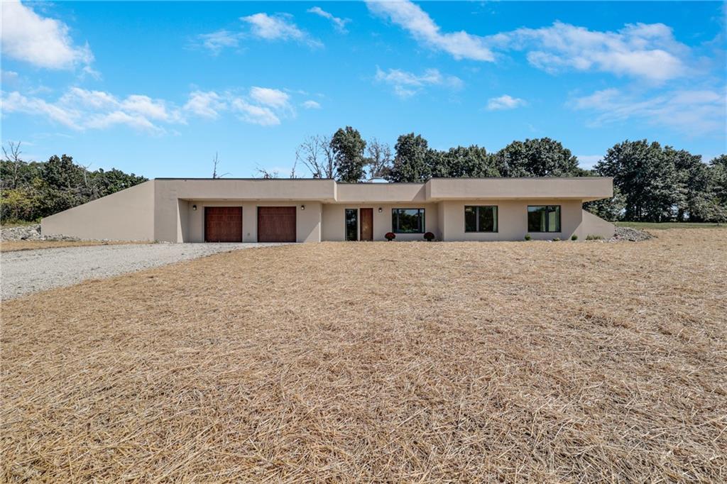 Your Dream Home Awaits on 20 Acres! Welcome to 18018 Ozark Lane in Higginsville – a one-of-a-kind luxury estate perfectly situated on 20 acres of both wooded and cleared land with a picturesque creek. This thoughtfully engineered 2-bedroom, 2-bathroom concrete home with an attached 2-car garage combines modern comfort, durability, and the serenity of country living, all while being just minutes from town. Deer and wildlife are frequent visitors, adding to the property’s private, peaceful charm. Built with 10’ reinforced concrete walls and vaulted domed ceilings, the earth-contact design offers exceptional resistance to fire, hail, and tornadoes, with virtually zero exterior maintenance required. Inside, a central skylight fills the open-concept kitchen and family room with natural light. Luxury details include Dacor appliances, oversized column refrigerator/freezer, custom textured melamine cabinetry, and a spacious pantry. Comfort and efficiency come standard with radiant floor heating, backup propane furnace, wood-burning stove, and a recirculating fresh air system. Homes of this type commonly maintain interior temperatures of 50°F without power during sub-zero conditions, ensuring peace of mind year-round. If you’re seeking low-maintenance luxury, energy efficiency, and tranquil countryside living, this property is unmatched. Additional 13 acres available for purchase adjacent to the home. Schedule your private showing today - this rare estate won’t last long!