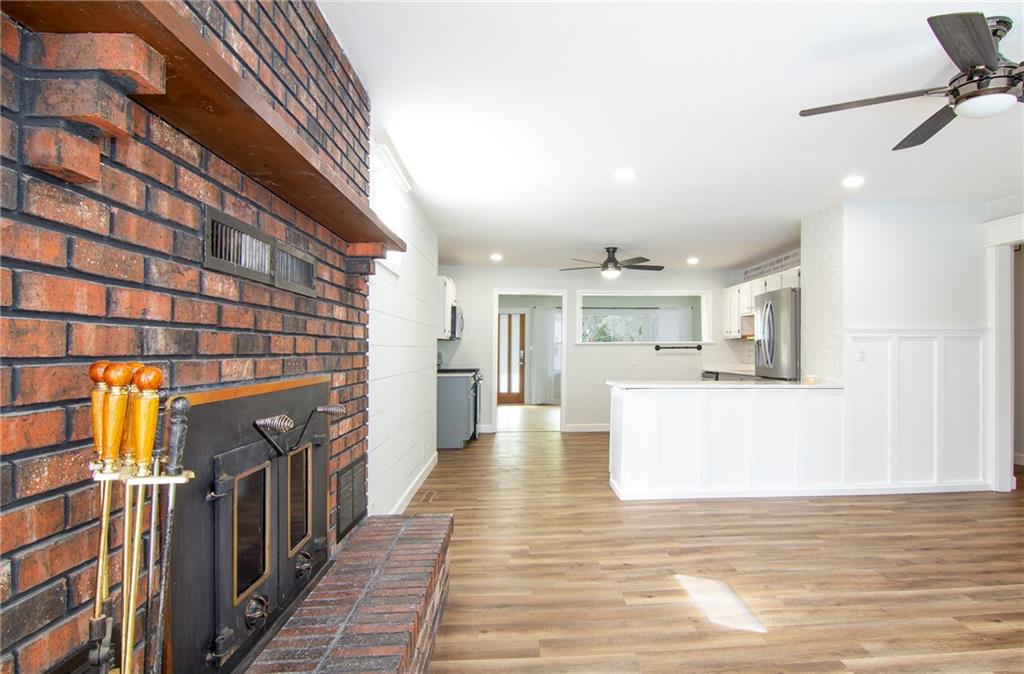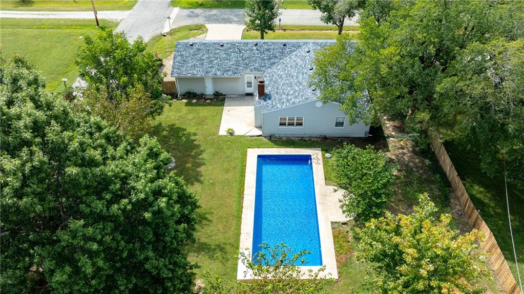 This move in ready, three bedroom, two bath, open floor plan ranch style home has two living spaces, with one on each side of the kitchen. The family room has a large, wood burning fireplace with insert and hearth that looks out over a large, privacy fenced backyard with a 36 x 16 foot in ground pool with a new liner, filter and pump, all under warranty. Both bathrooms have been upgraded and there are ceiling fans in all rooms. The laundry room and pantry are conveniently located between the kitchen and double garage. There is additional parking on the right side of the house, which sits on a large corner lot on a cul-de-sac type street with no through traffic. The house is conveniently located within 5 minutes from Wal-Mart, Home Depot, and Dillons. Both the house and pool shed have had a new roof installed within the last 30 days. This is a wonderful family home with a floor plan that provides some privacy for all.