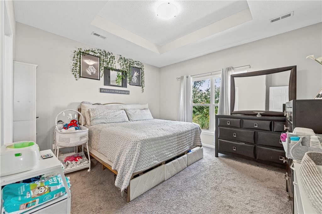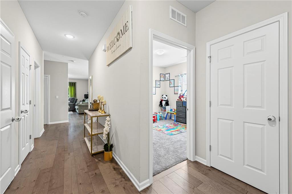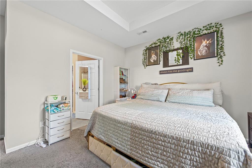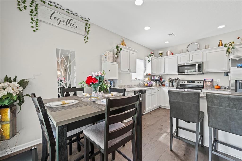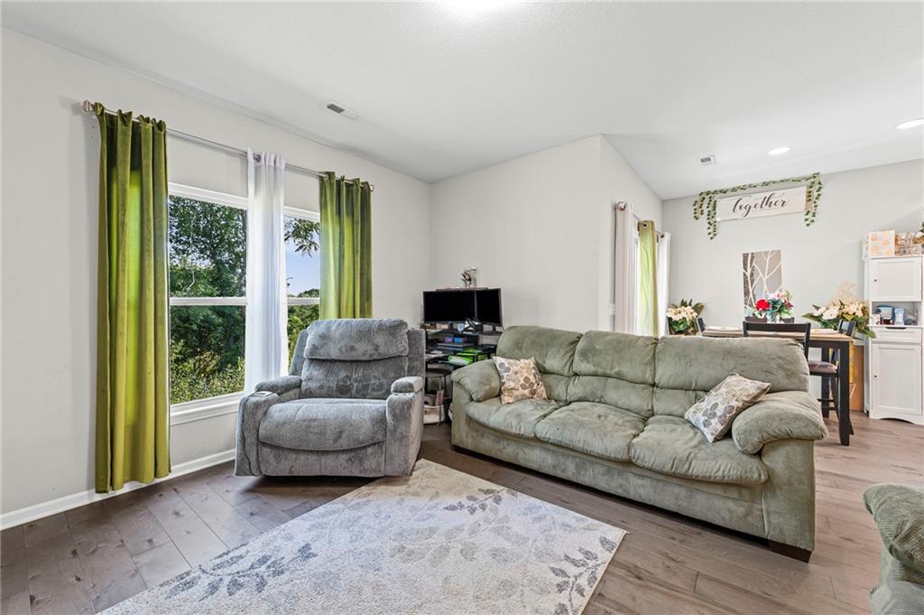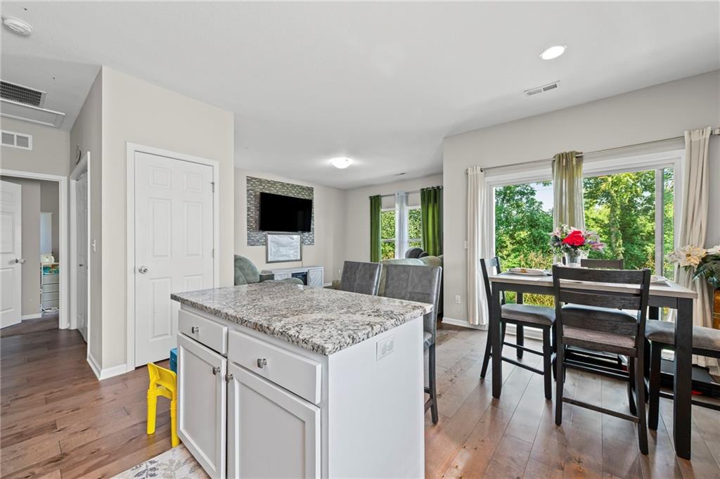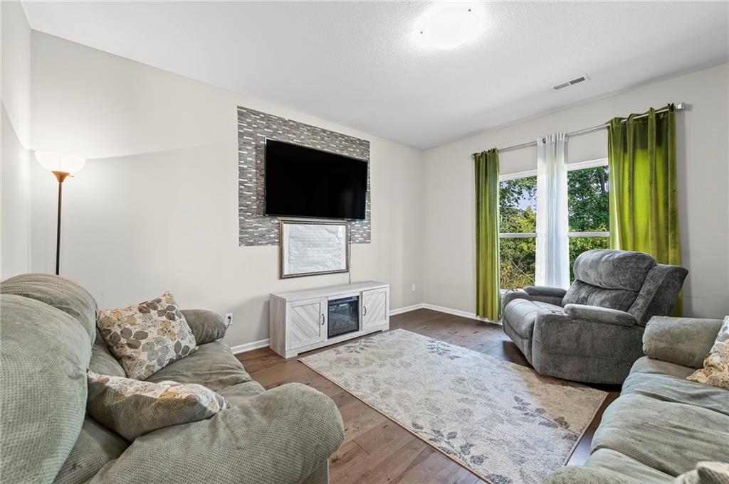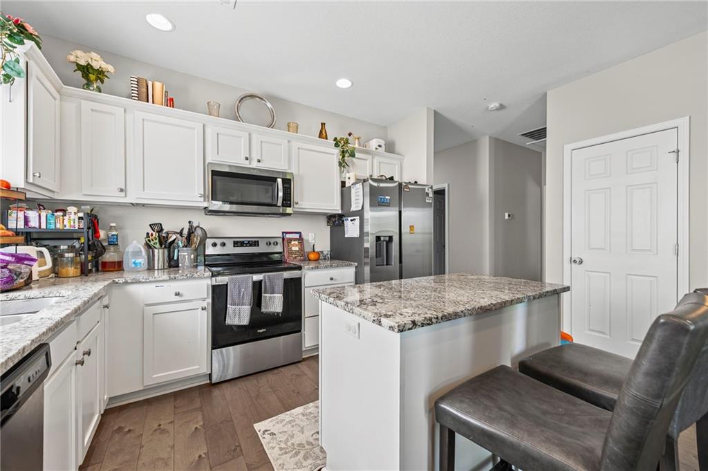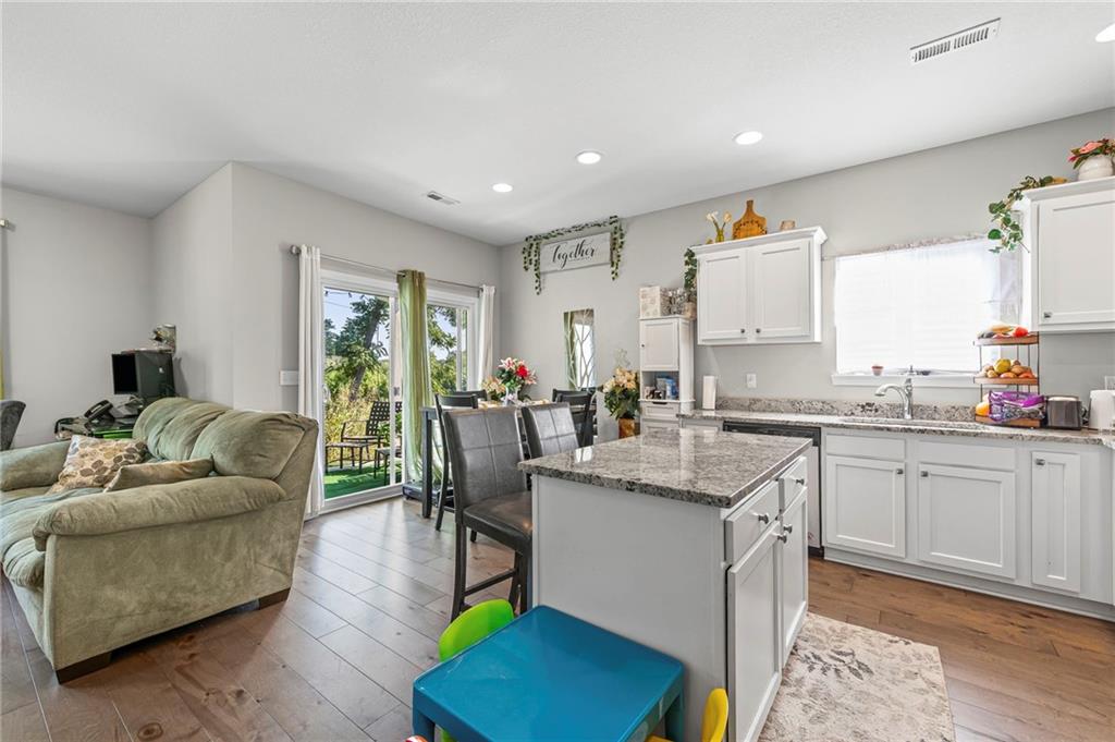 Market price adjustment!!! Welcome home to a growing community with extensive amenities with a LIKE-NEW feel! Marvel at the open space concept with beautiful wood floors. Enjoy relaxing or entertaining in the skillfully designed open space that features a beautiful white marbled-topped breakfast island, a dining area that looks out onto greenspace through the covered patio. This home boasts 3 bedrooms and 2 full-size baths with a generously sized primary bedroom that includes ensuite bath featuring a double vanity and a large walk-in closet. Located with quick access to shopping, dining, and KCI Airport. This 4year old home has been wll maintained with regular pest control services and is ready for you to move in and enjoy! Don't forget to drive around the neighborhood and check out the amenities like the playground and clubhouse.