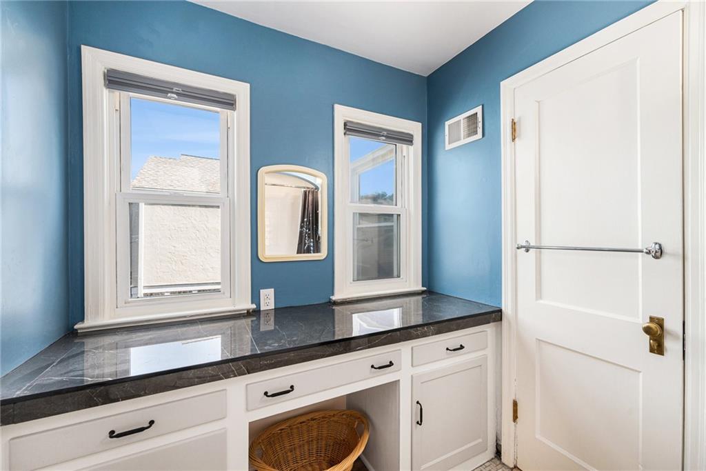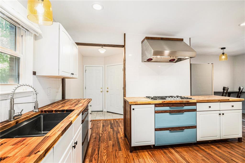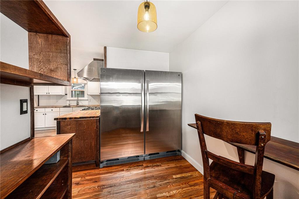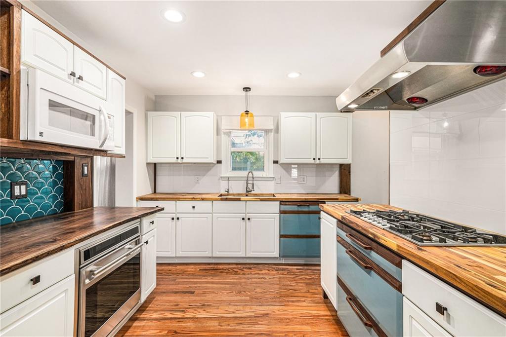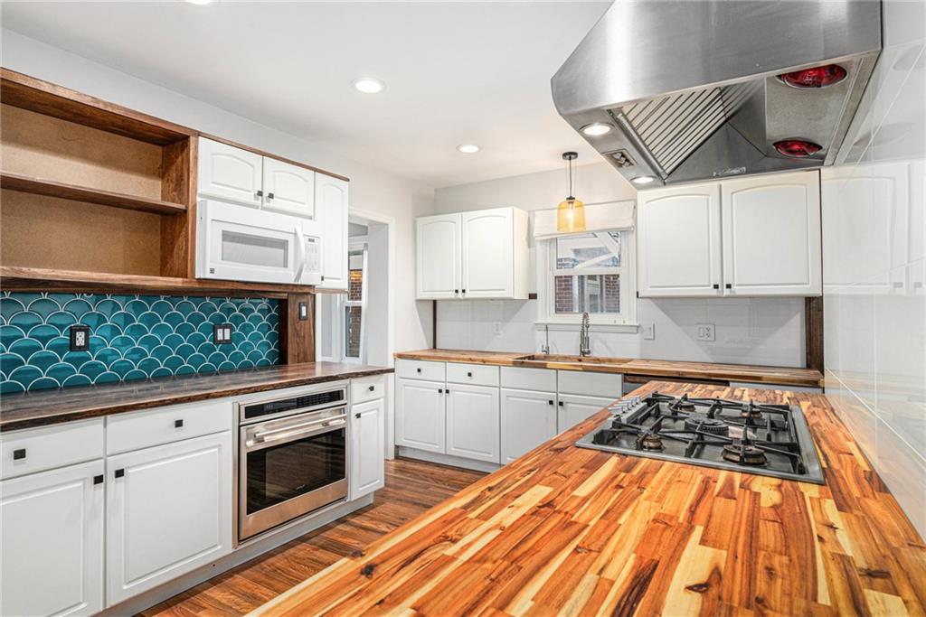 Spacious Tudor in the Heart of Waldo with Rare Attached Garage and Custom Upgrades! Hardwood floors grace both main and upper levels, while abundant natural light highlights the home’s character. The living room, anchored by a wood-burning fireplace, flows seamlessly into a sunroom with reglazed windows—ideal as a home office. A formal dining room sets the stage for entertaining, while the chef’s kitchen impresses with professional-grade Gaggenau, Wolf, and Miele appliances, butcher block counters, custom tile backsplash, and designer lighting. The eat-in space doubles as a walk-in pantry with a live-edge breakfast bar for casual dining. The lower level expands the living space with a finished recreation room featuring custom built-ins, luxury vinyl plank flooring, and dimmable LED lighting. Laundry chute on each level goes to a thoughtfully designed laundry room with utility sink, folding counter, and generous storage. Outdoor living is equally inviting, with a fenced backyard, stained deck, built-in bench seating, and low-maintenance landscaping—perfect for relaxing or entertaining. Recently painted exterior, side-entry garage with smart opener and keyless entry provides both security and convenience. Located on a tree-lined Waldo street, within a few blocks of local shops, dining, parks and convenience stores. A home warranty provides added peace of mind.